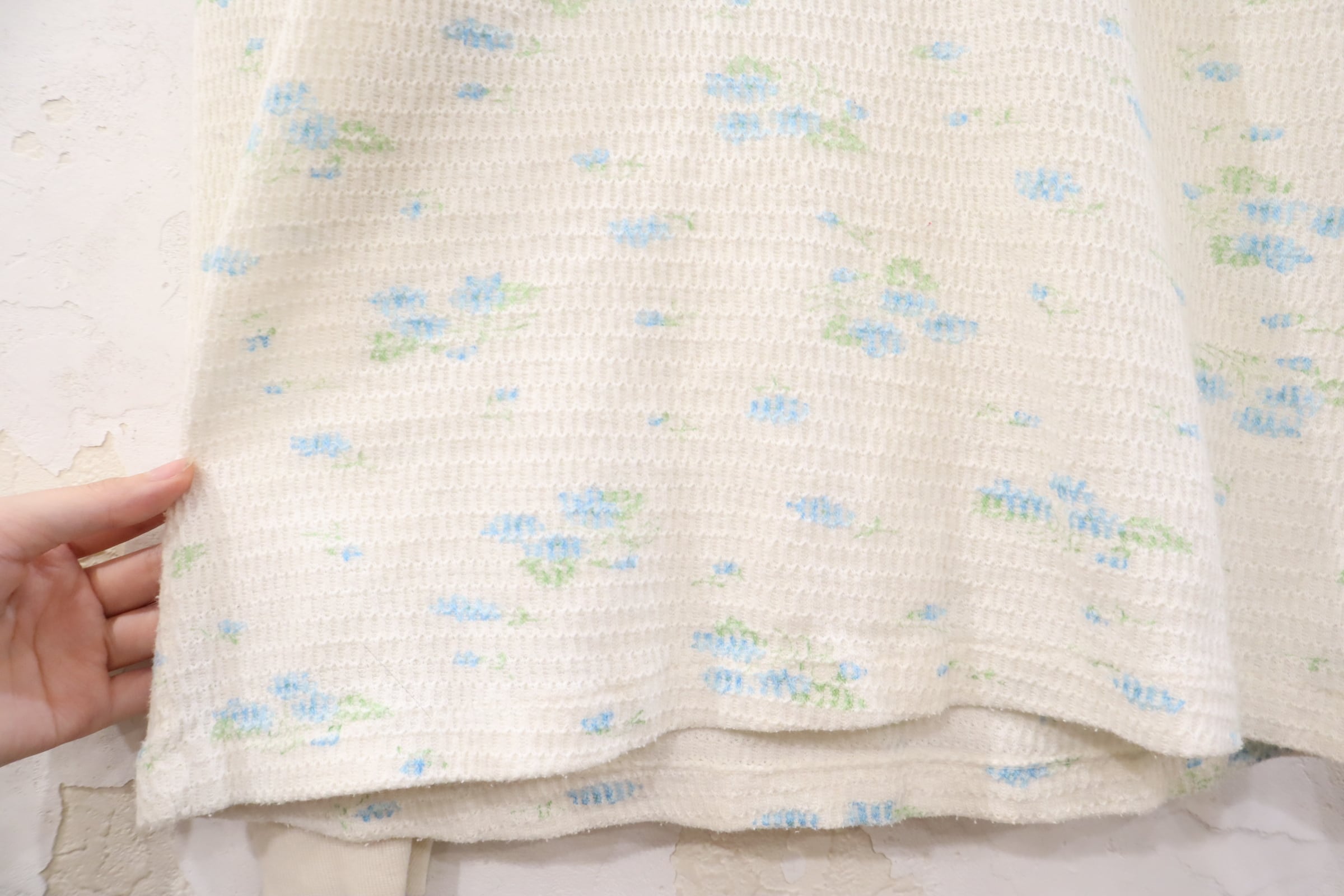 "JCPenney" white×blue×green flower pattern thermal tops [l-1743]