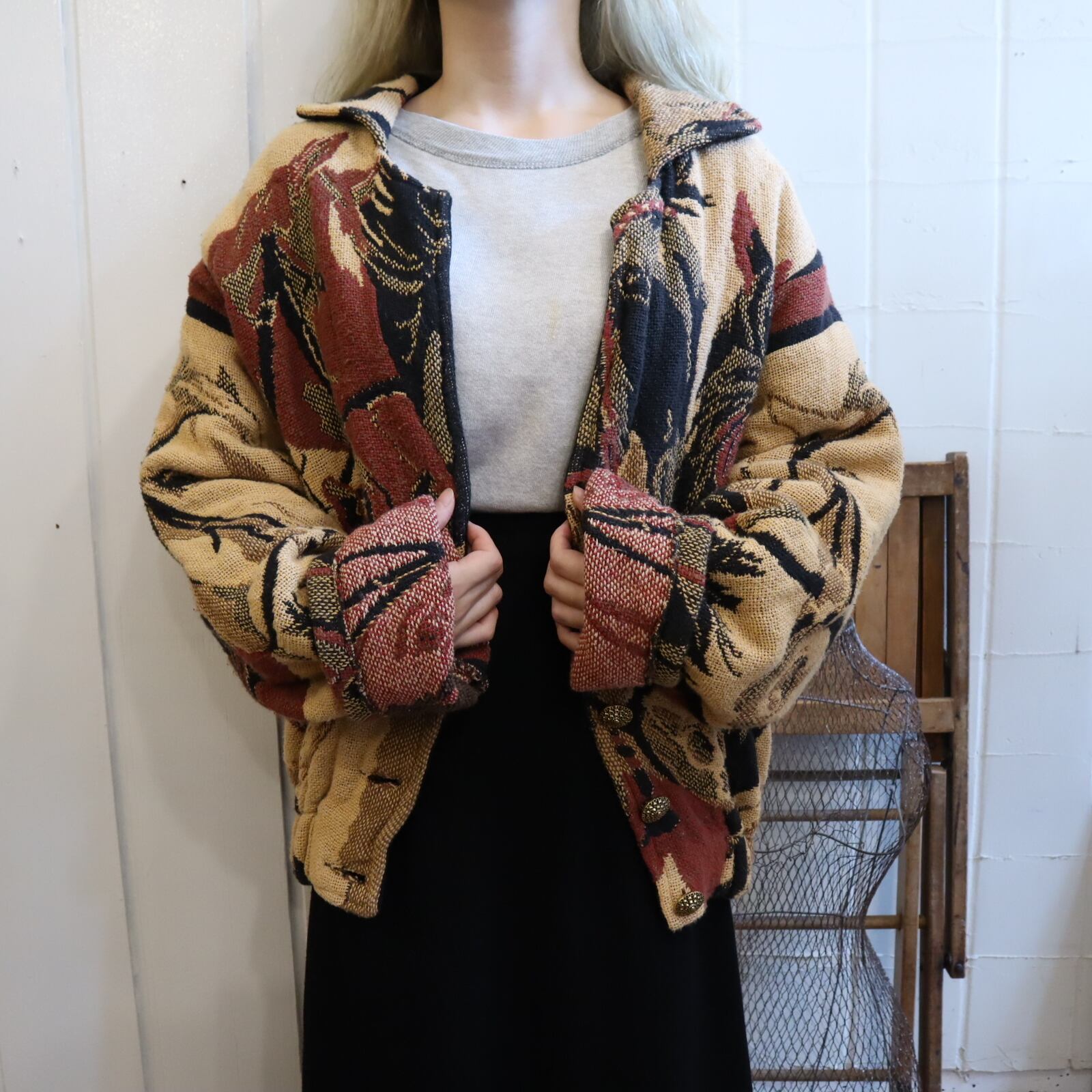 lightbrown×redbrown horse pattern gobelin jacket [l-1750]
