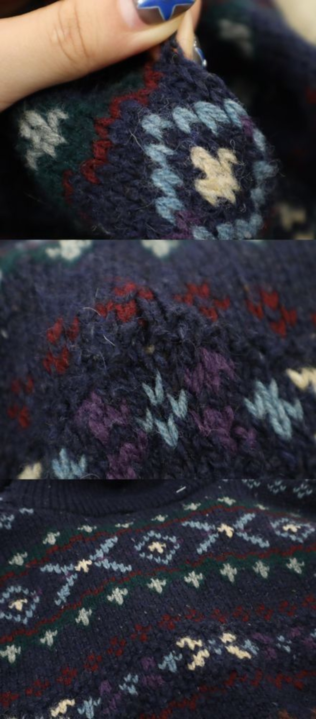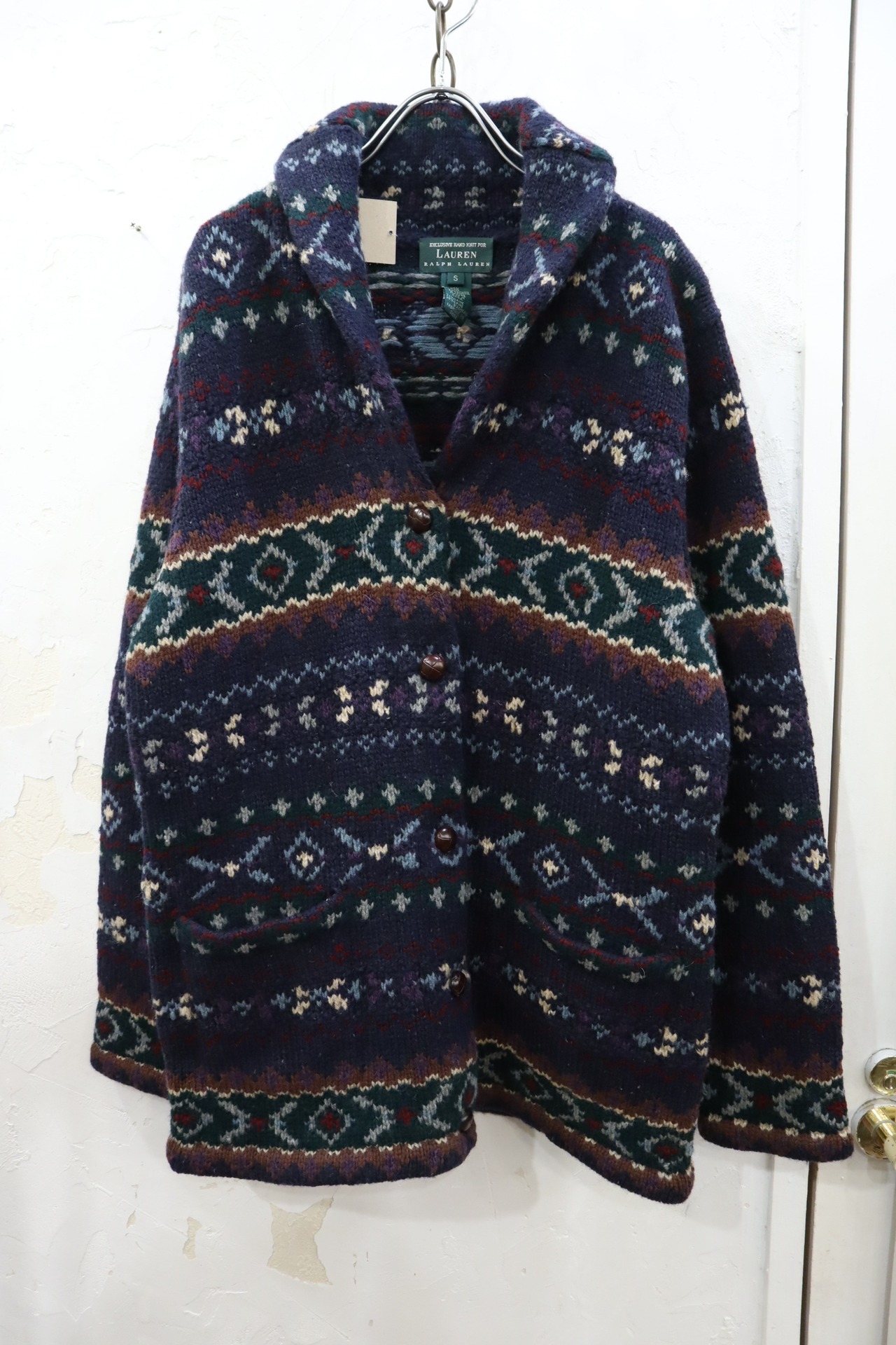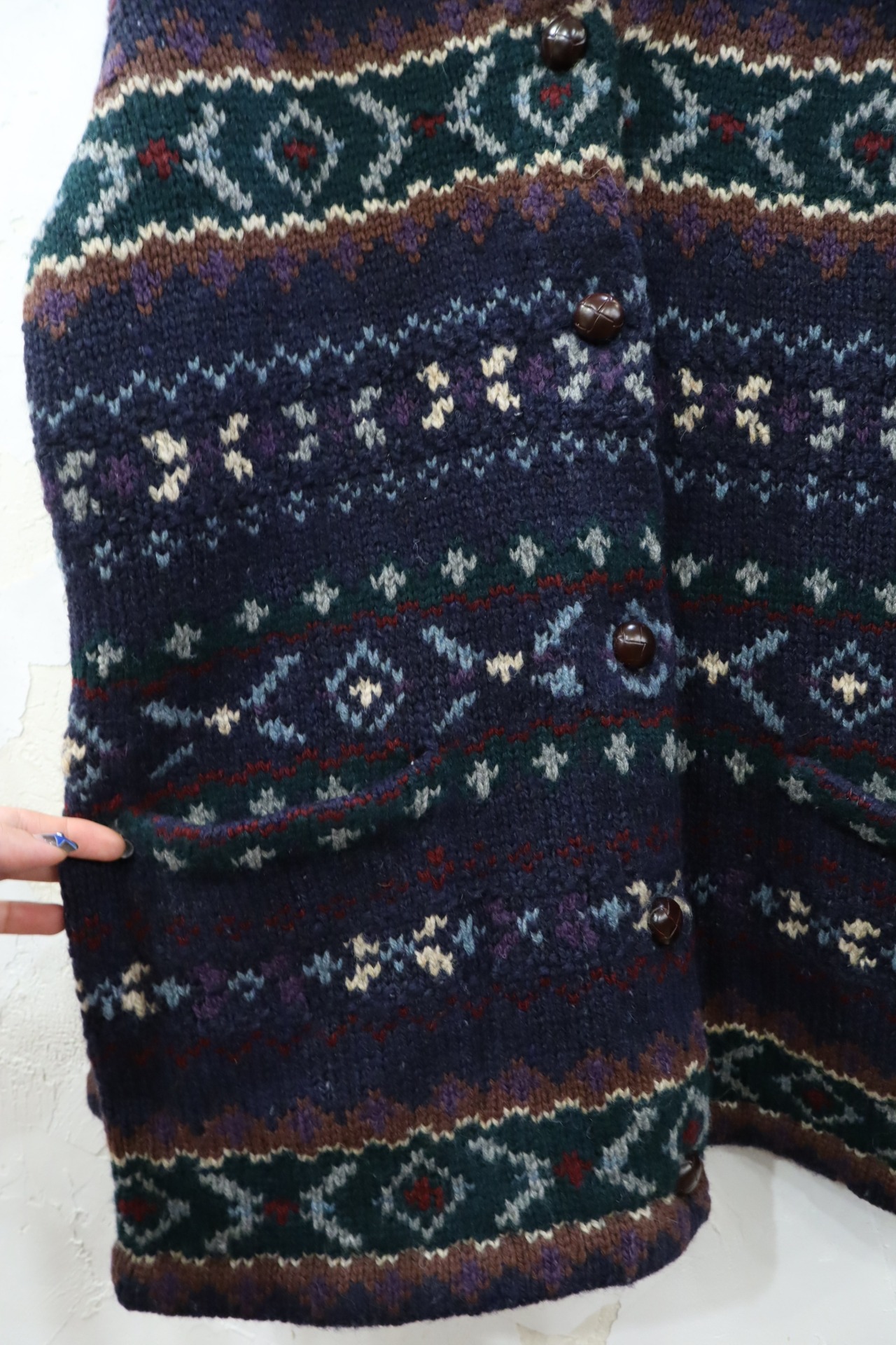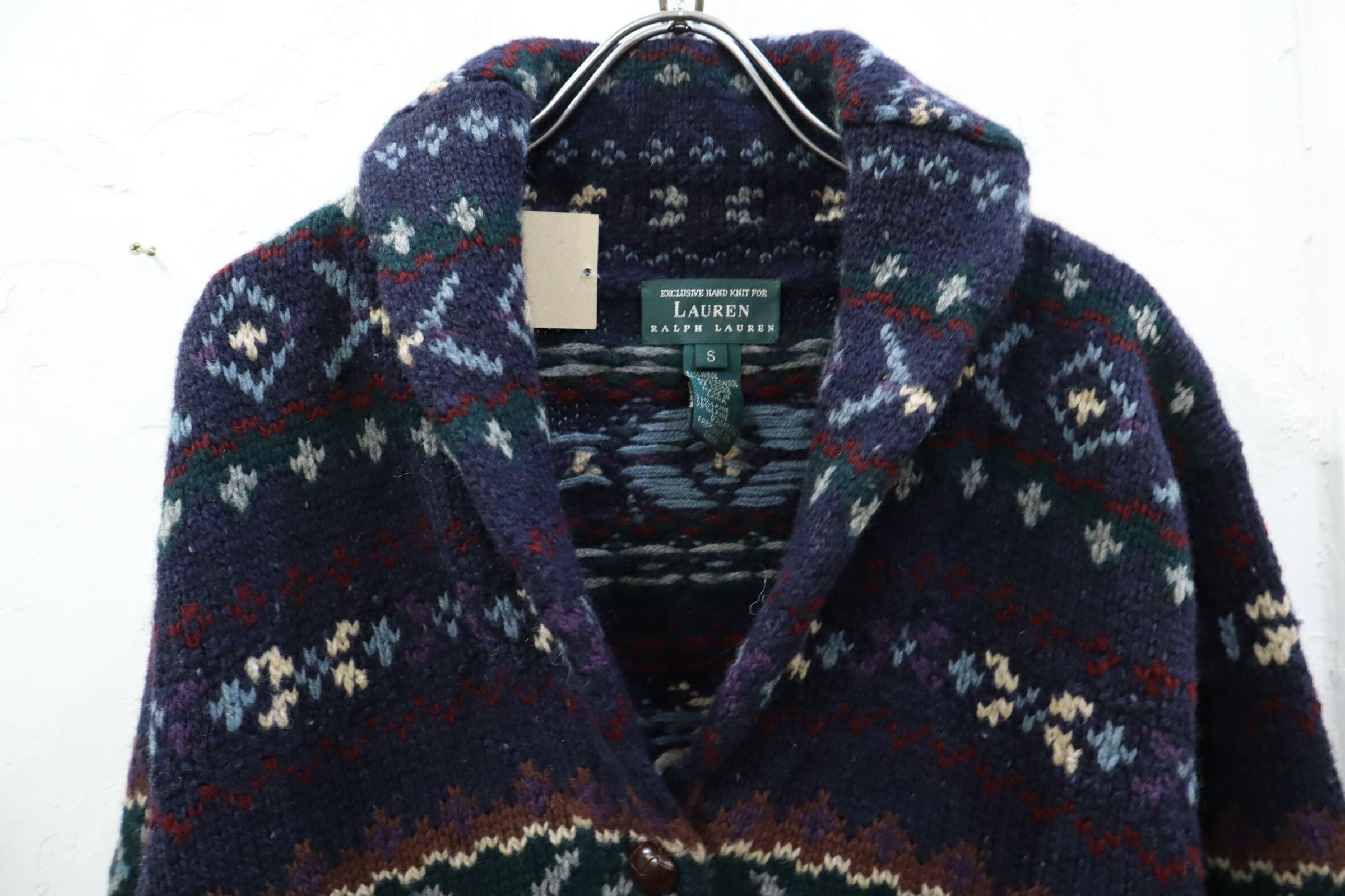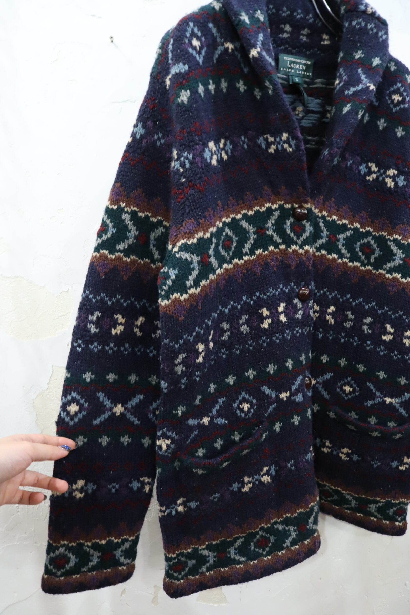 "Ralph Lauren"navy×green×purple wool knit cardigan [k-1763]