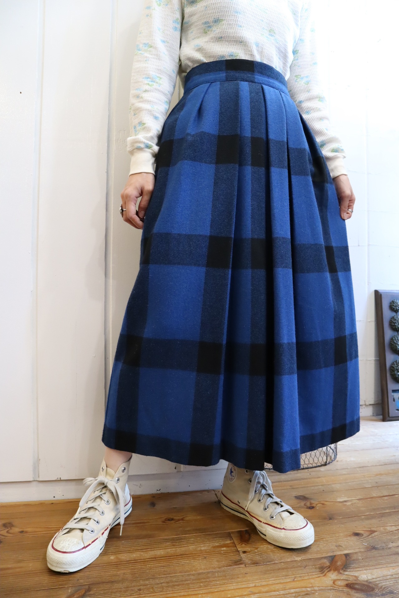 大きなチェックや少し暗めのブルーが可愛いスカートです*