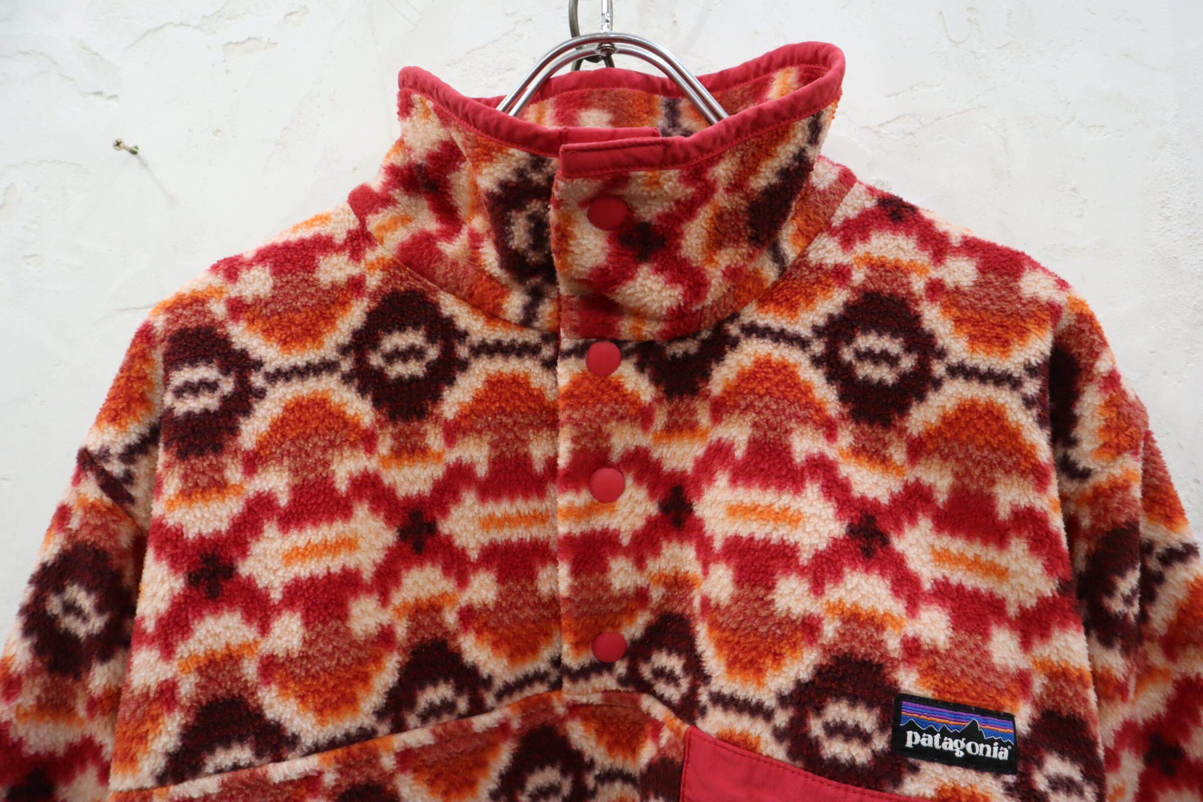 "Patagonia" pink×orange geometric pullover snap-t fleece [l-1773]