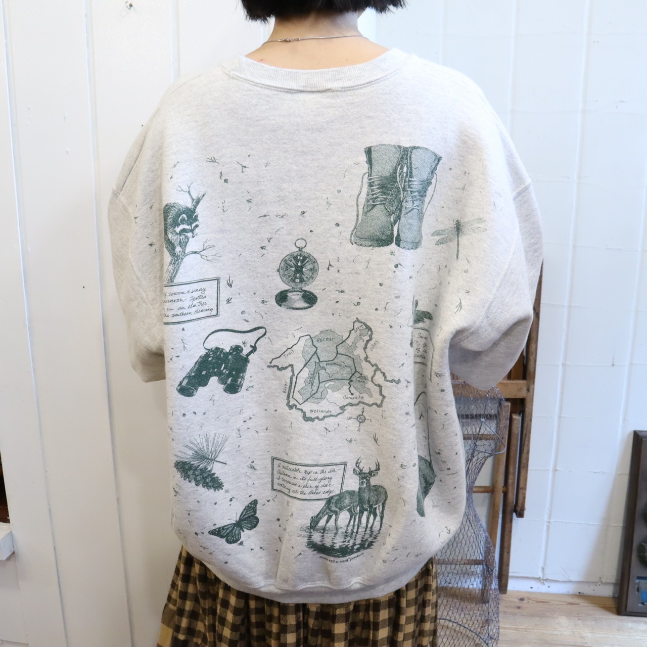 made in USA lightgray×green animal pattern sweat [k-1781]