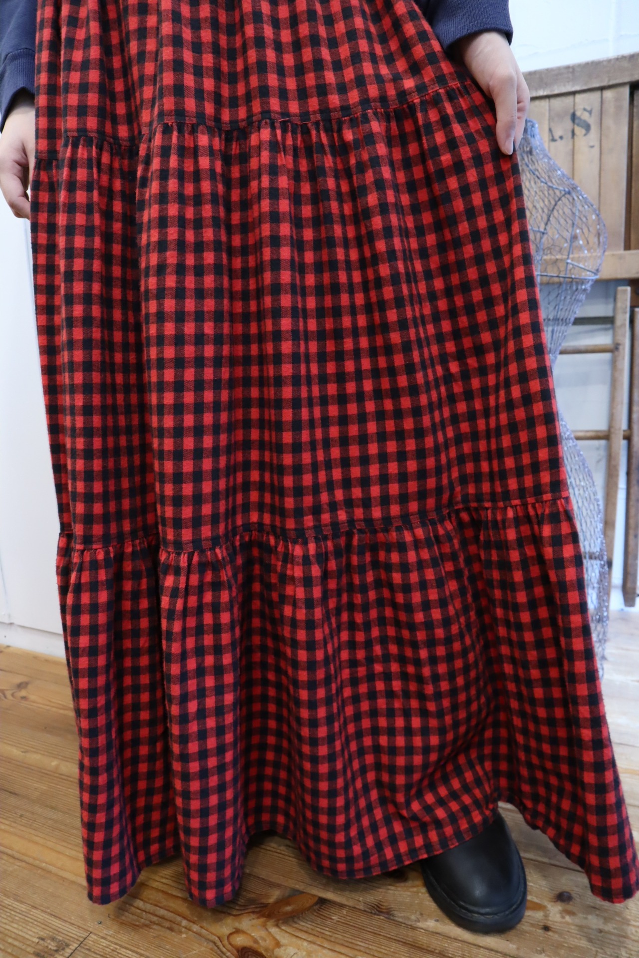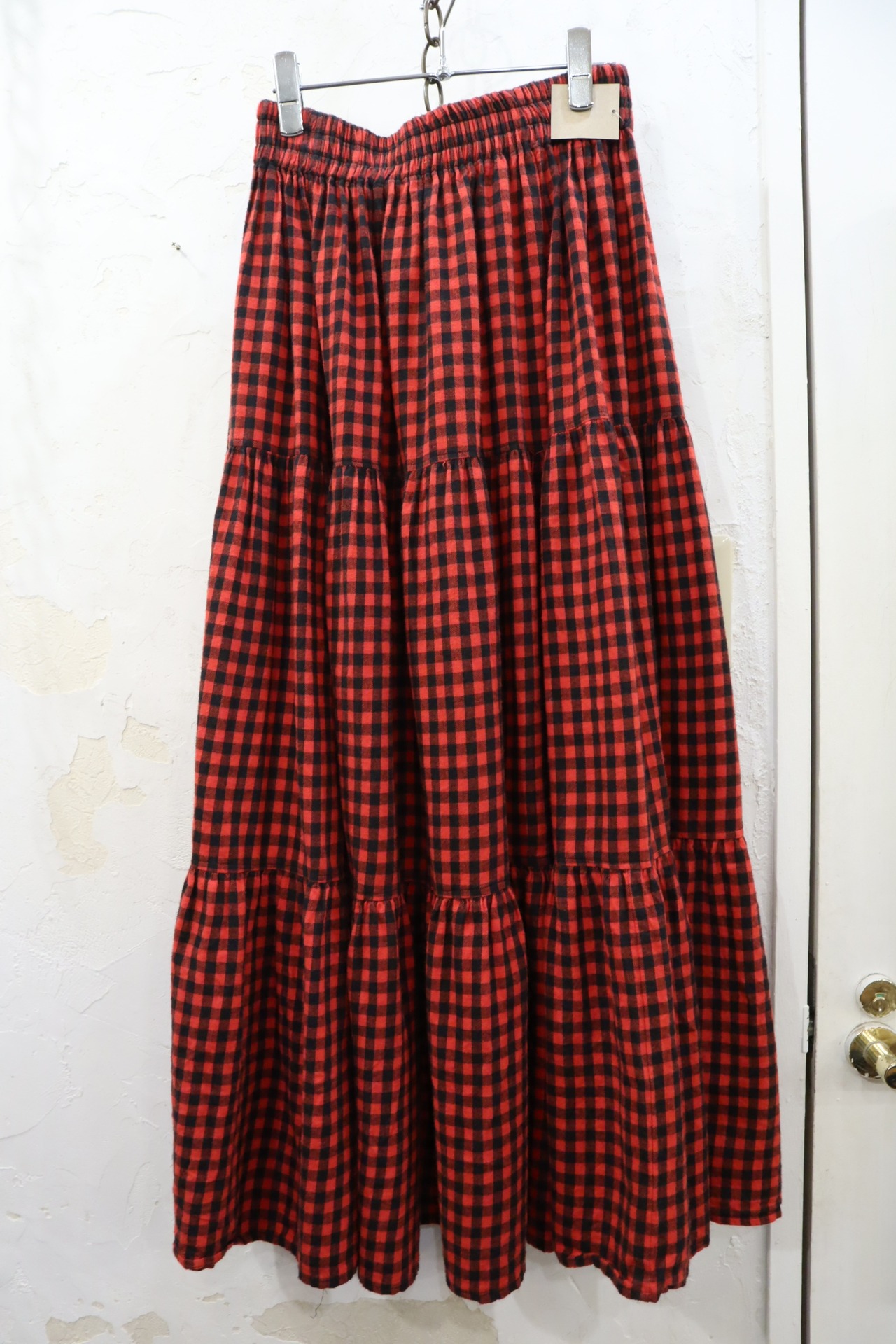 red×black plaid tiered skirt [l-1789]