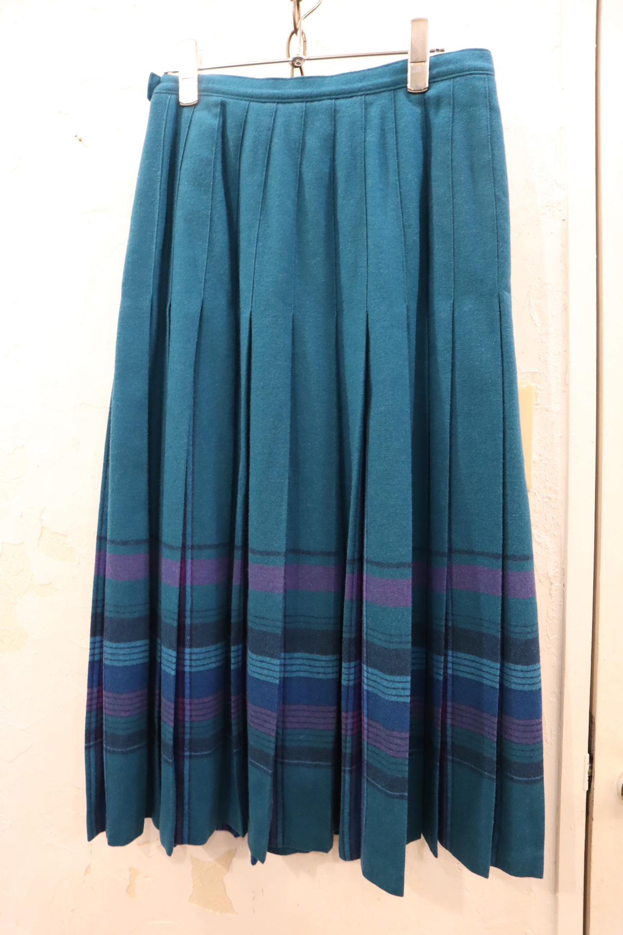 made in USA "PENDLETON" blue×purple plaid wool pleats skirt [l-1792]