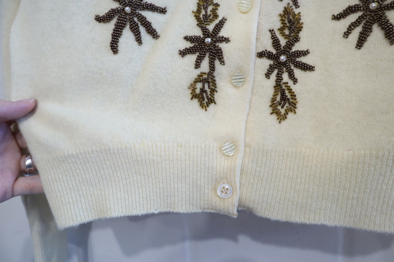 お花のビーズ刺繍が可愛いニットカーディガン。