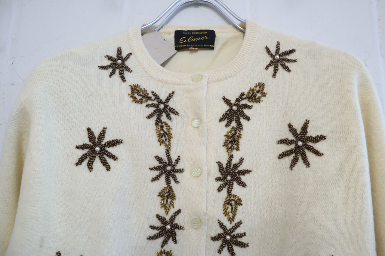 50-60s cream yellow×dark gold beads knit cardigan [l-1796]