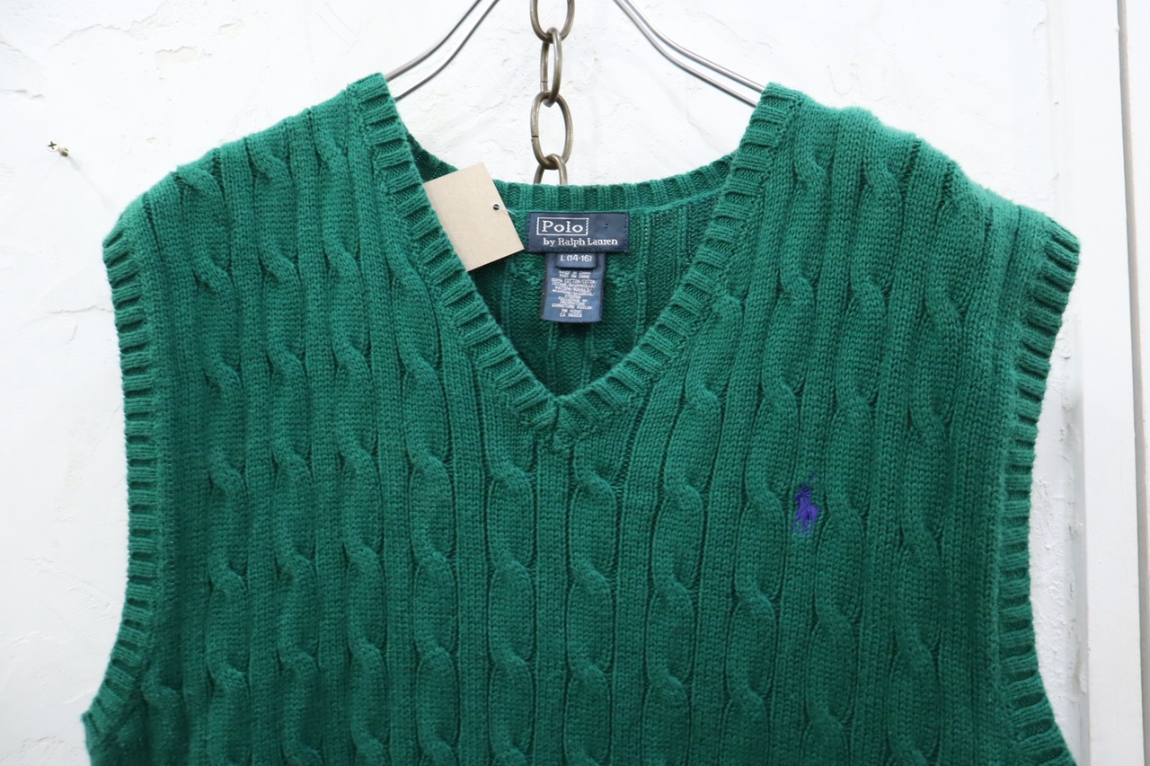 "Ralph Lauren" green cotton knit vest [k-1800]