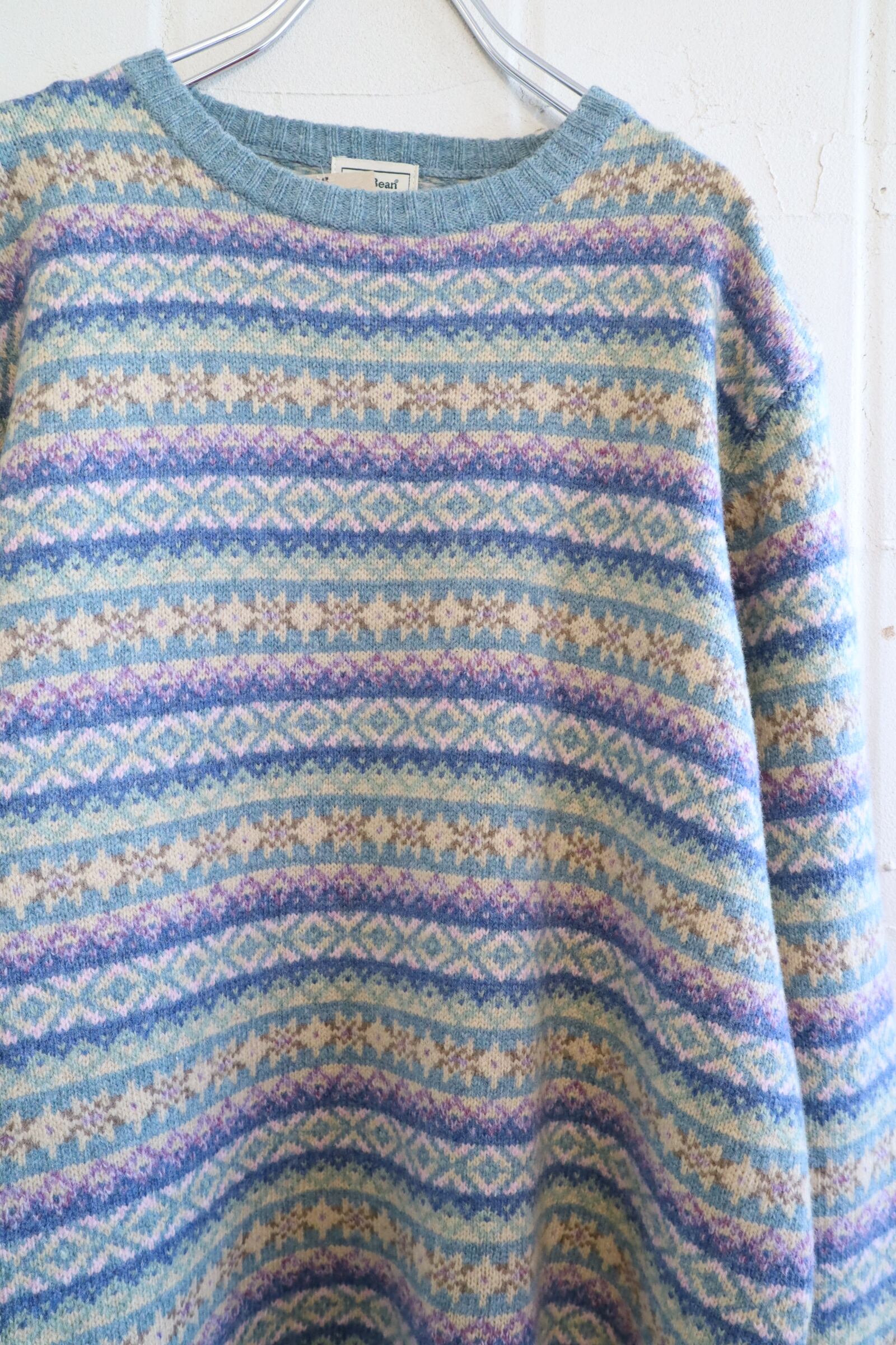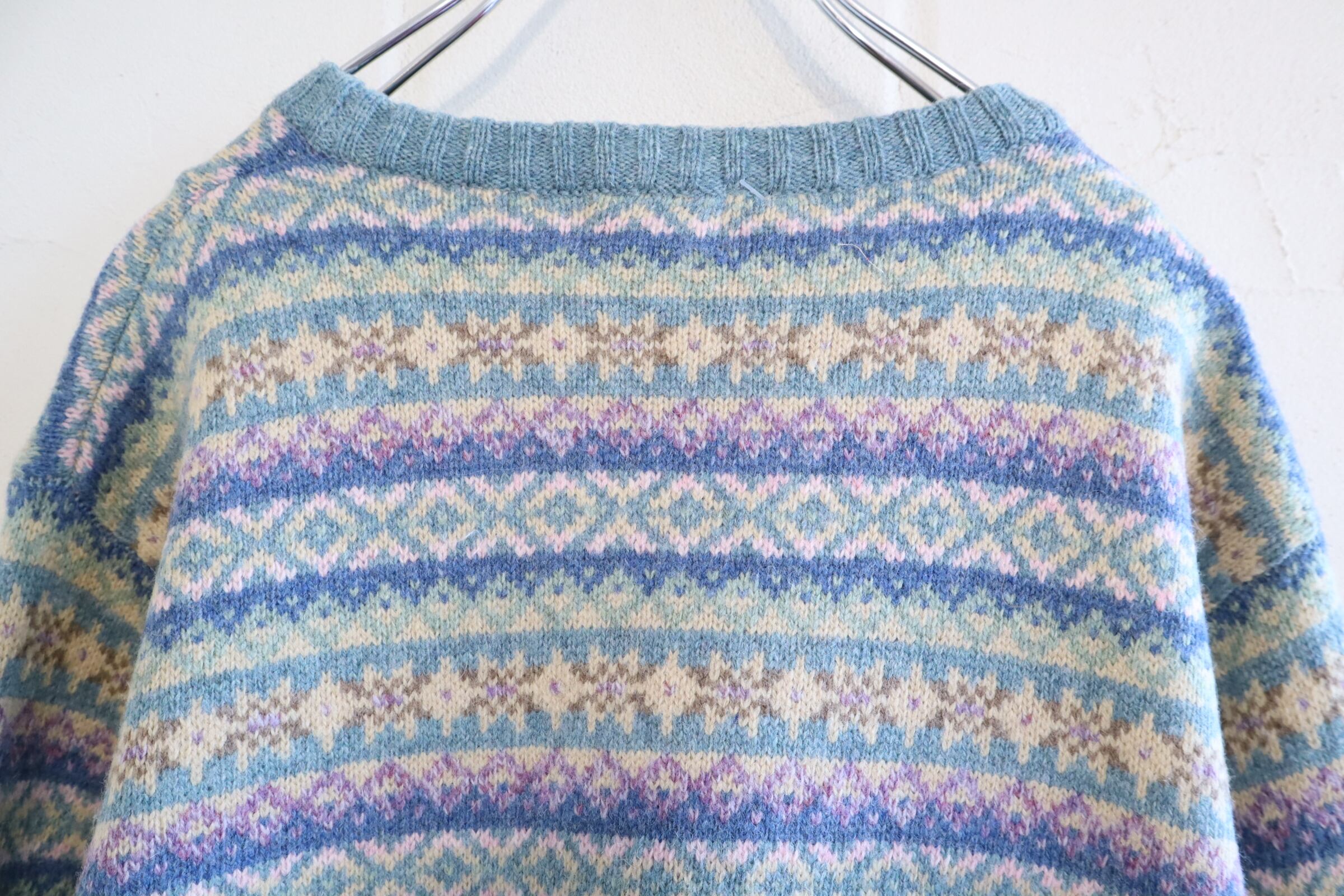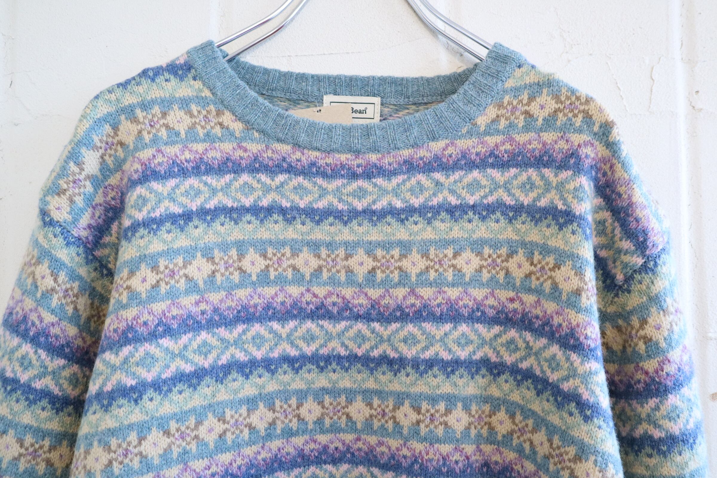 ”L.L.Bean” mintblue×beige×colorful pullover knit [l-1827]