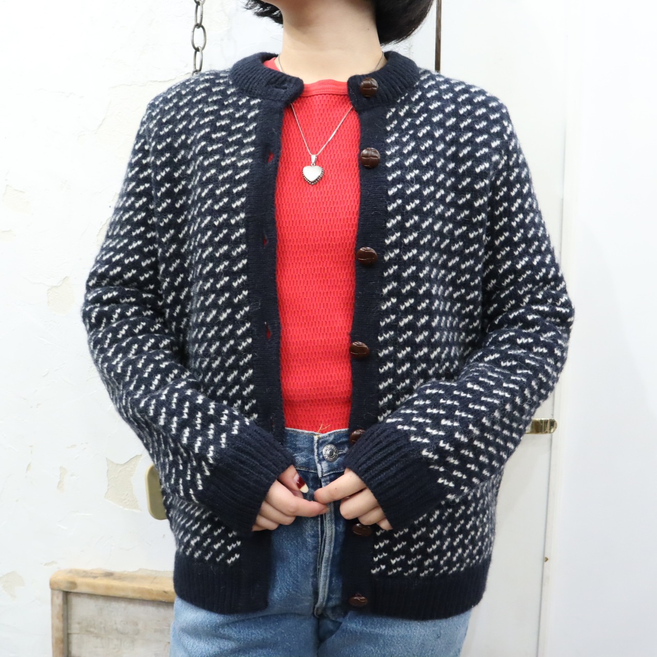 レディースサイズが嬉しいバーズアイのニットカーディガンです。