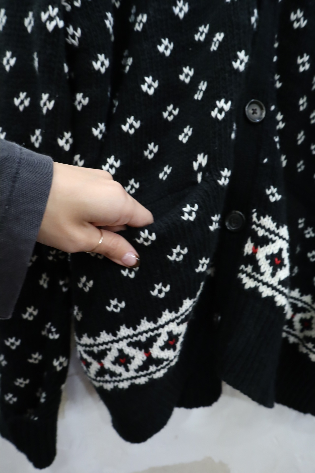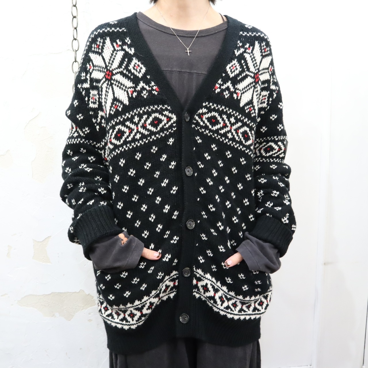 "Ralph Lauren" black×white×red nordic pattern knit cardigan [k-1831]