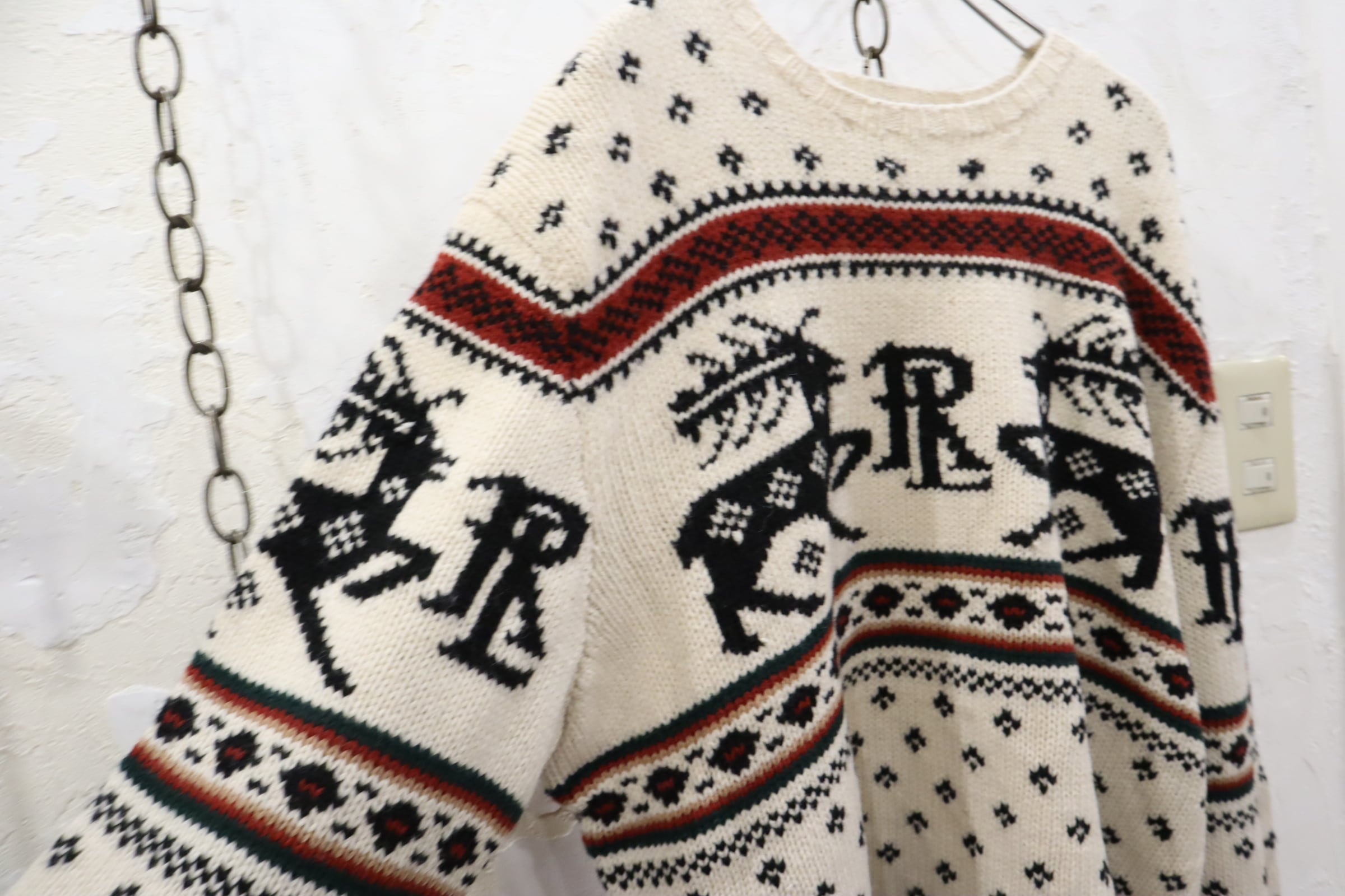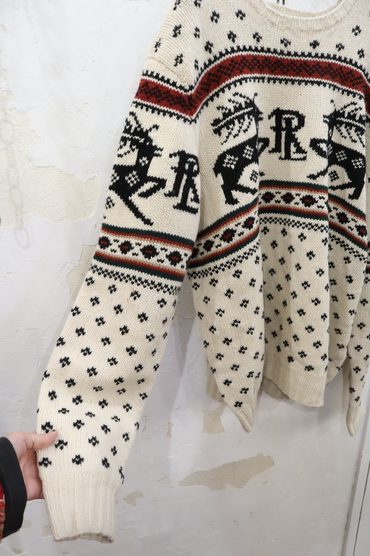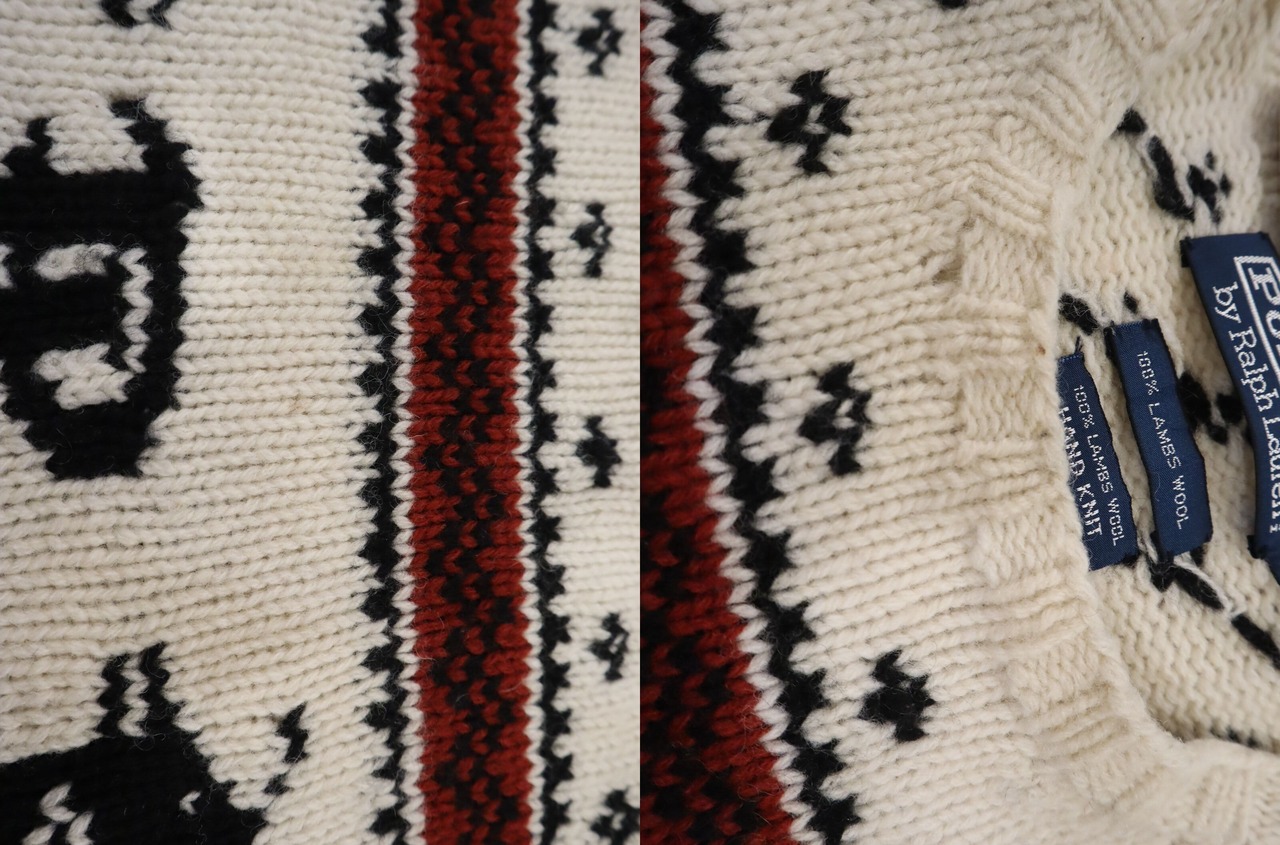 "Ralph Lauren" white×black×red nordic pattern knit pullover [k-1832]
