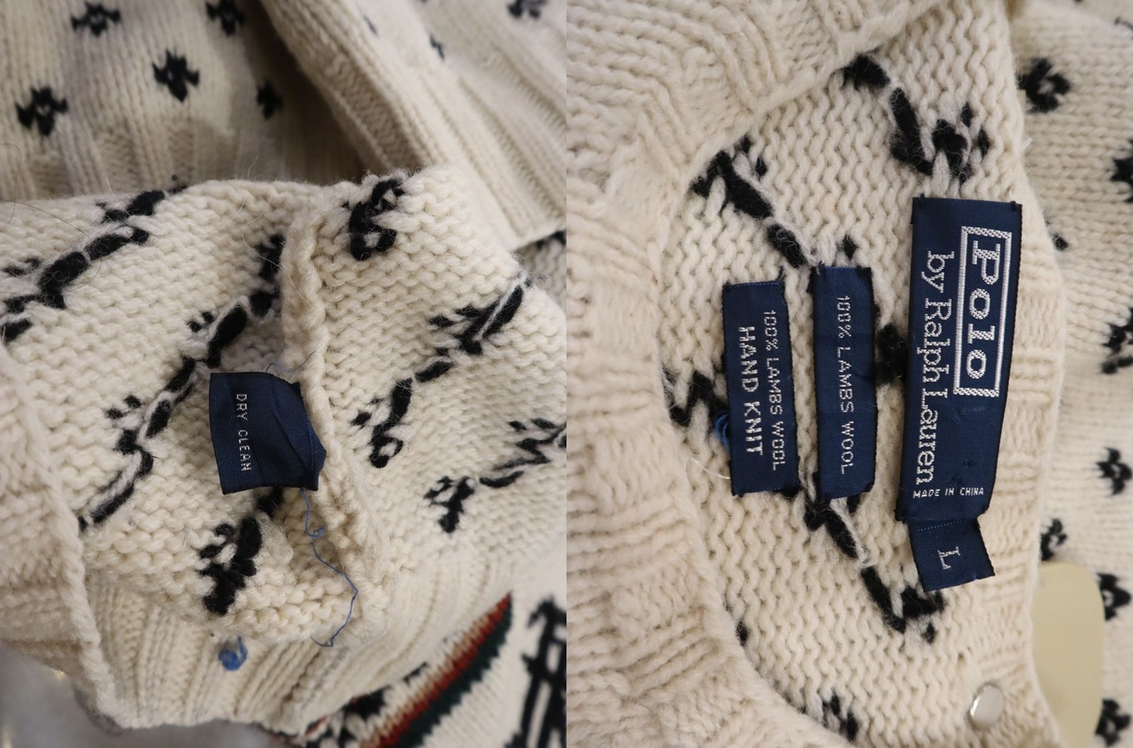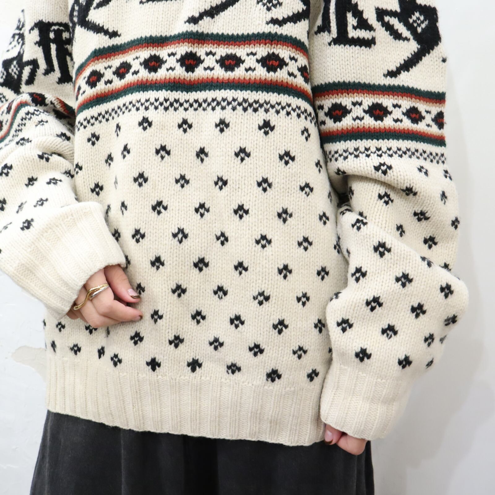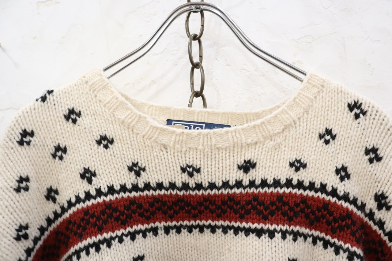 "Ralph Lauren" white×black×red nordic pattern knit pullover [k-1832]
