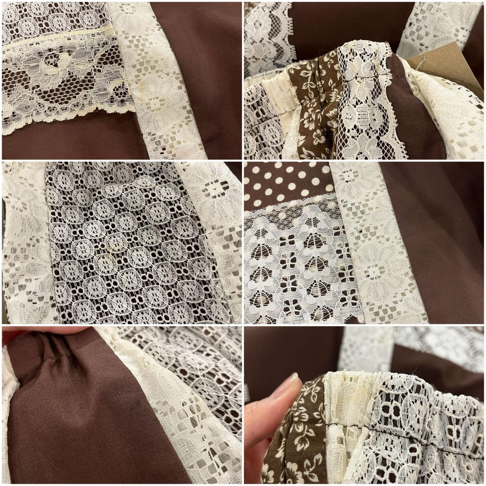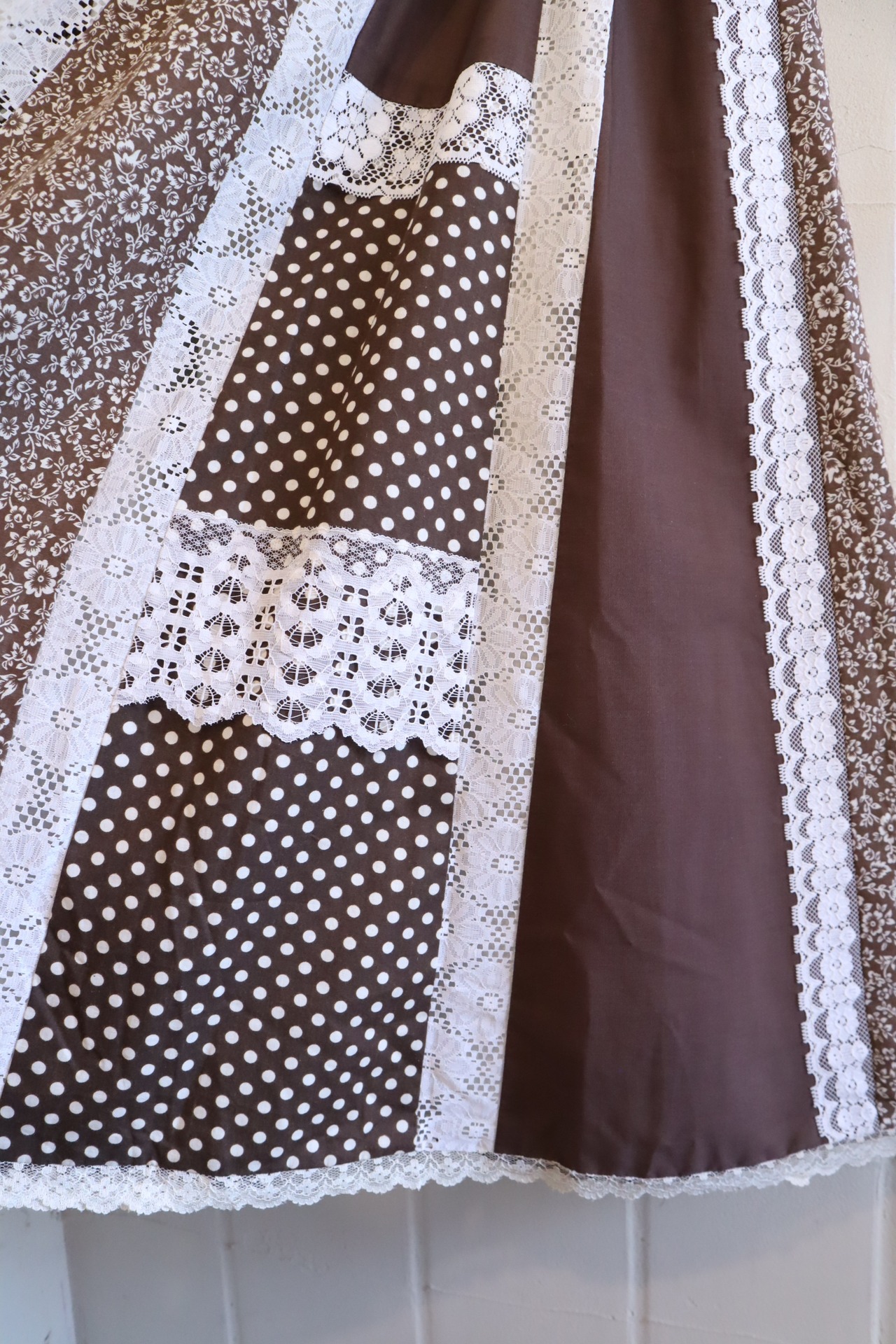 70s brown×white lace switching long skirt [l-1836]