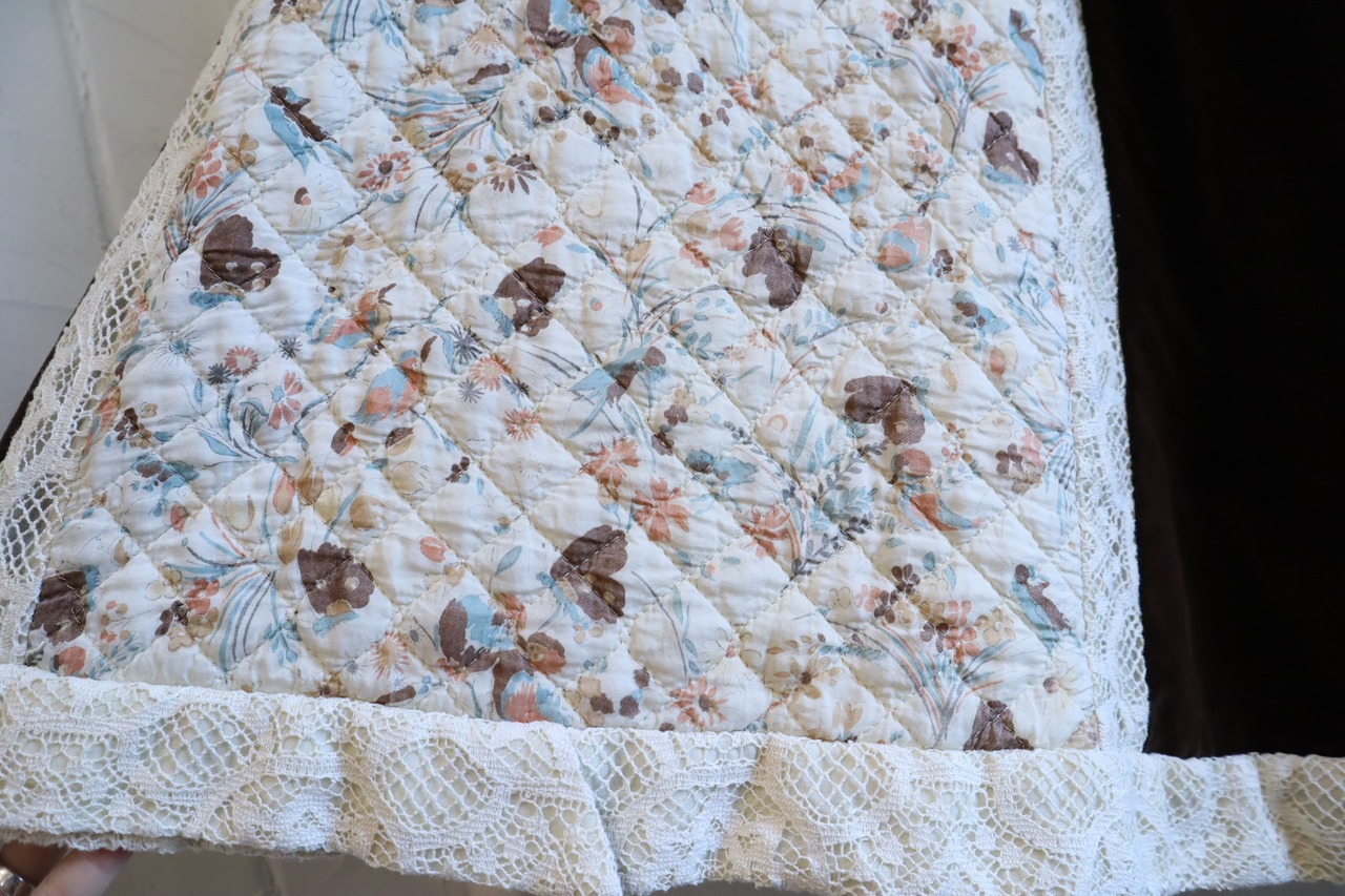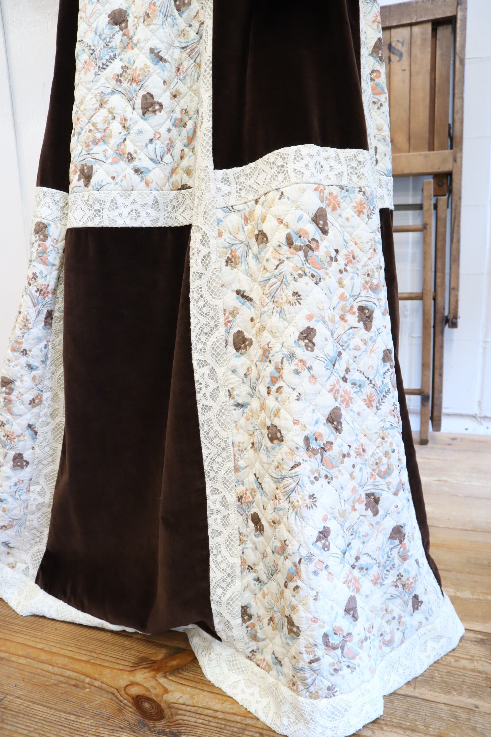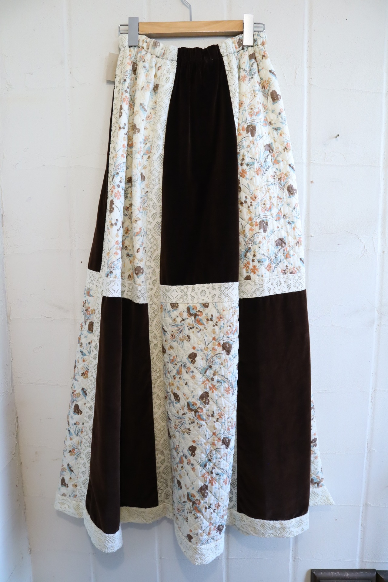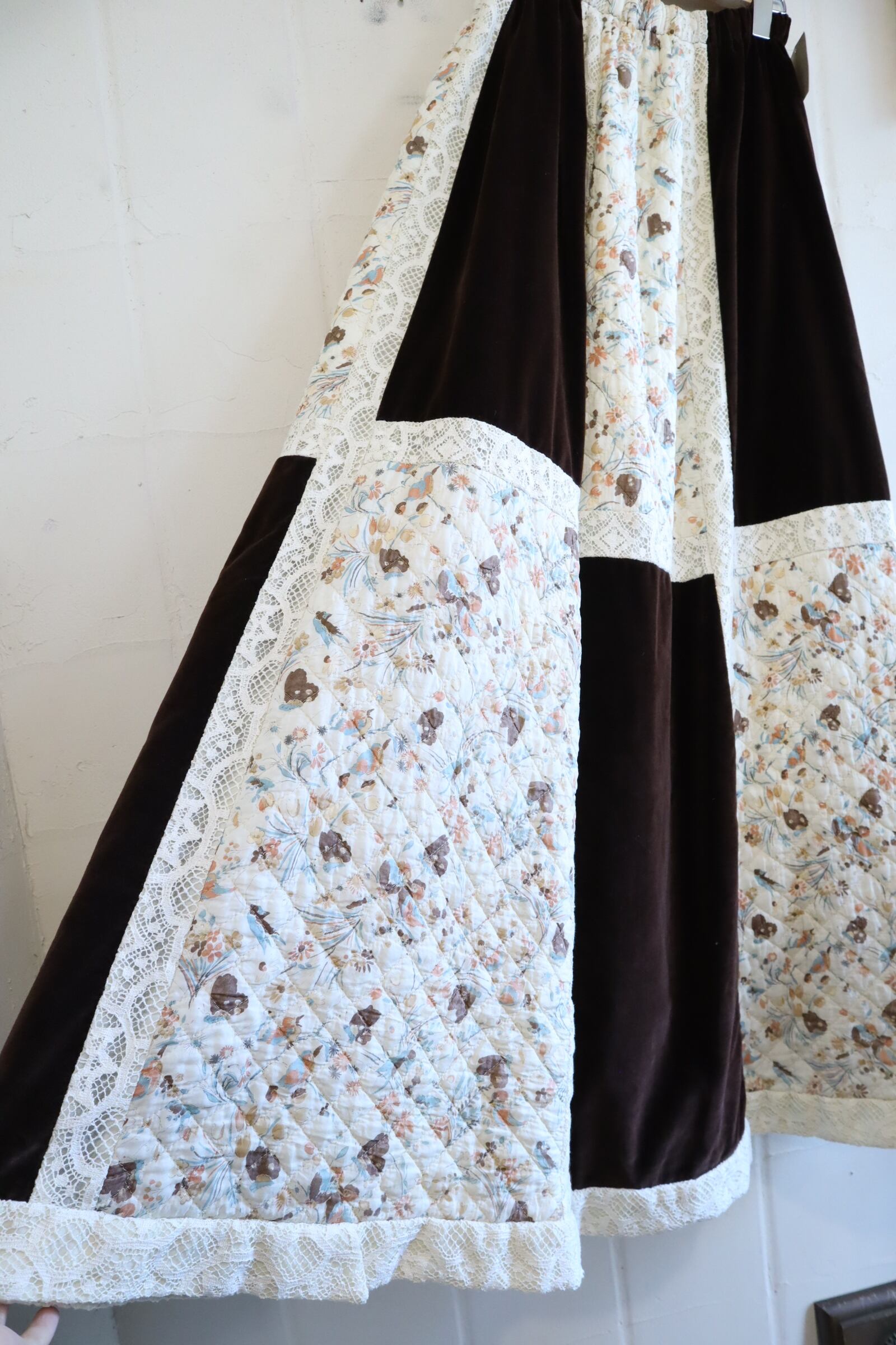 キルティングとベロアの組み合わせがとても可愛いパッチワークスカートです。