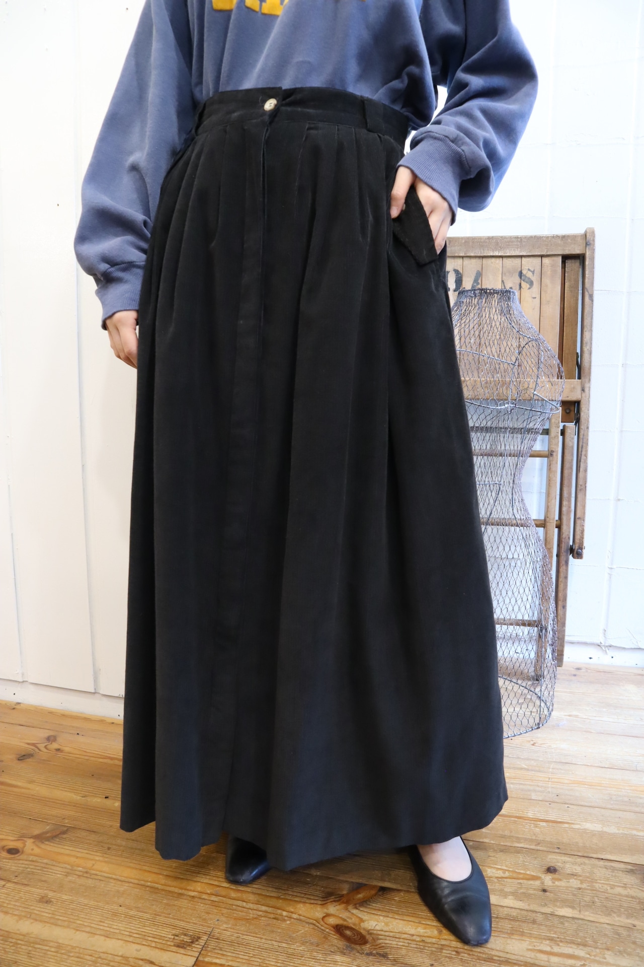 ゆるやかに広がったシルエットが可愛いコーデュロイスカート*