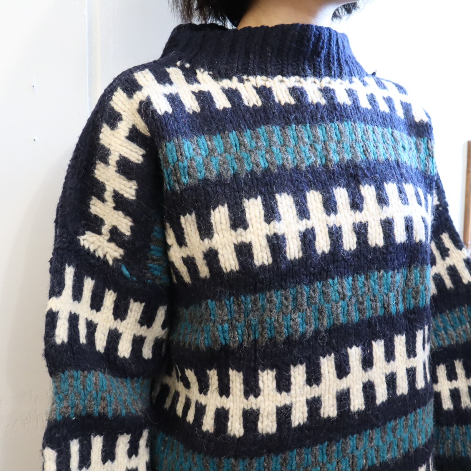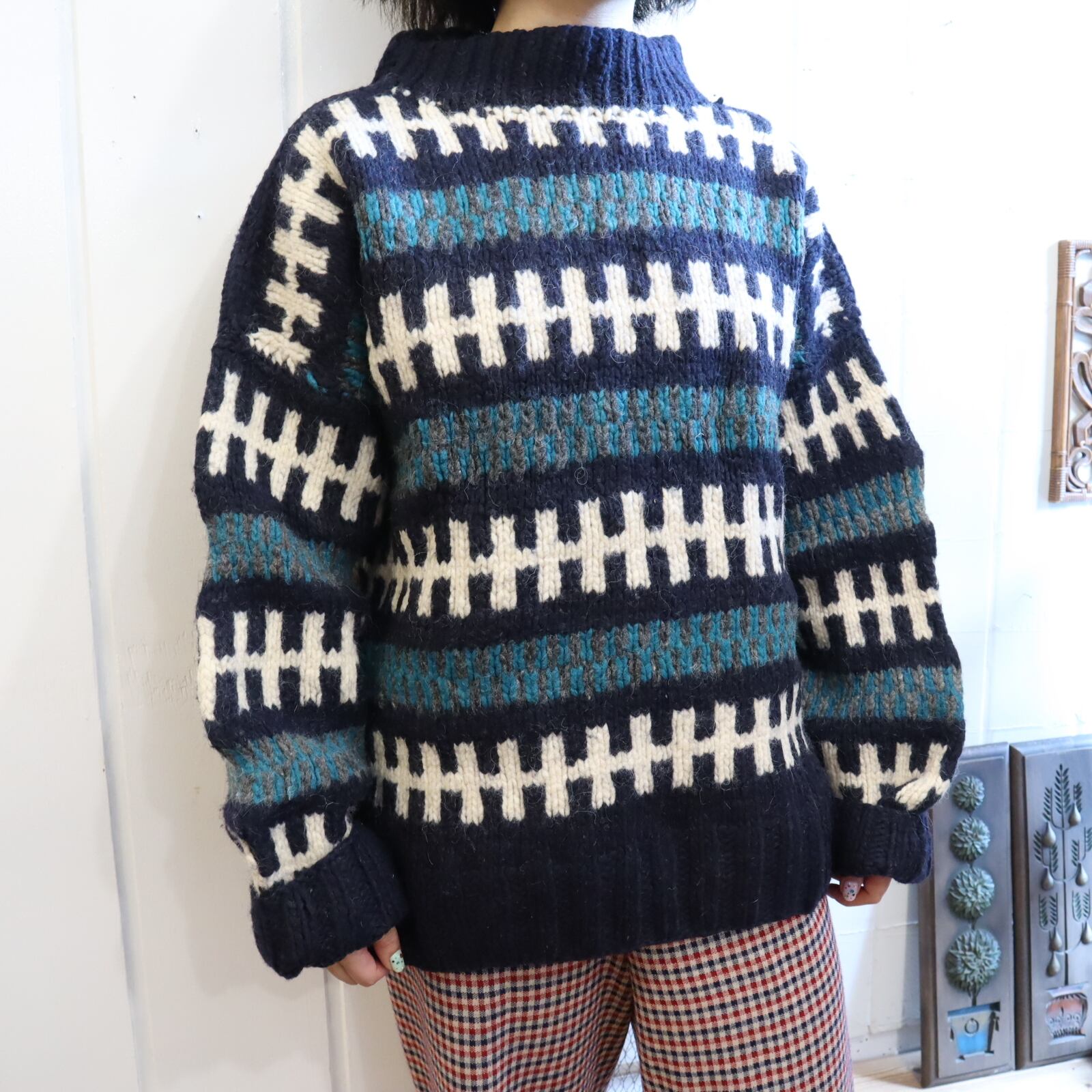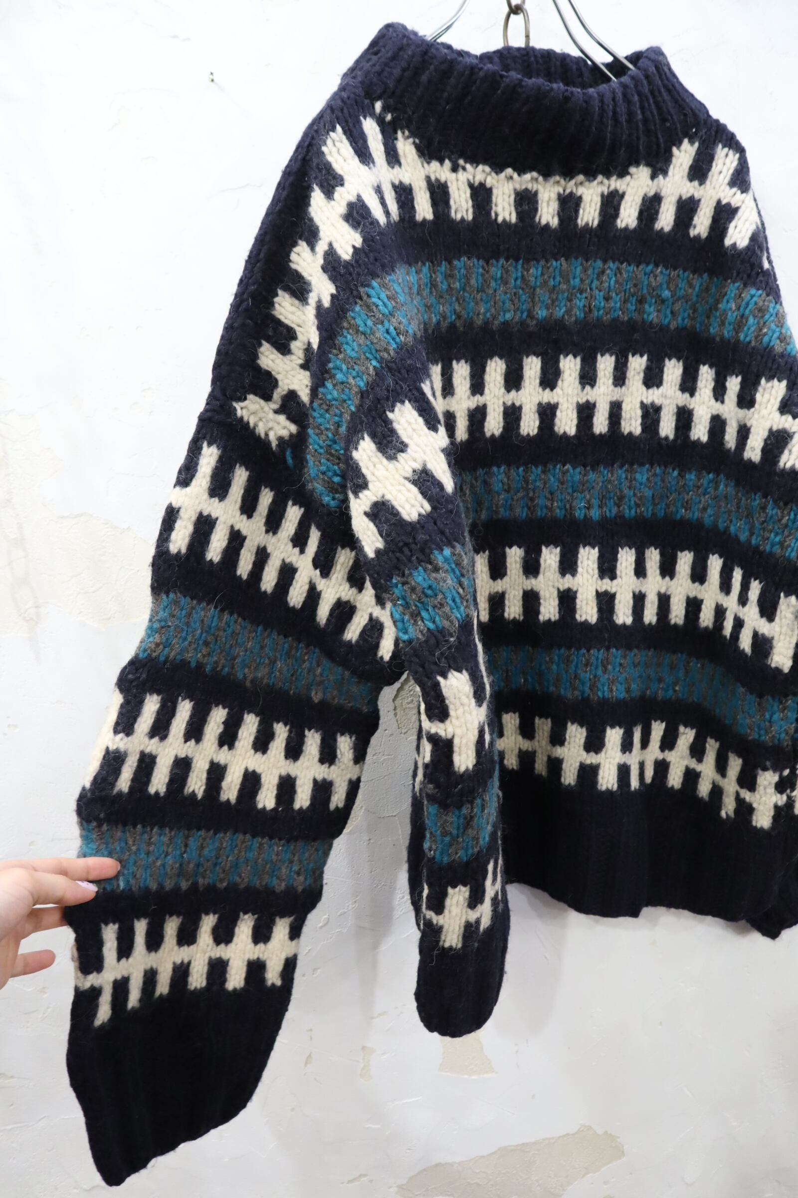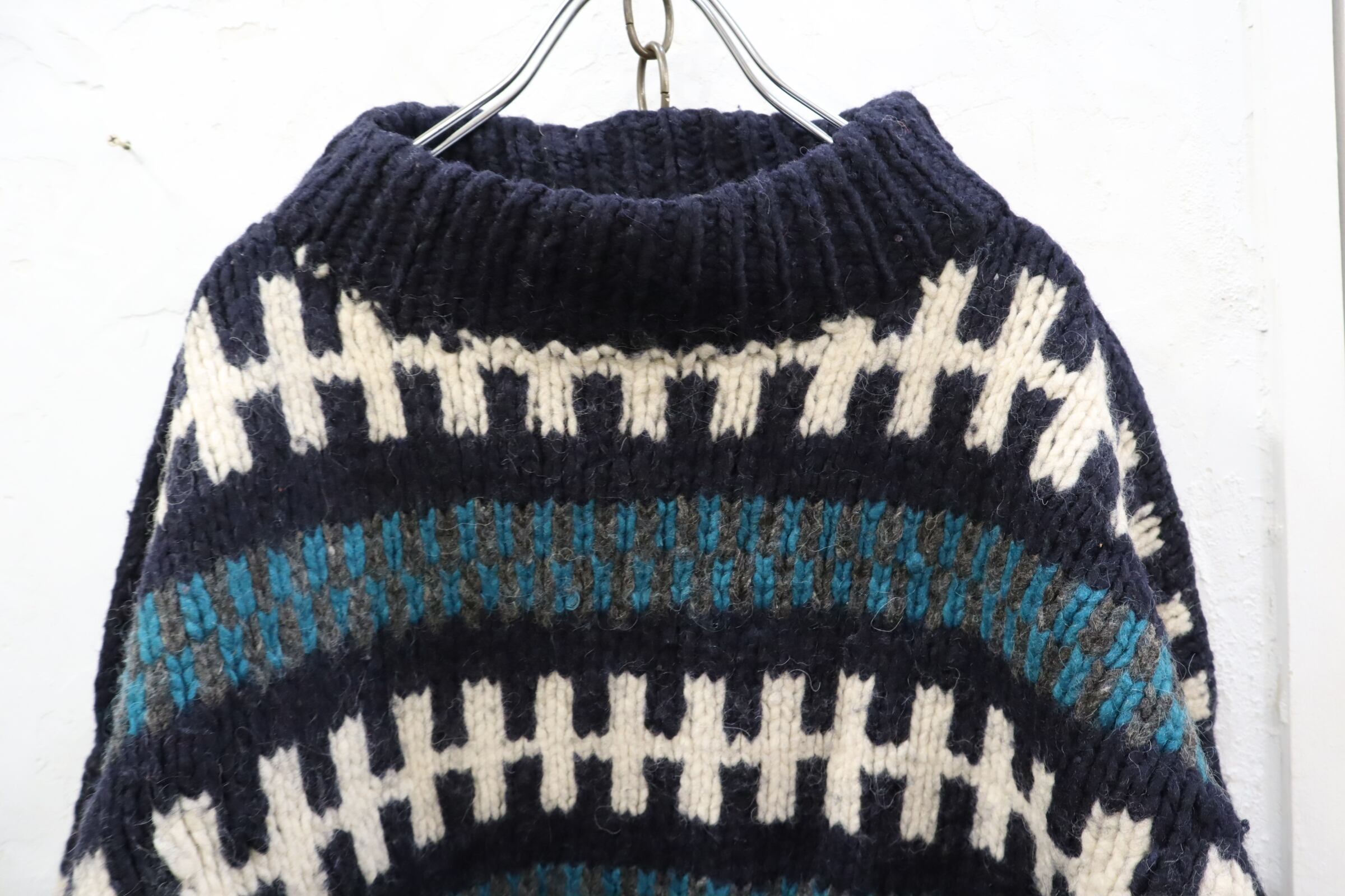 made in ECUADOR navy×green×white knit pullover [l-1851]