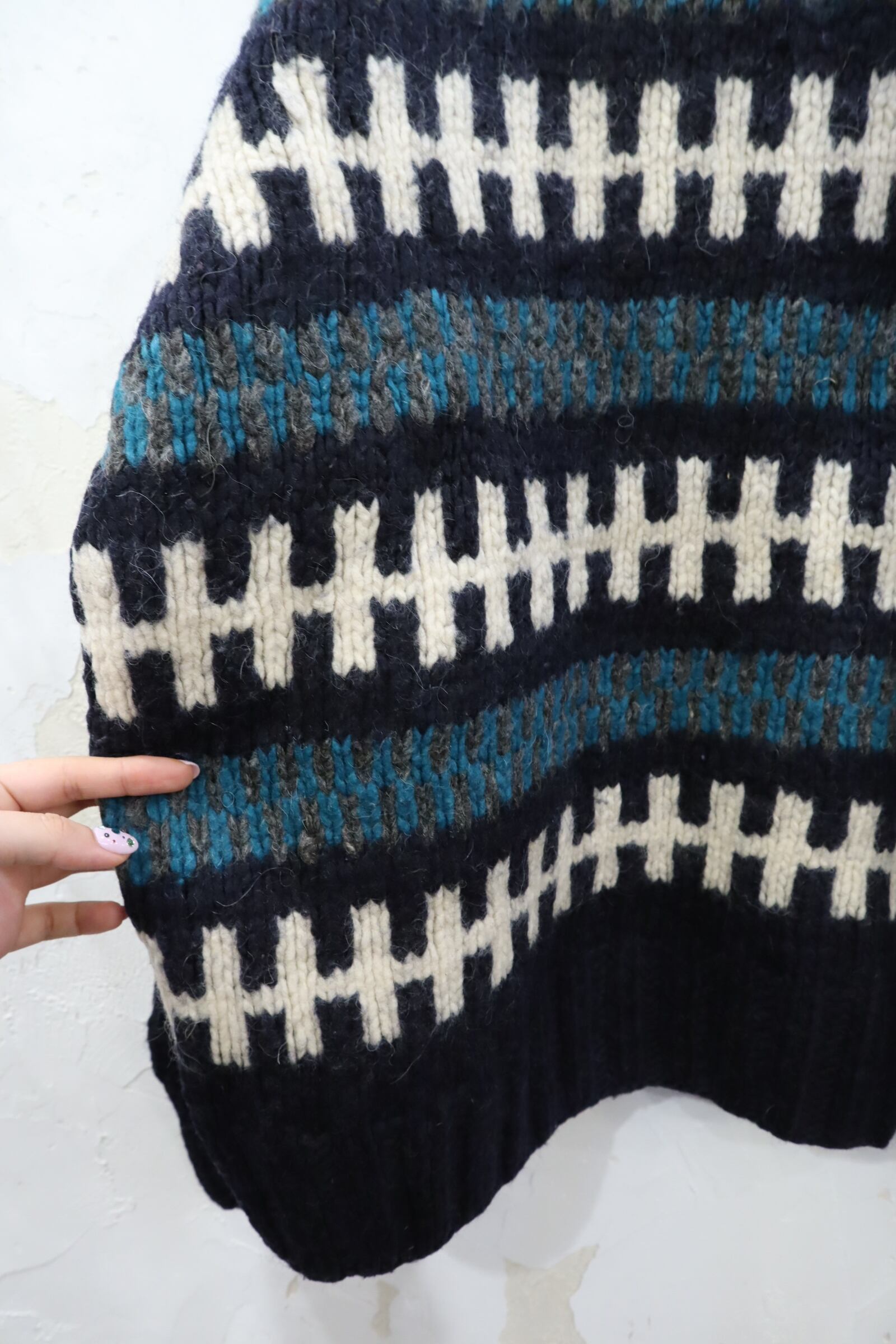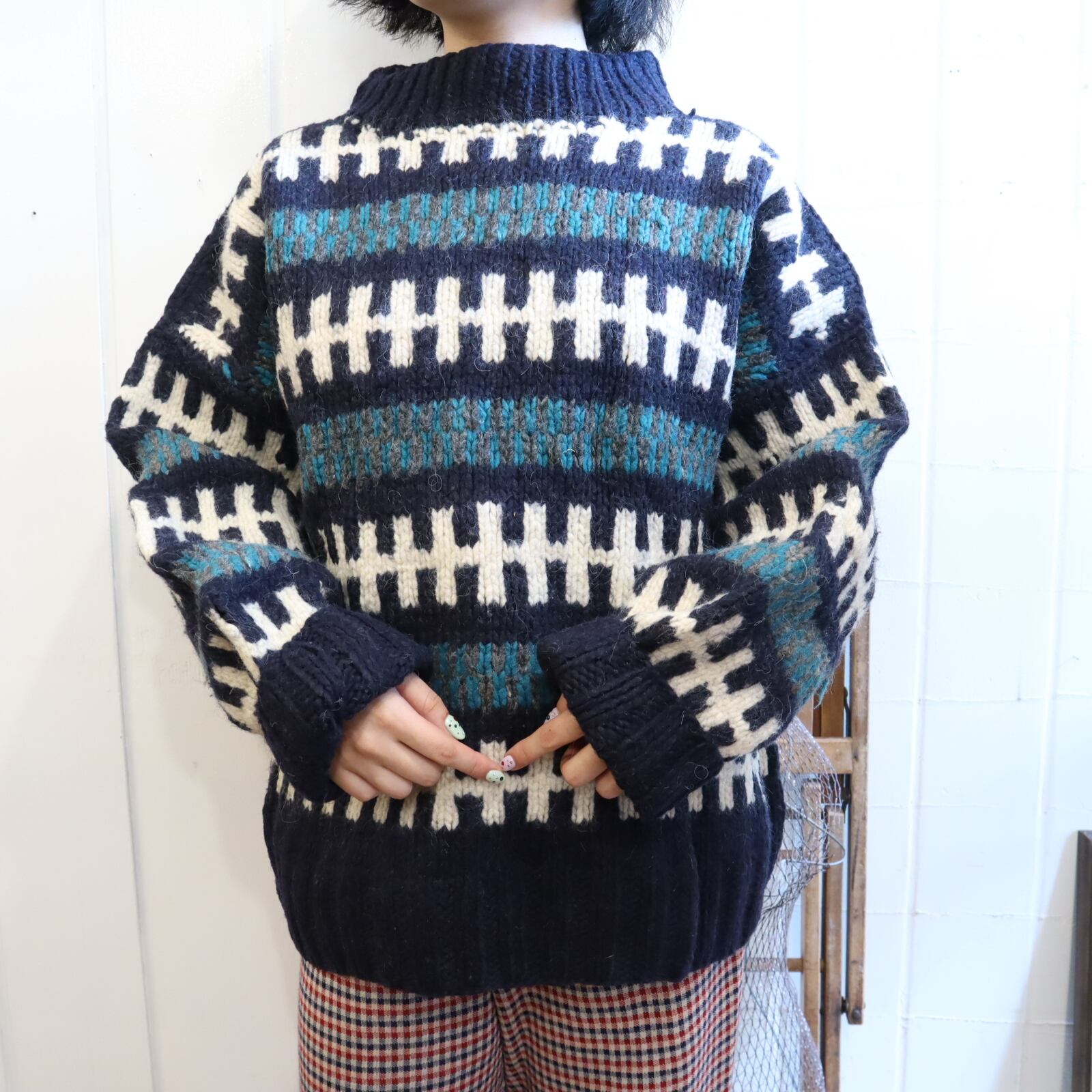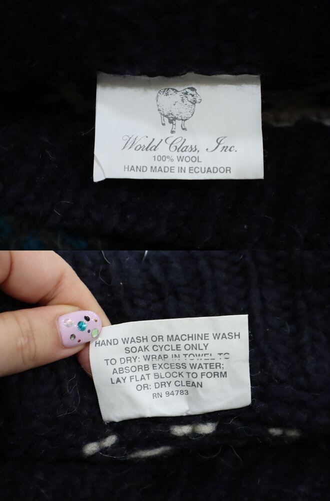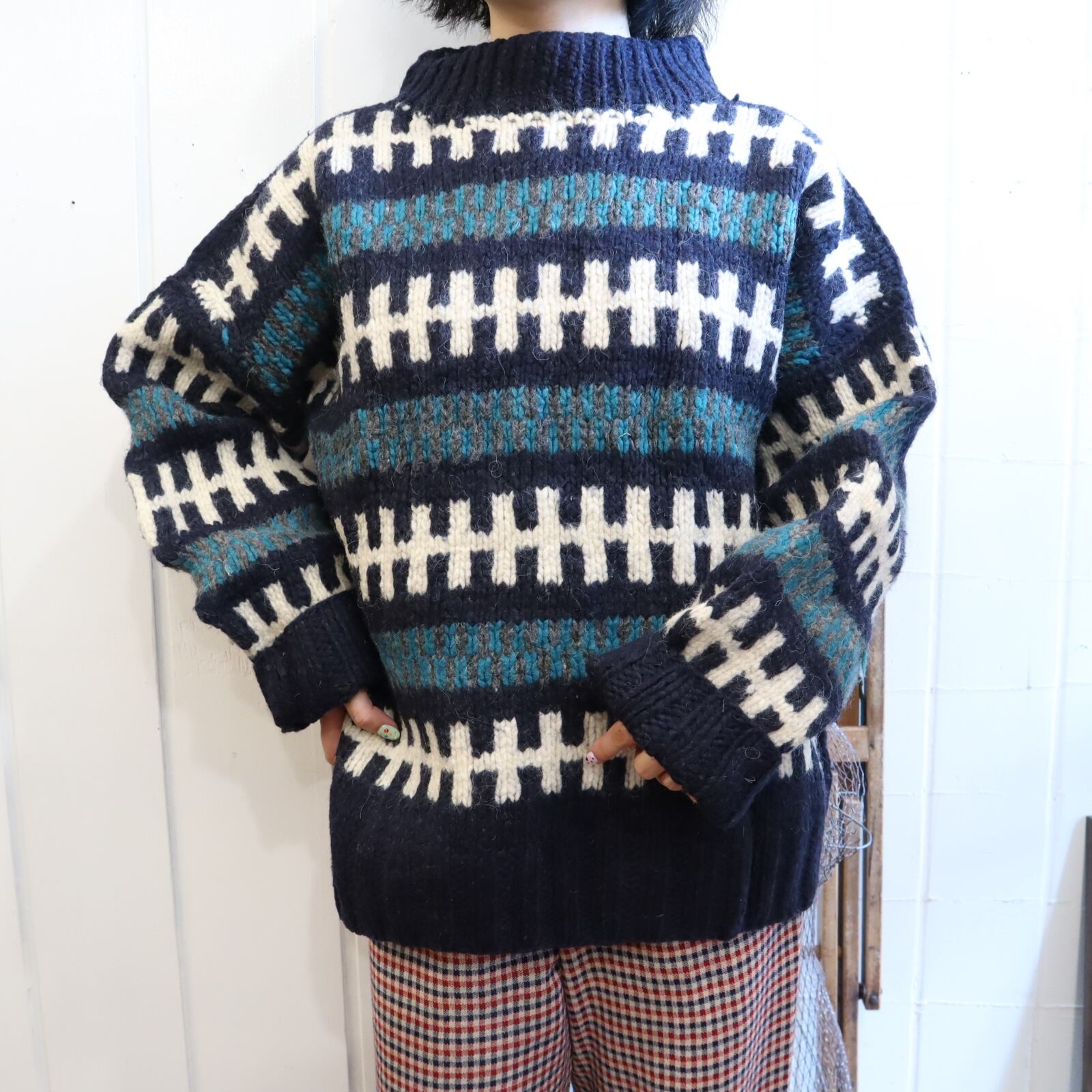 made in ECUADOR navy×green×white knit pullover [l-1851]