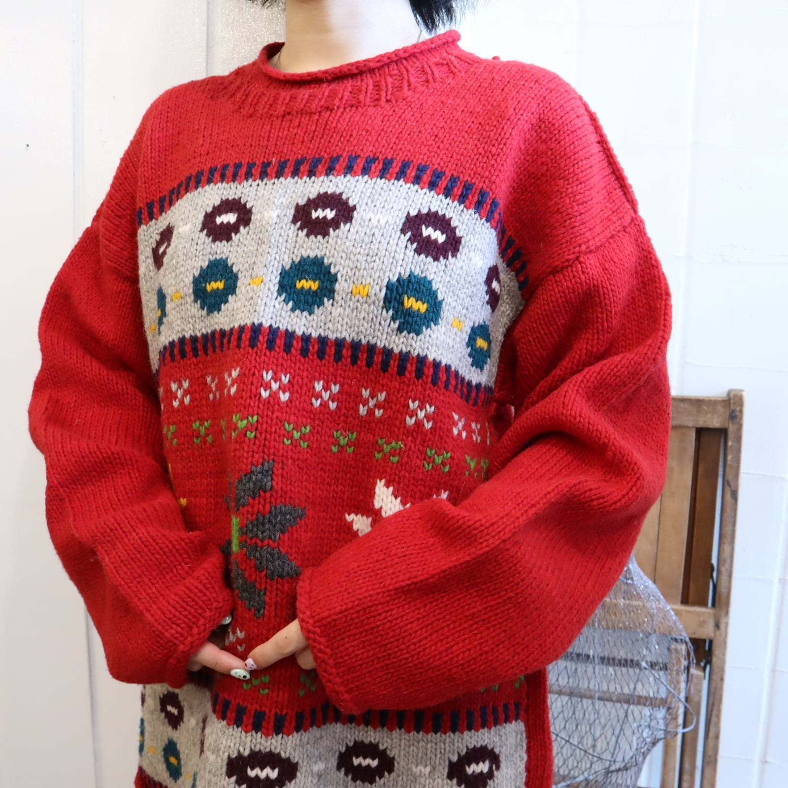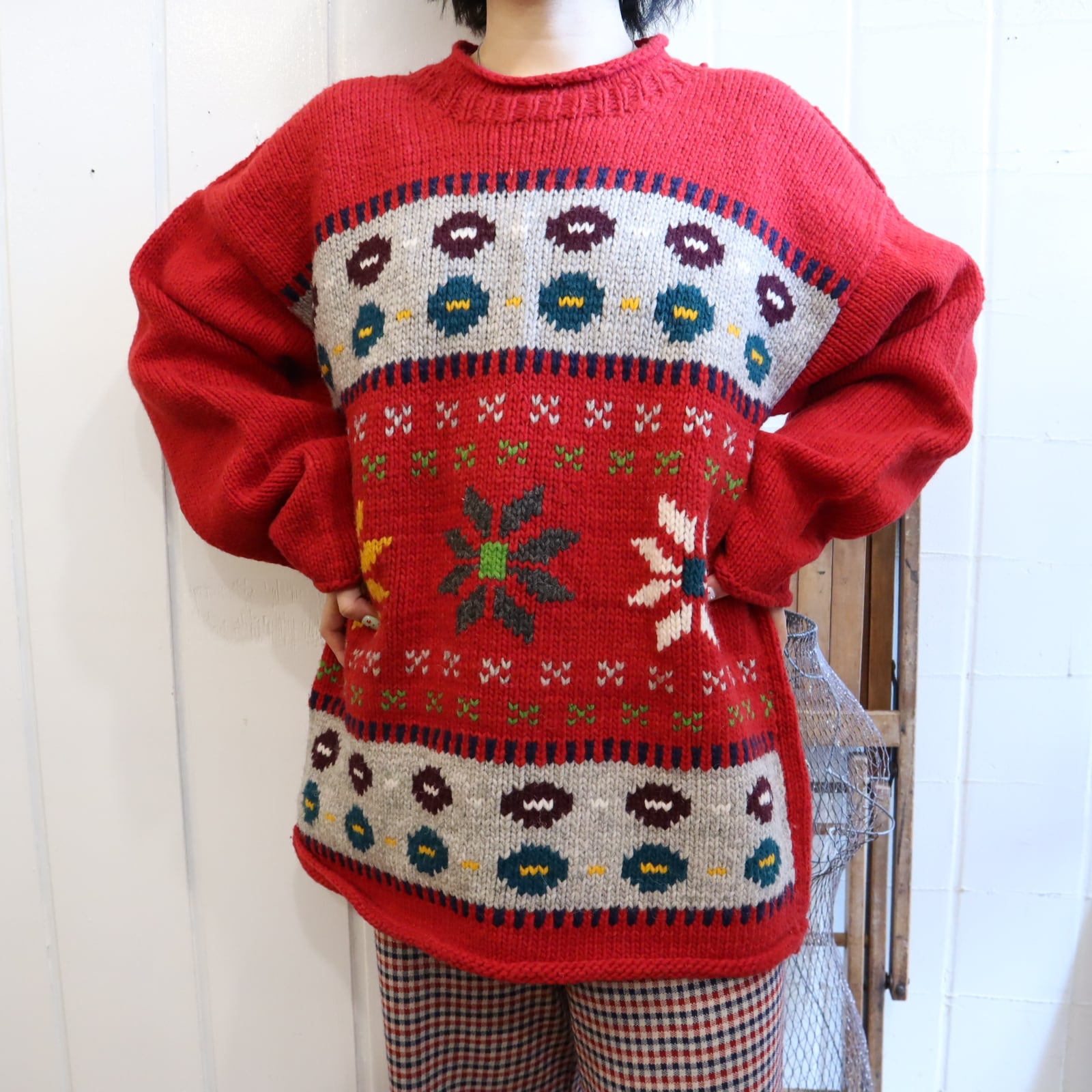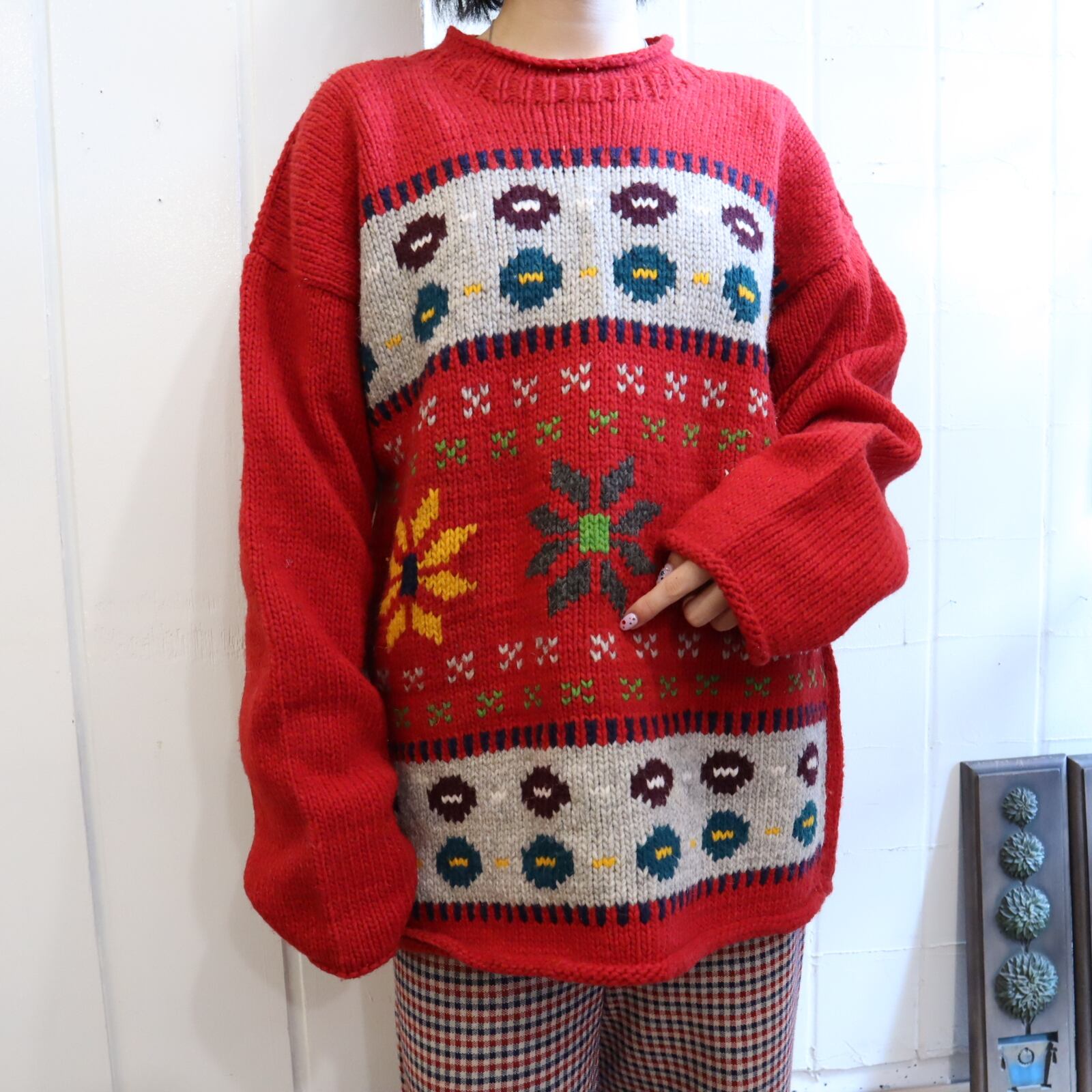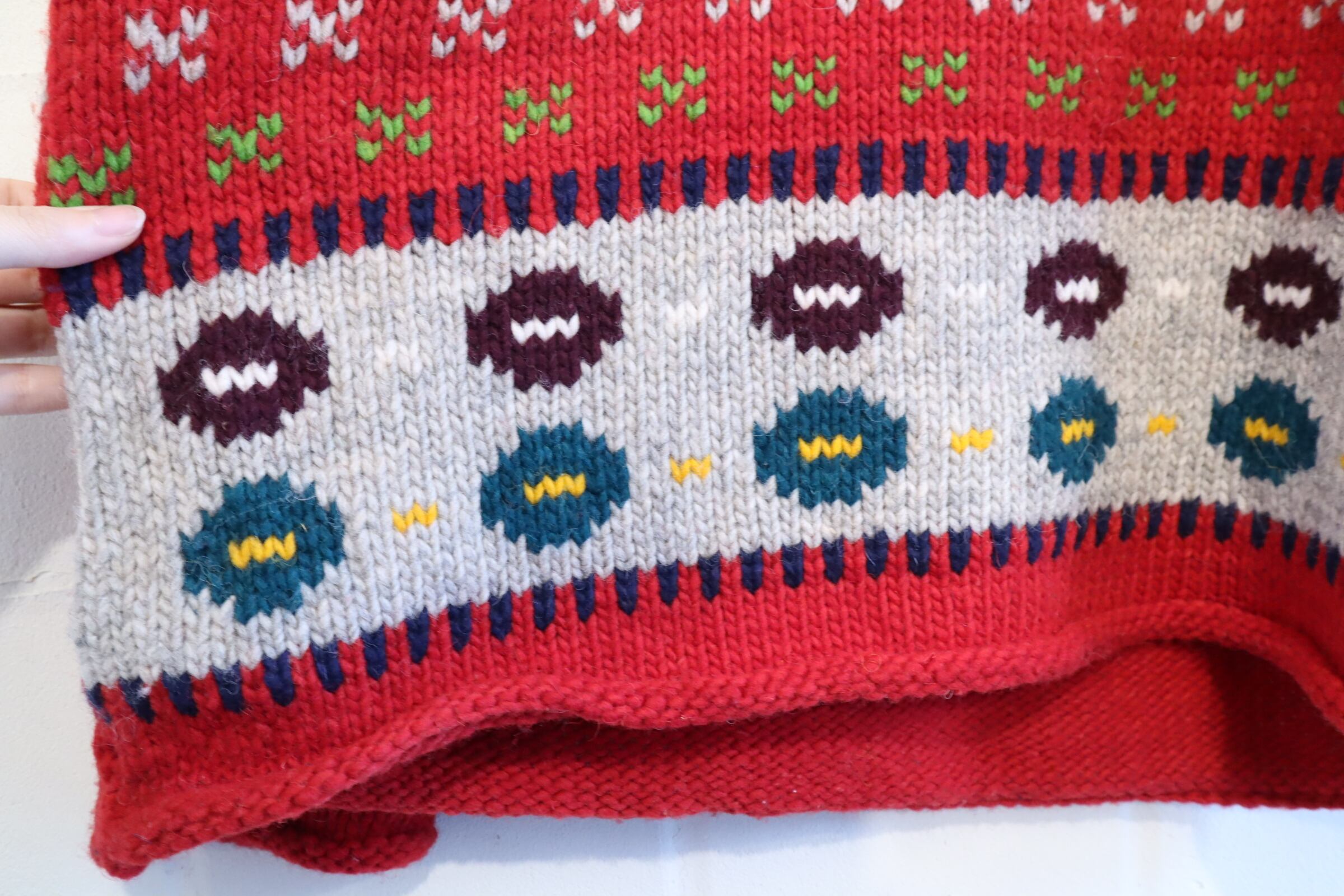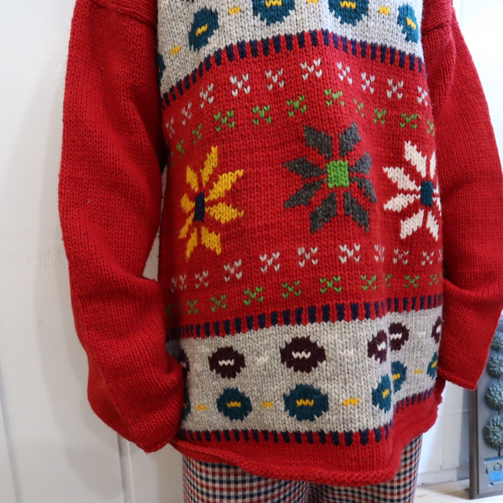 お花モチーフの柄が可愛いプルオーバーニットです。