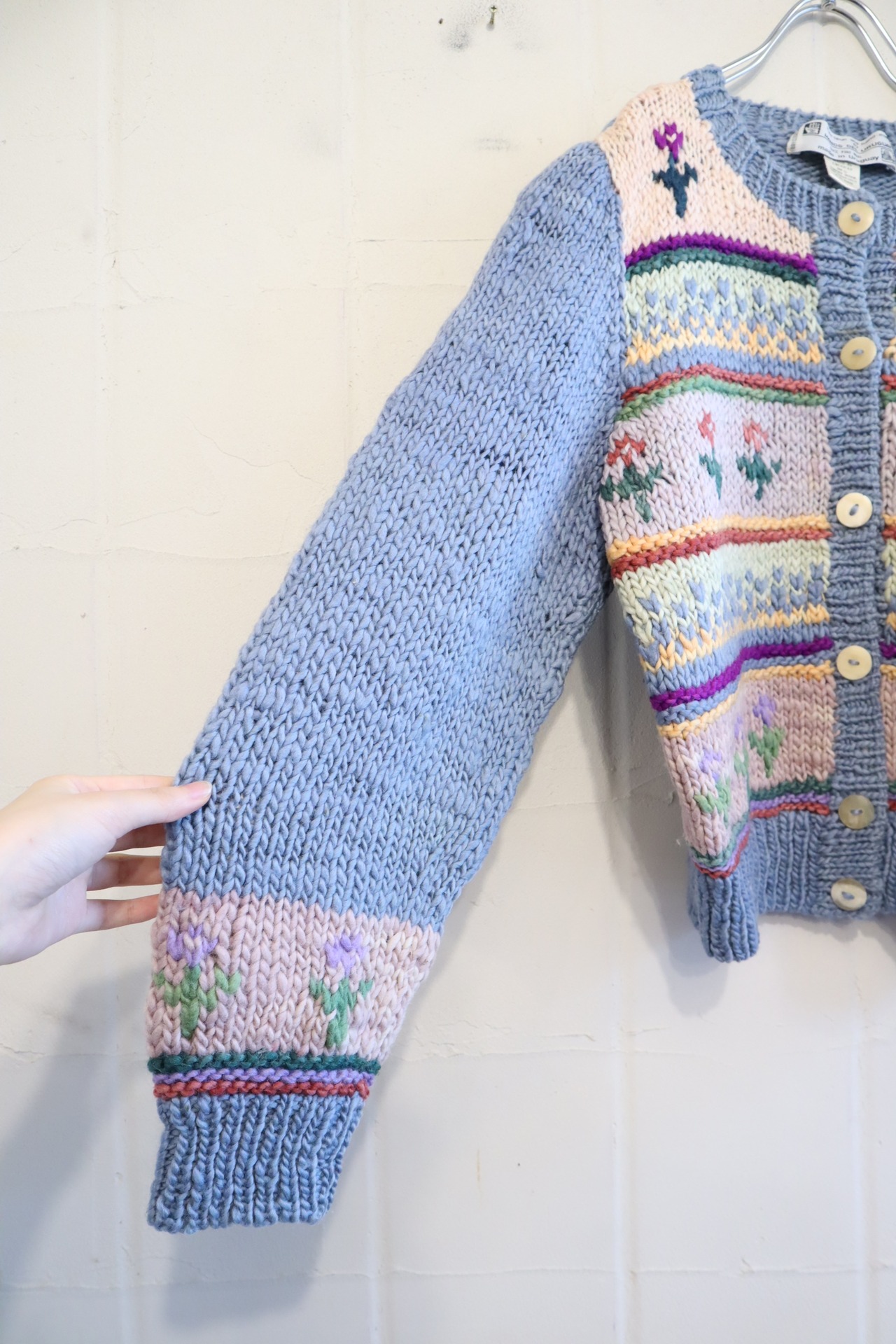 made in Uruguay lightblue×colorful knit cardigan [l-1853]
