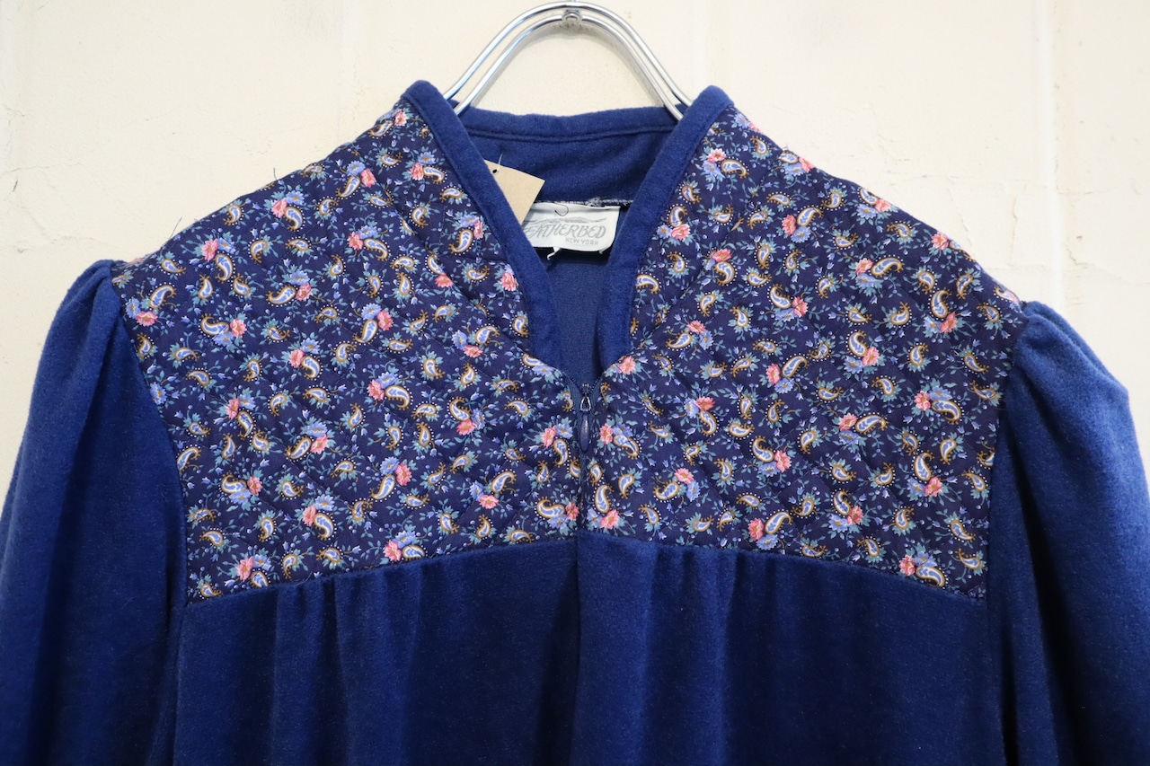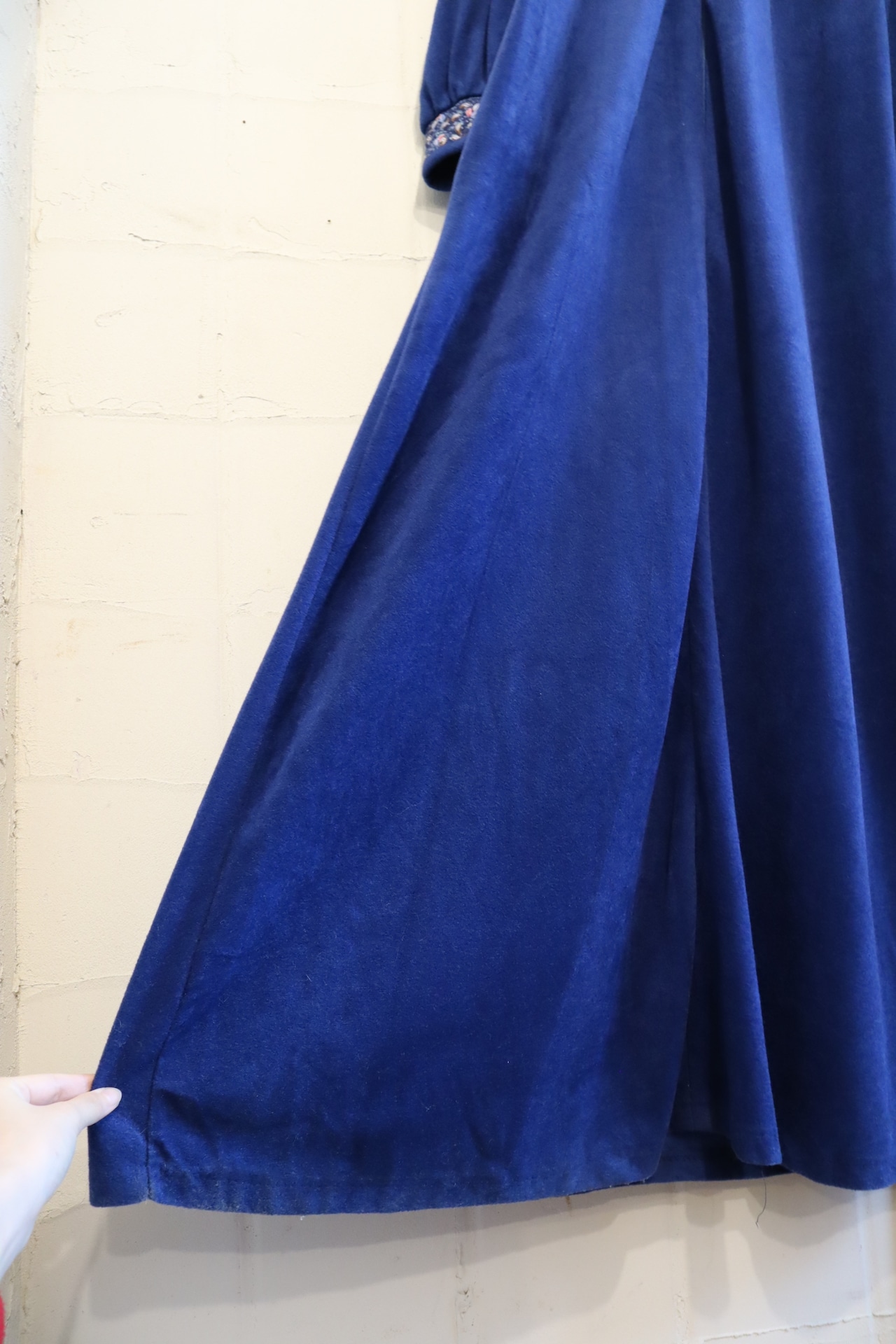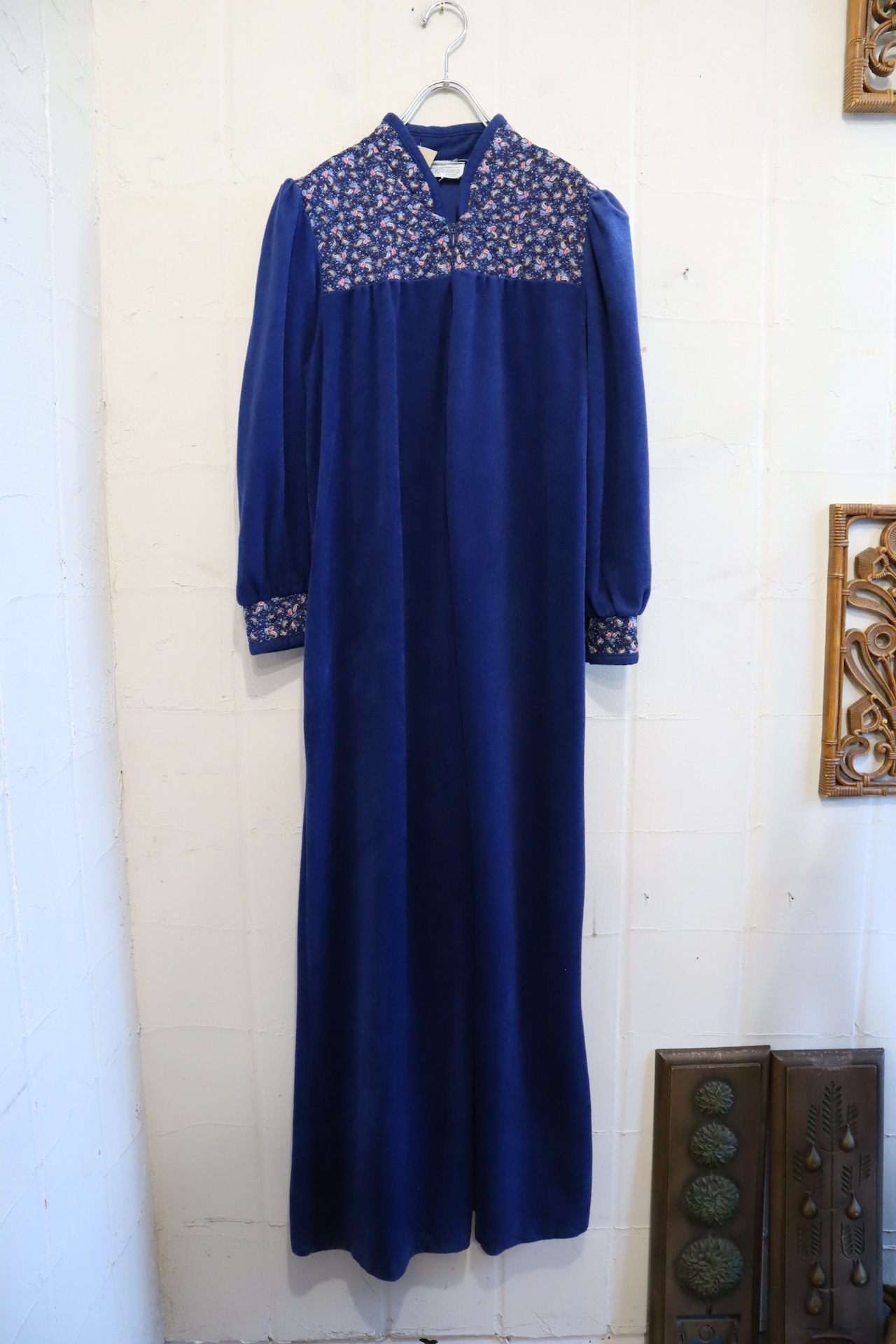 -80s navy×pink quilting switching velour long dress [l-1855]