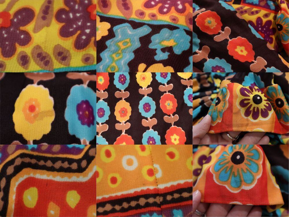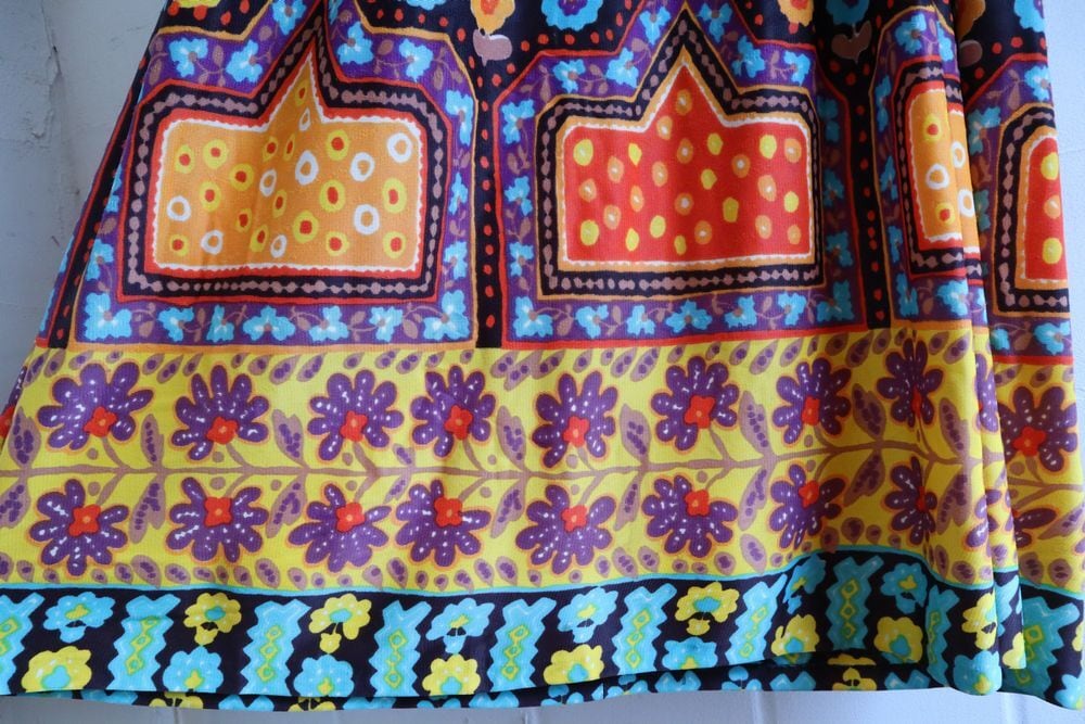 70sらしいハッピーなカラーリングが可愛いドレスです。
