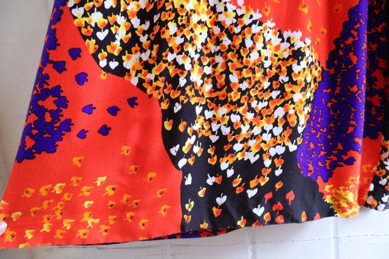 70s black×orange×colorful plain&pattern long dress [l-41587]