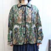 green×beige×black cat&dog gobelin jacket [l-1864]