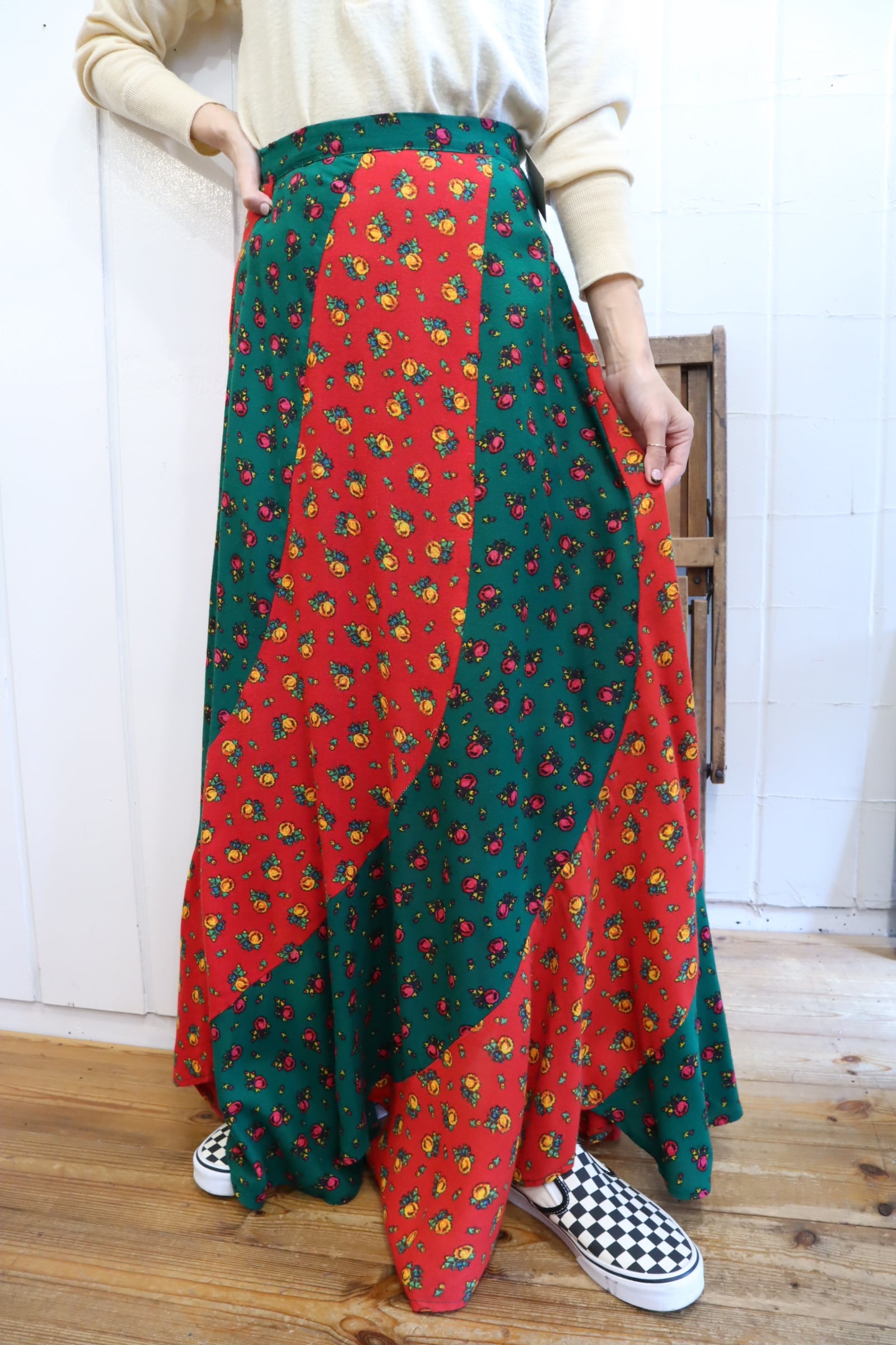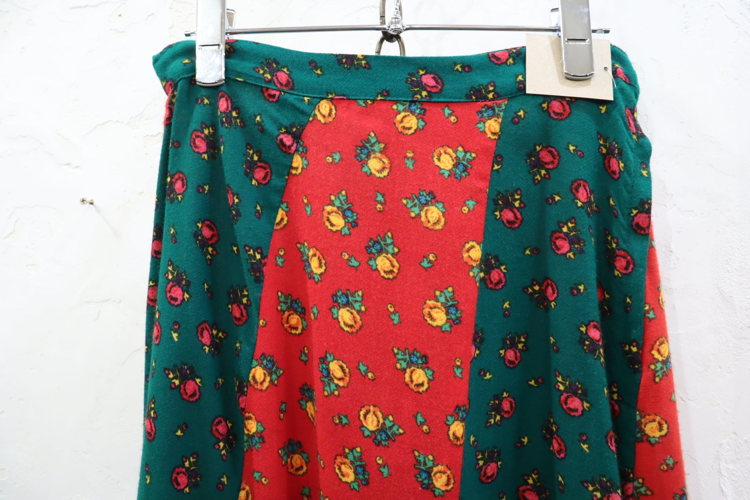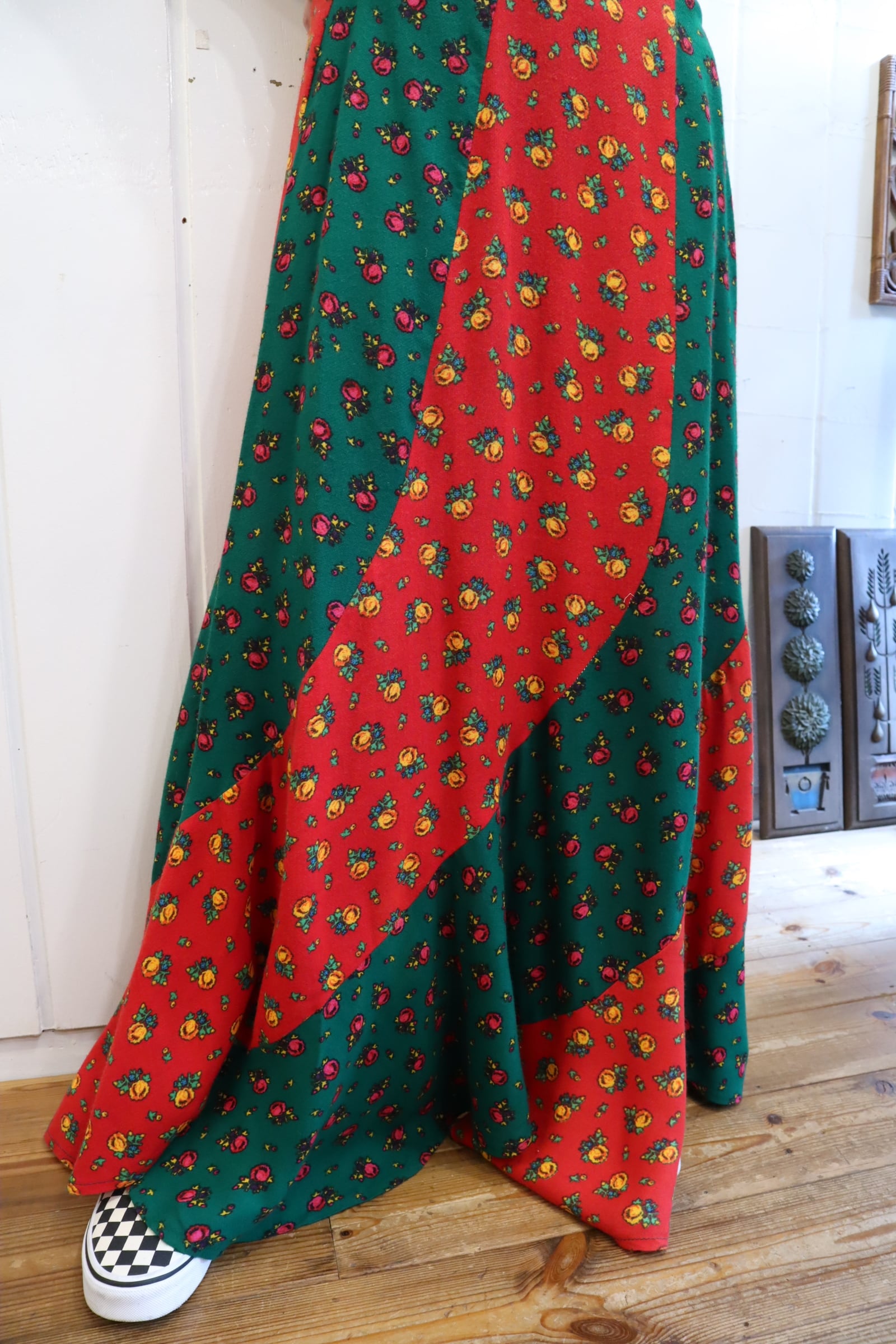 70s red×green×yellow flower pattern escargot long skirt [l-1867]