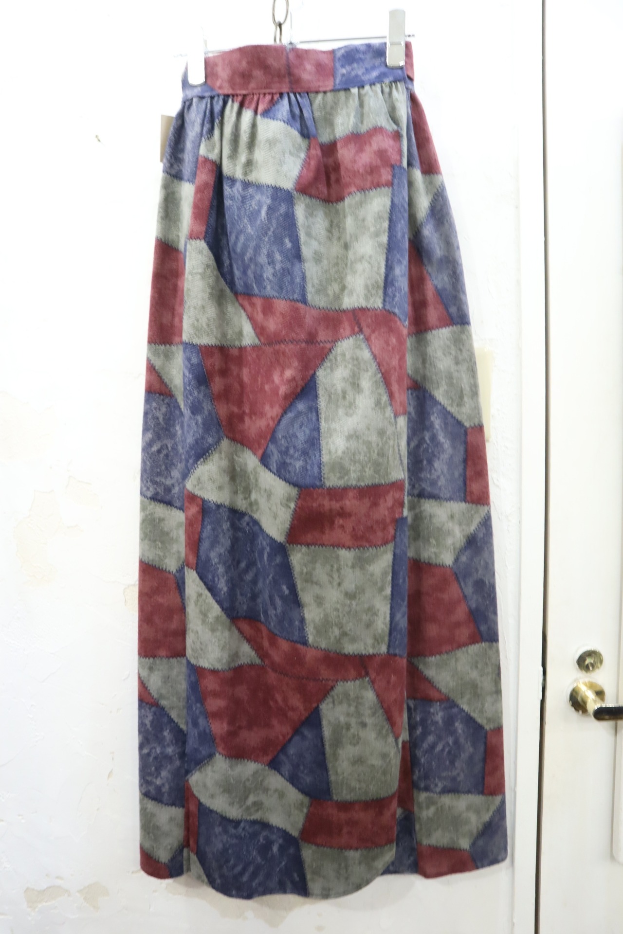 purple×gray×navy patchwork pattern wrap long skirt [l-1868]