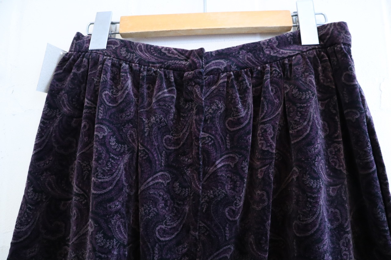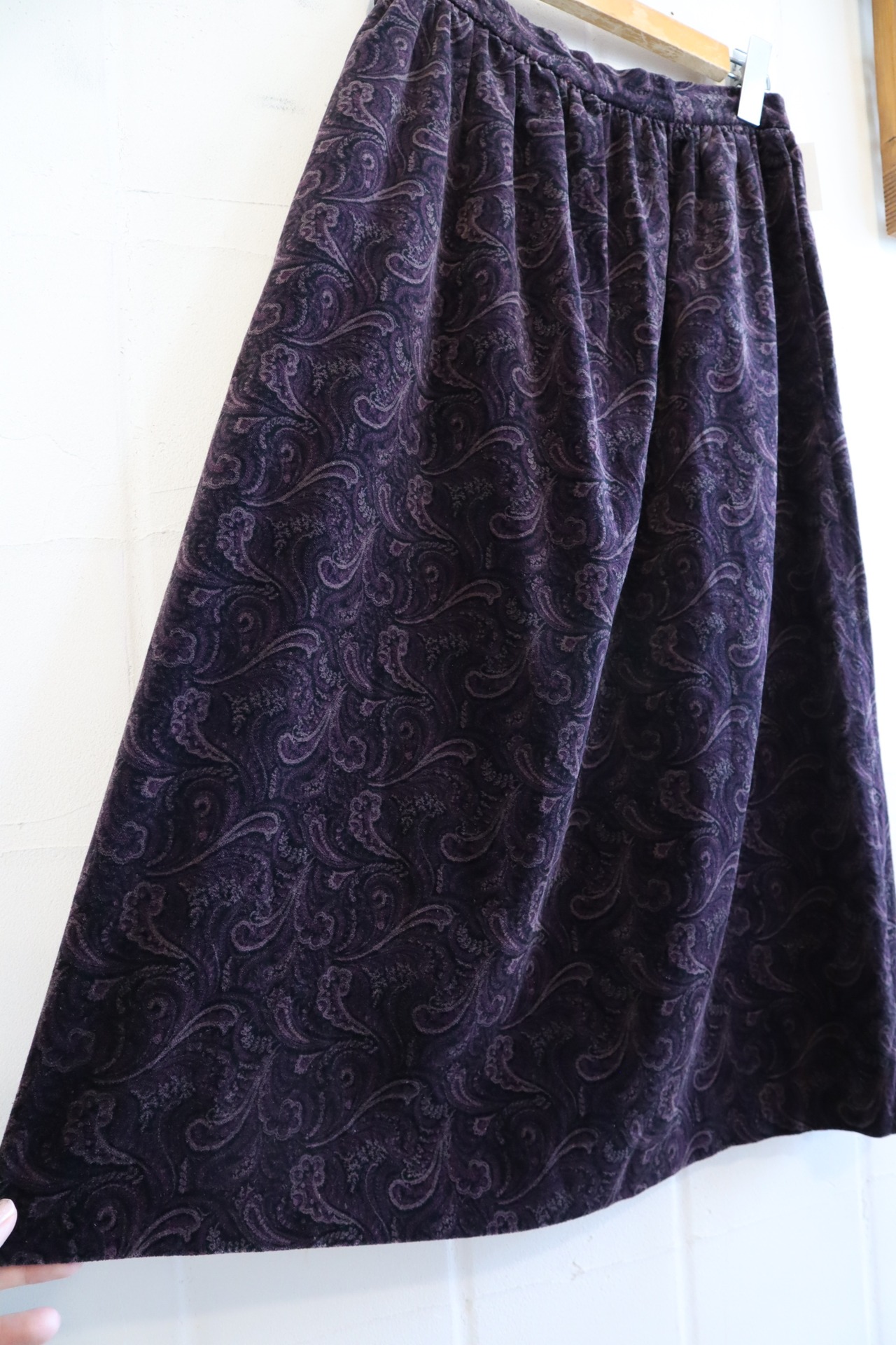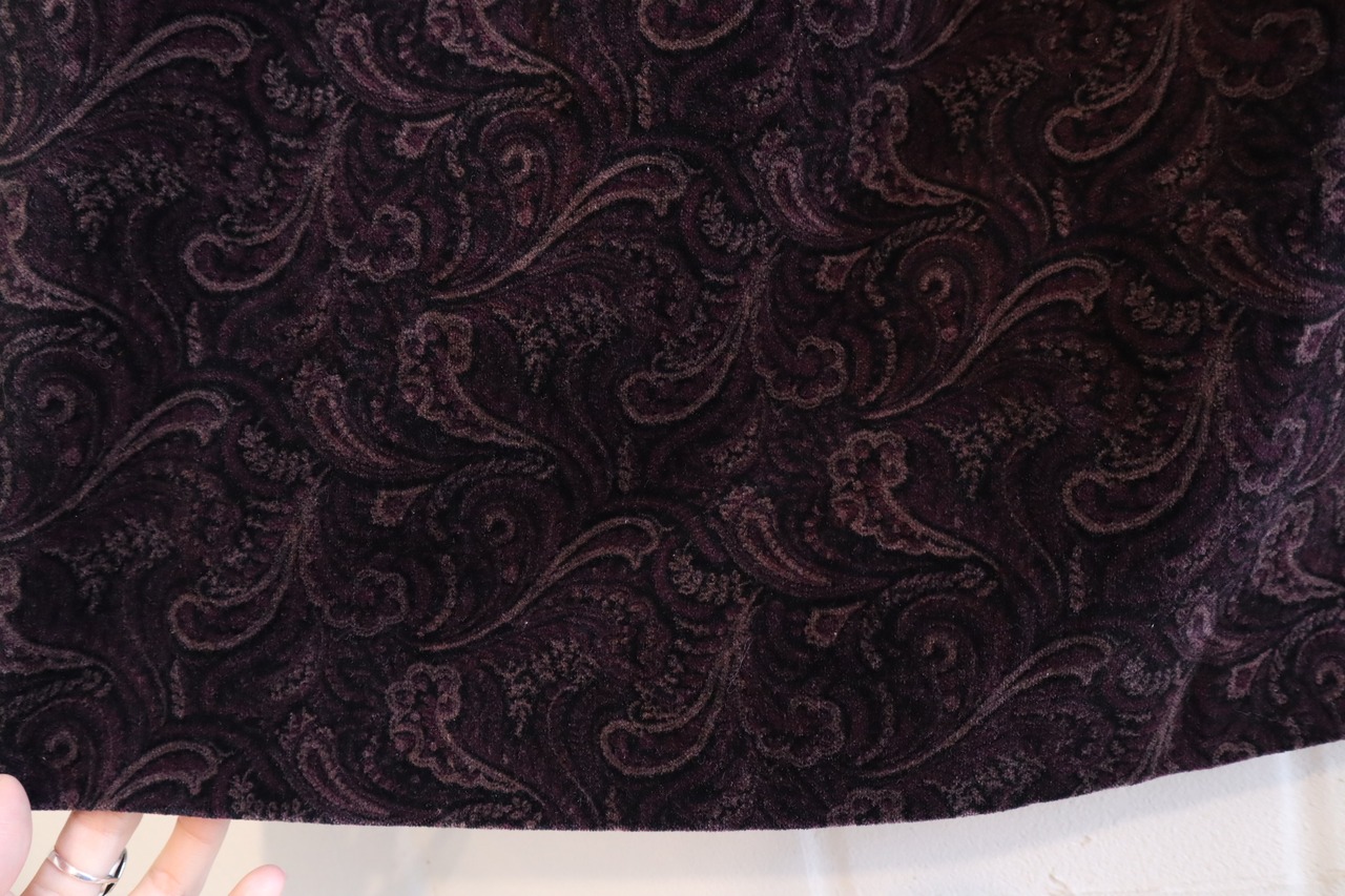 70-80s black×purple paisley pattern velour skirt [l-1885]