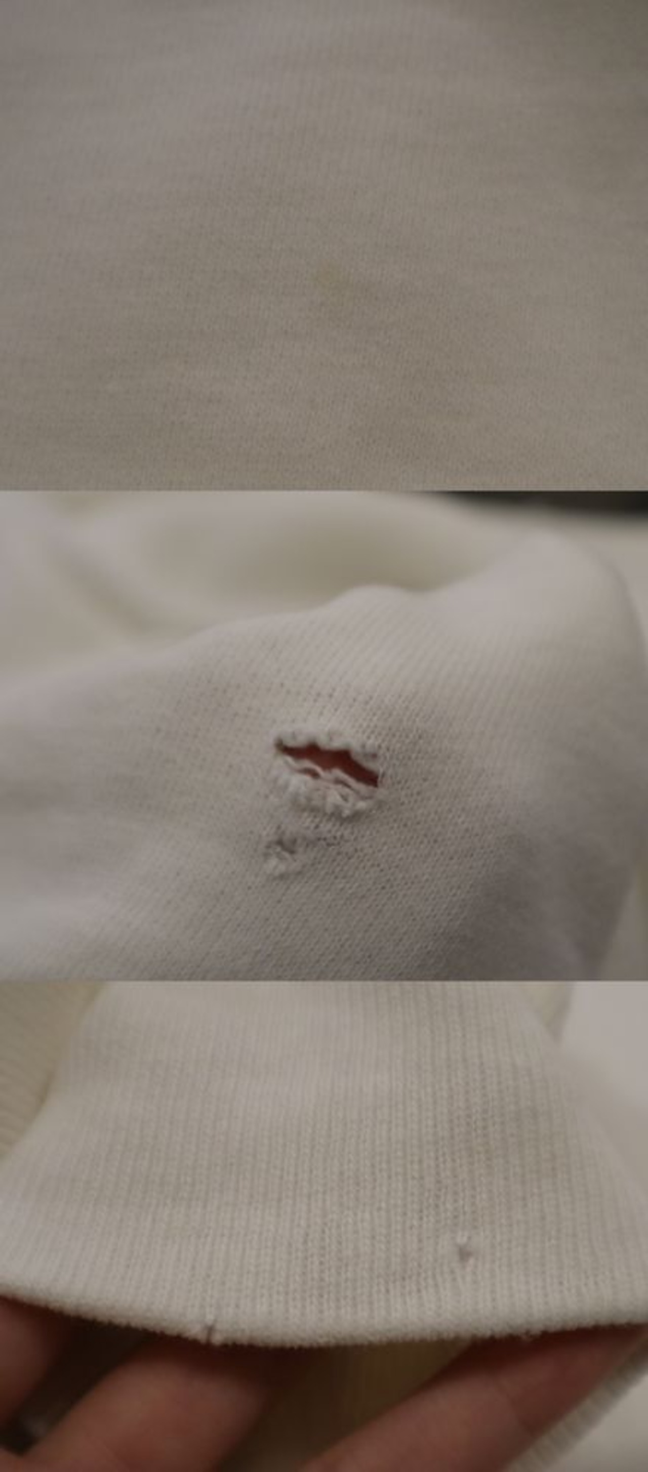 いくつかシミ汚れや首回りの黄ばみ、一部破れがございますが、古着の味として着て頂けるかと思われます。