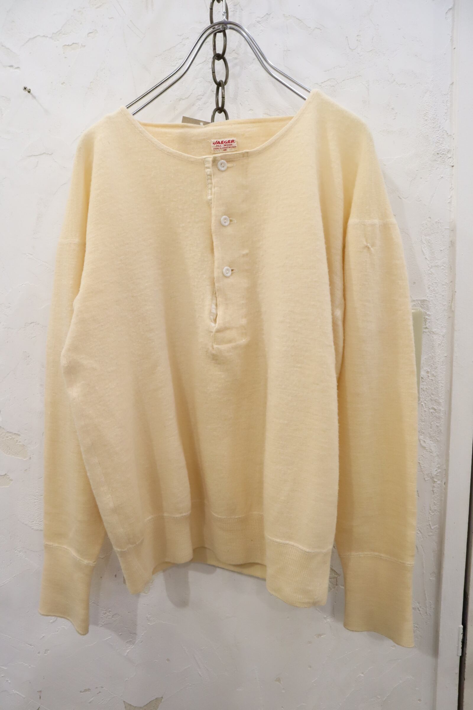 cream plain henryneck wool thermal tops [l-1896]