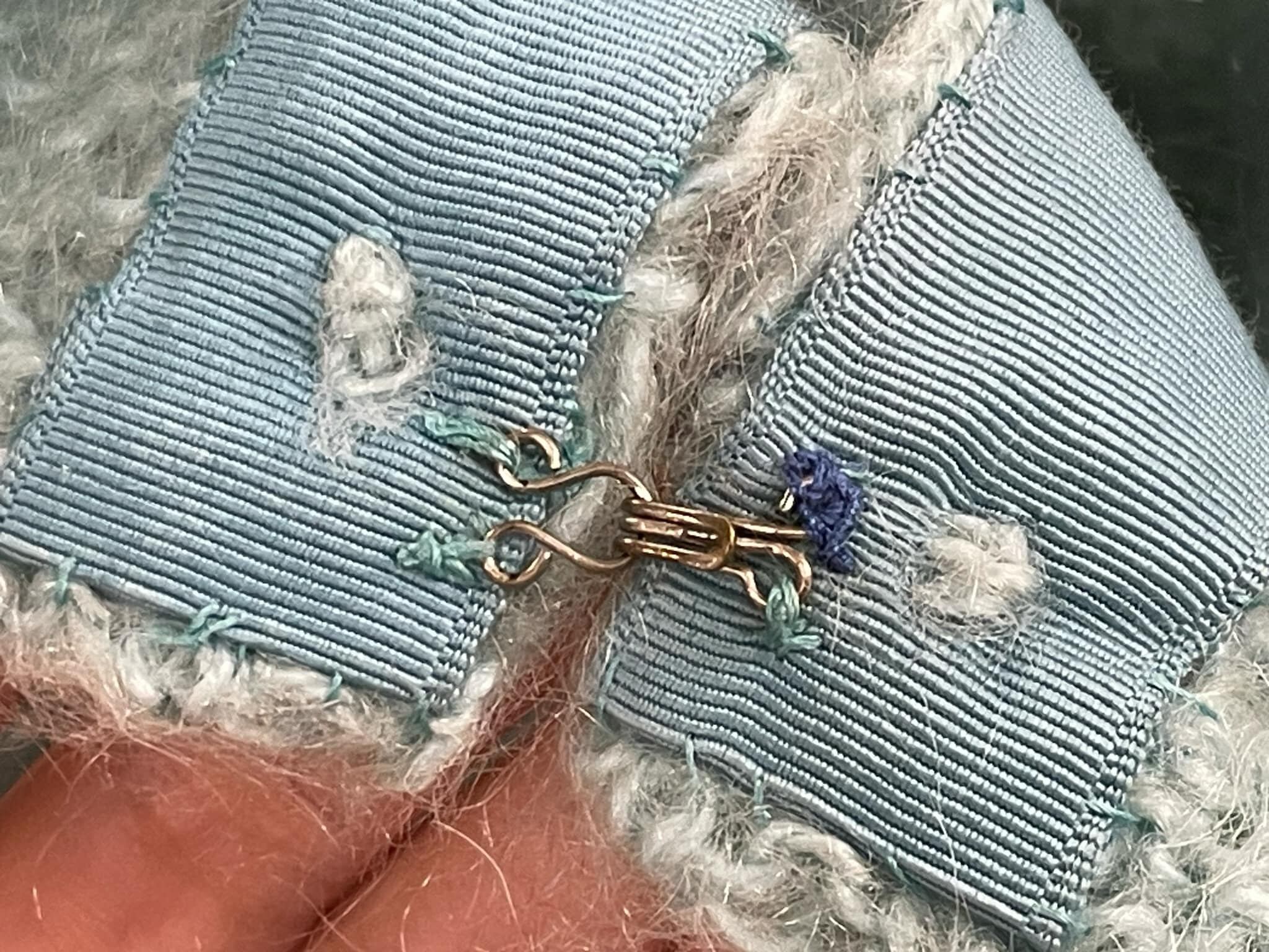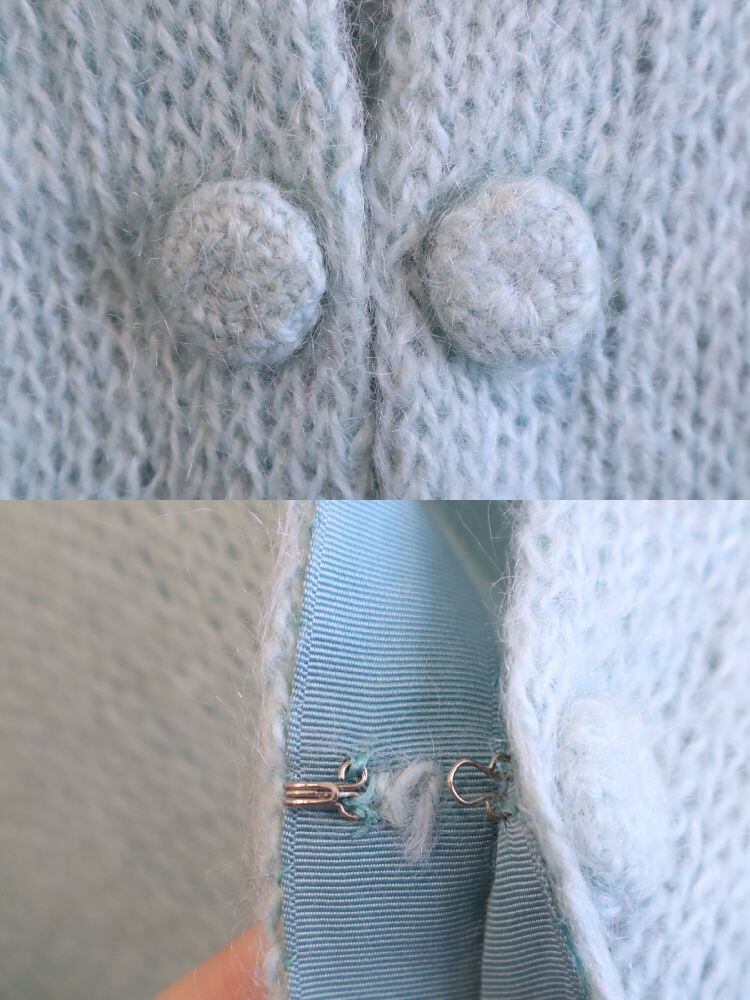 ホック部分にリペア跡、ボタンに一部薄汚れ、いくつかシミ汚れがございますが、あまり気にならないかと思われます。