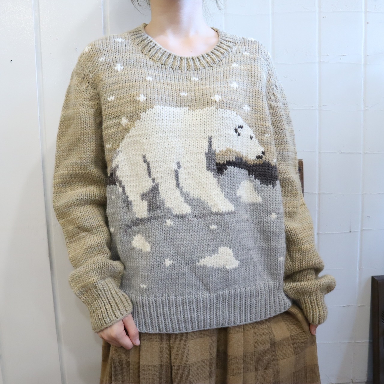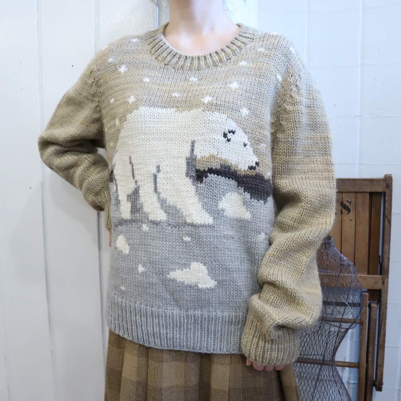 "coach"beige×light gray polar bear knit pullover [k-1904]