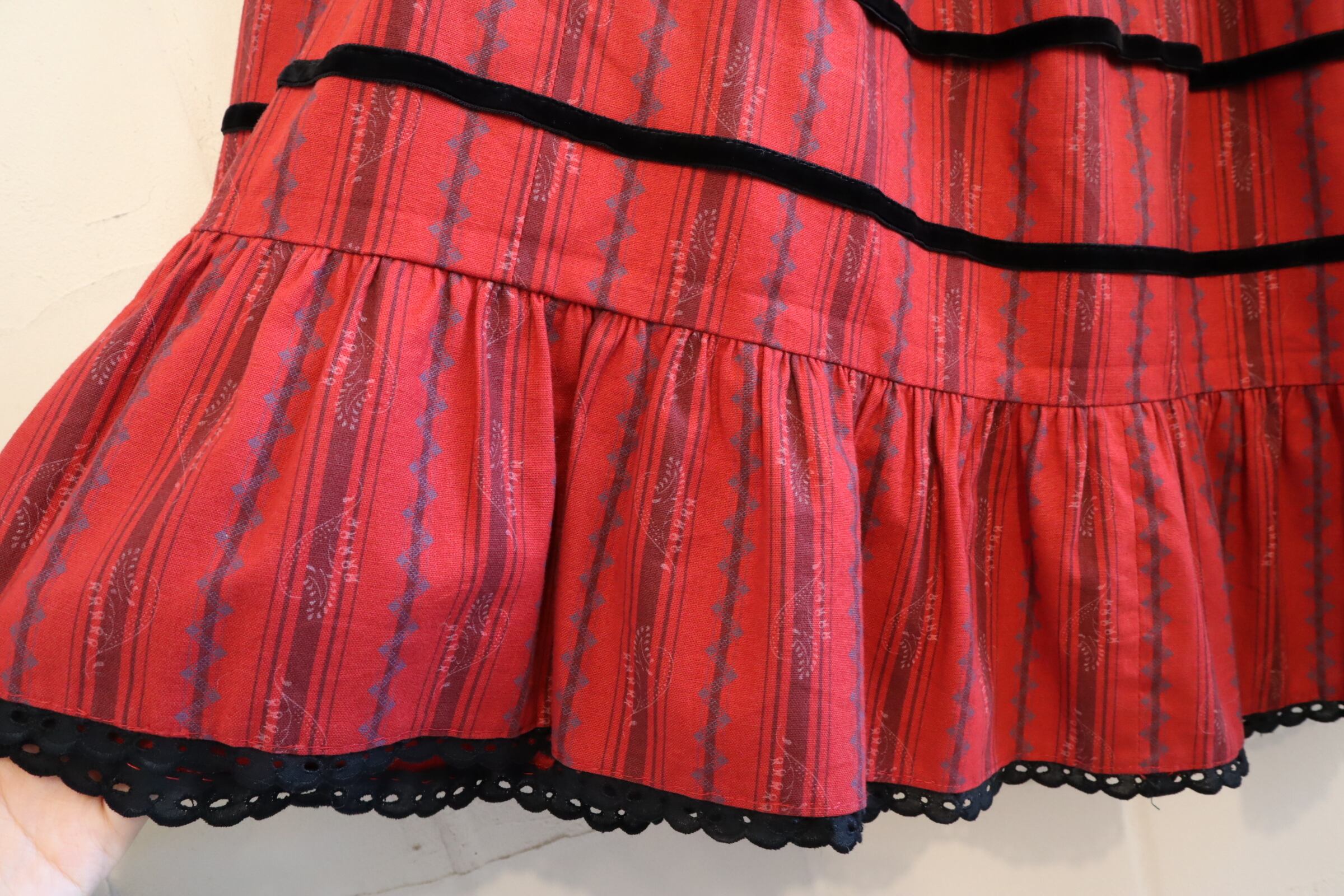 ベロアテープやストライプ状の柄、裾のフレア感など可愛いポイントたくさんですよ◎