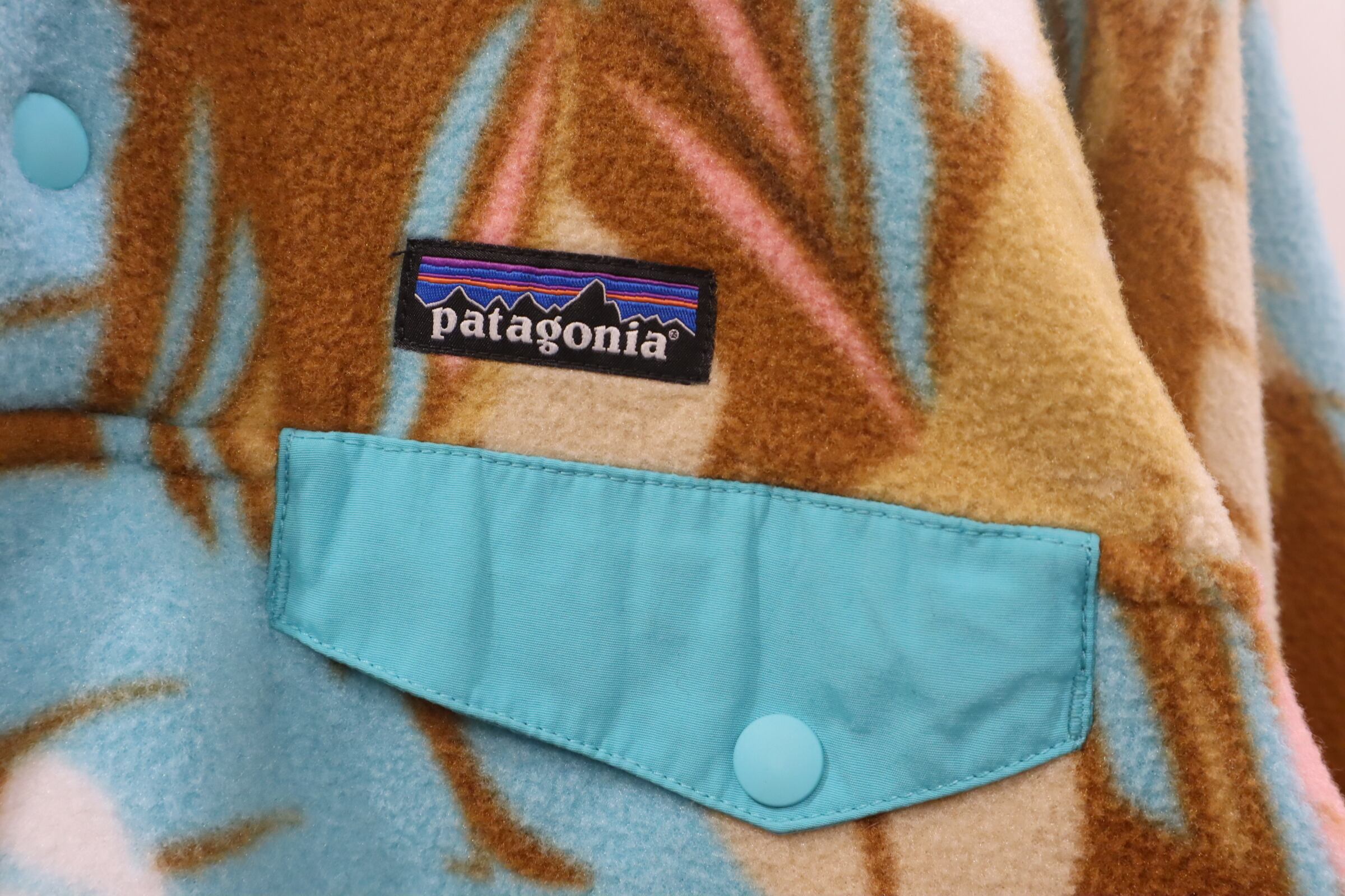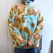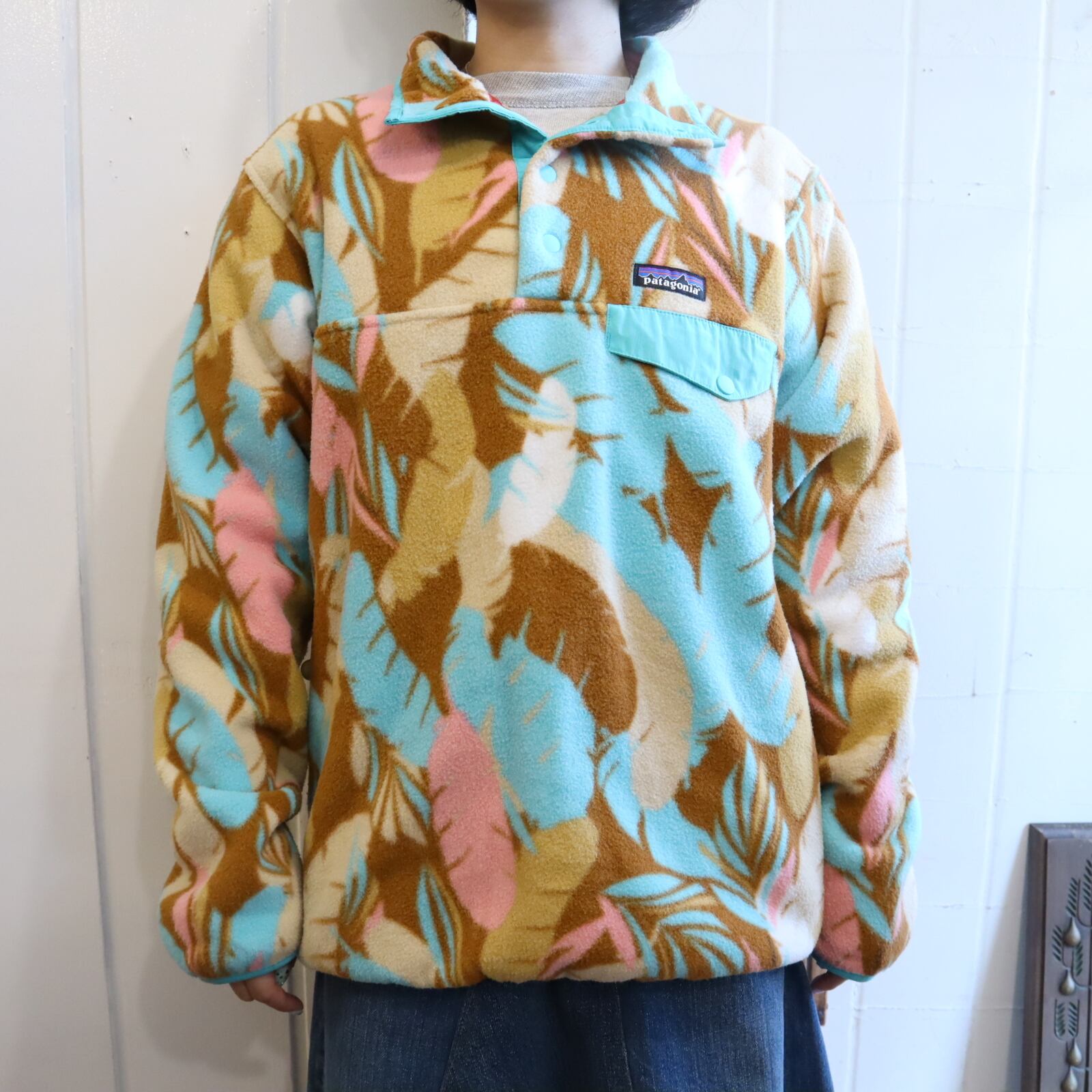 "Patagonia" lightblue×brown×pink leaf pattern pullover snap-t fleece [l-1916]