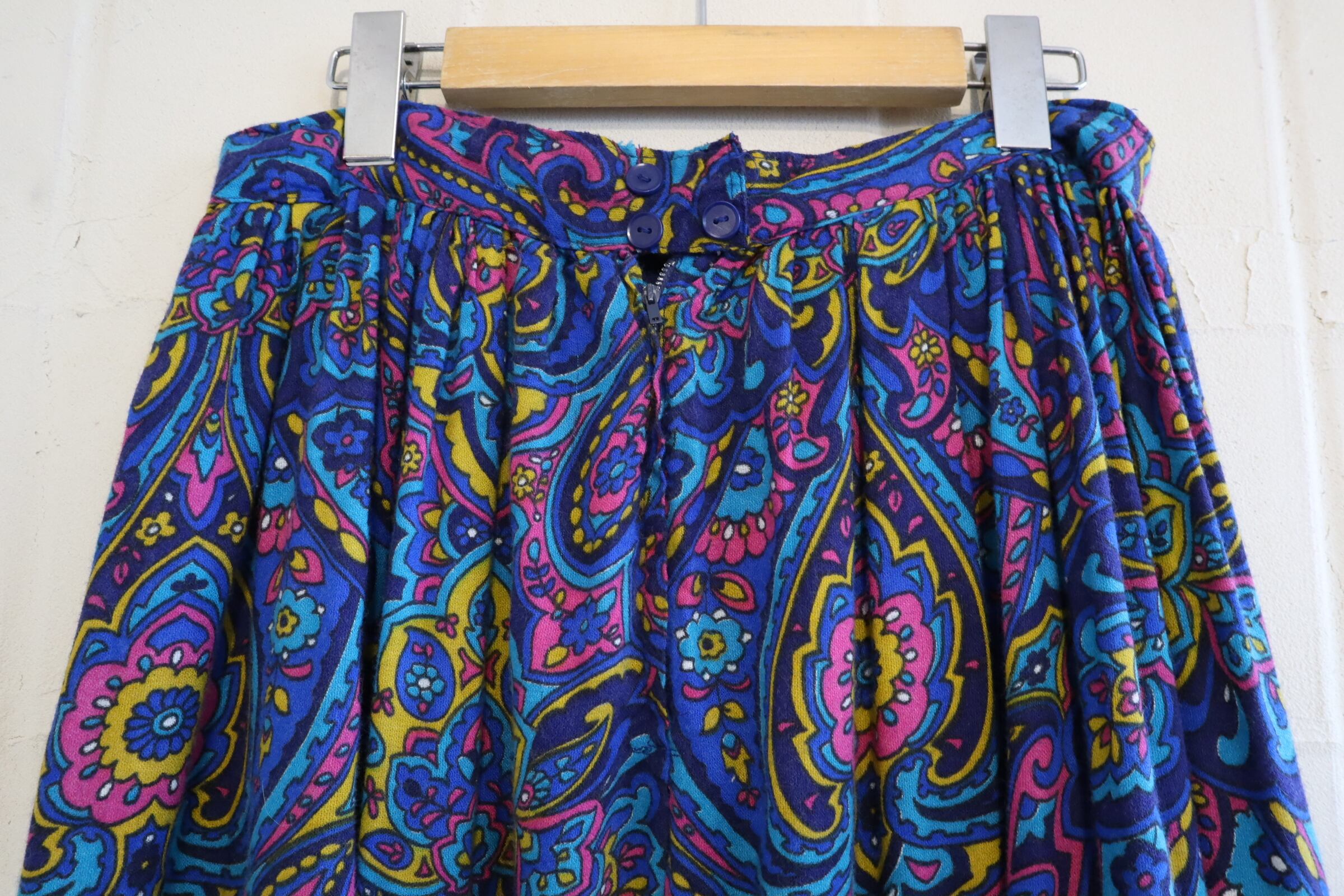 カラーリングや大胆なペイズリー柄が可愛いスカート。