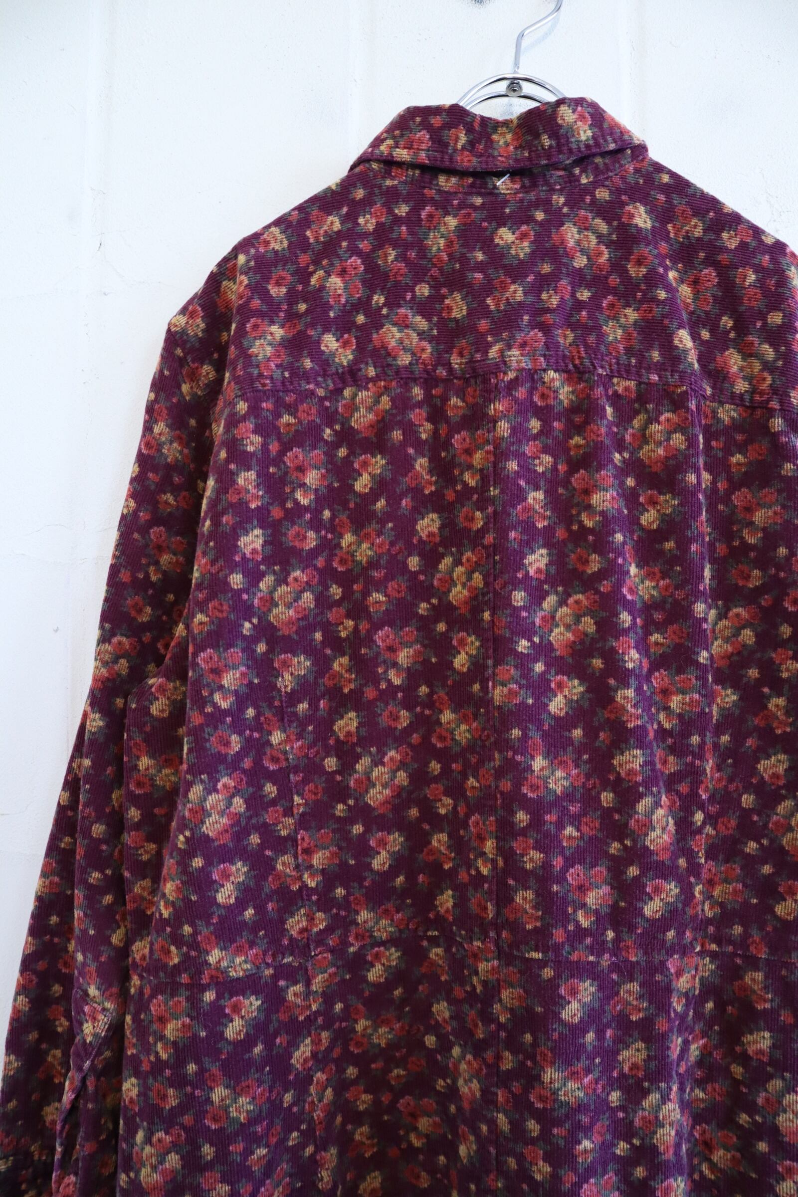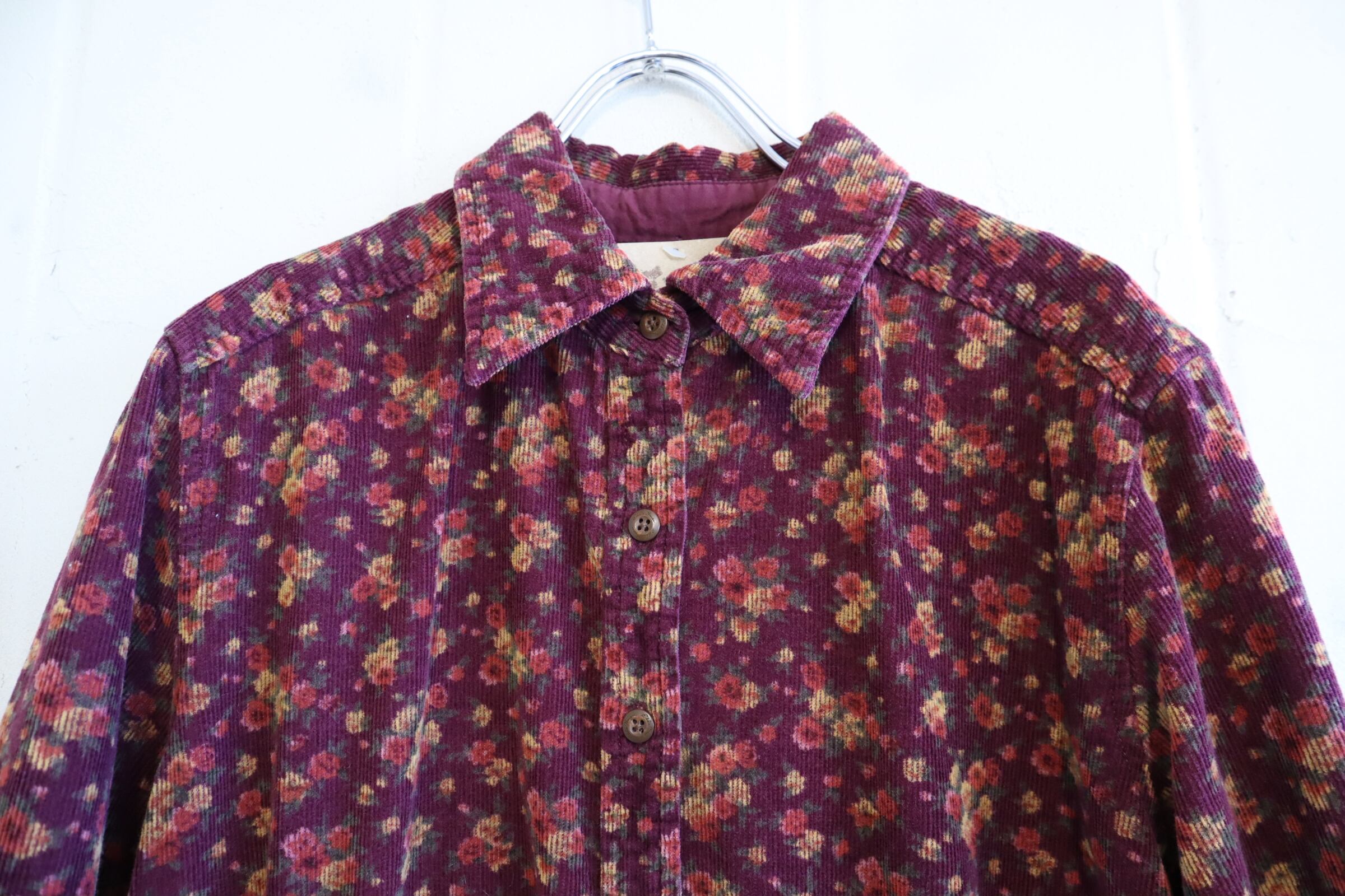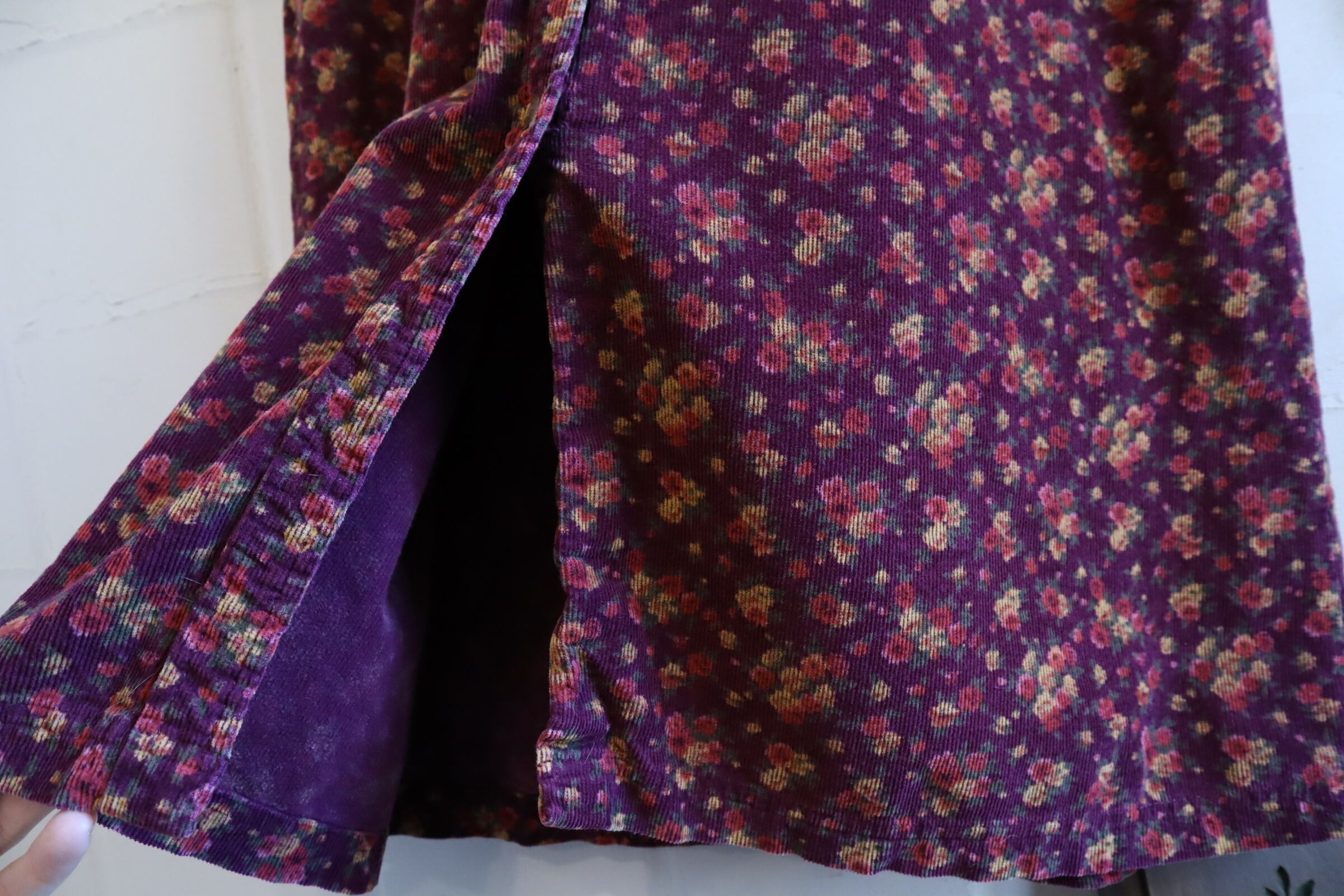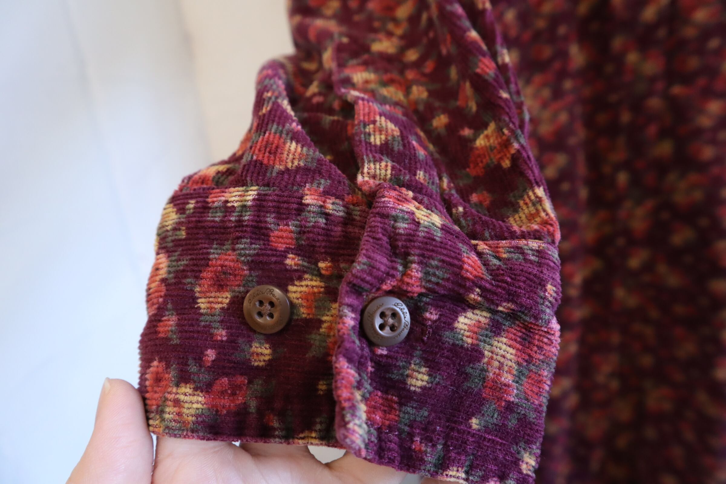 "Eddie Bauer" bordeaux×yellow flower pattern corduroy dress [l-1947]