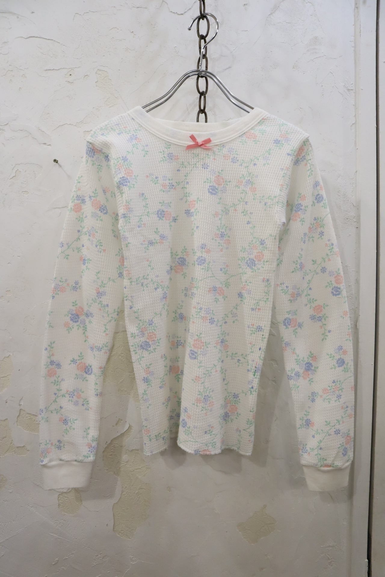white×green×pink×blue flower pattern thermal tops [l-1952]