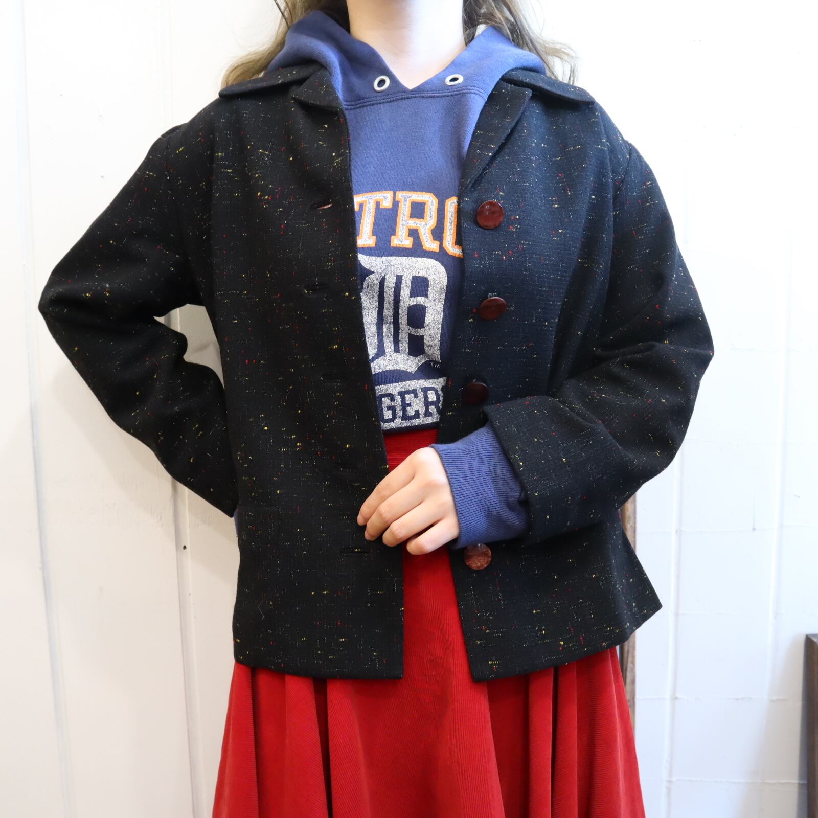 40-50s black×red×yellow open collar wool jacket [l-1958]