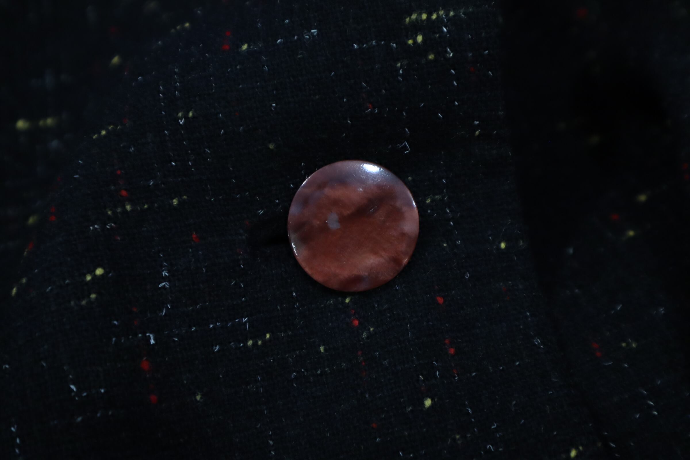 薄手ですが、目の詰まった生地感とボタンの存在感などが素敵な一枚です。