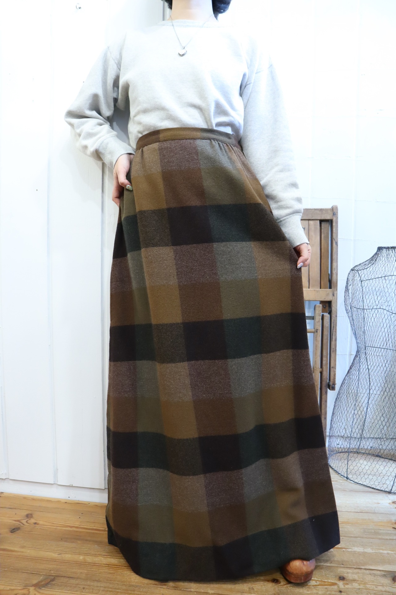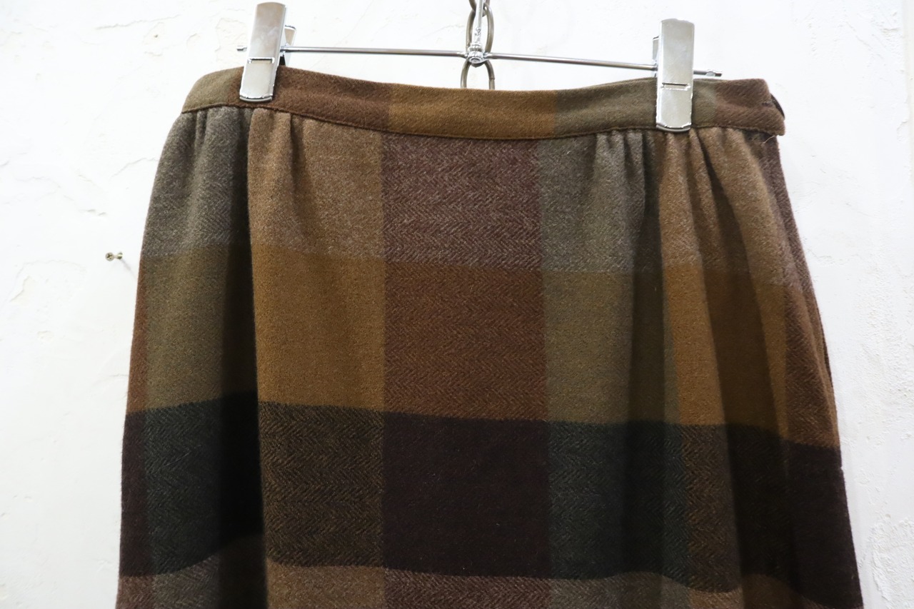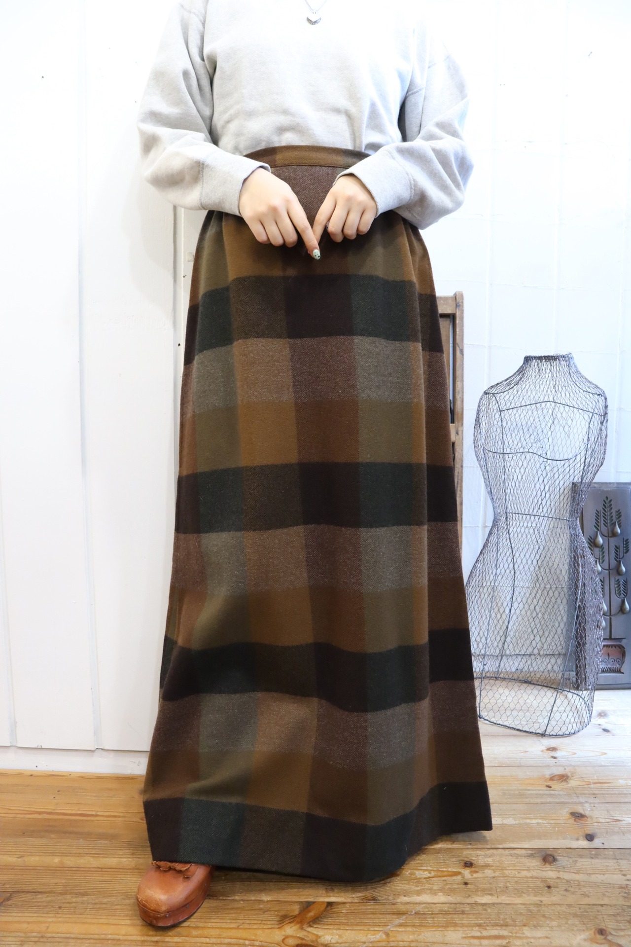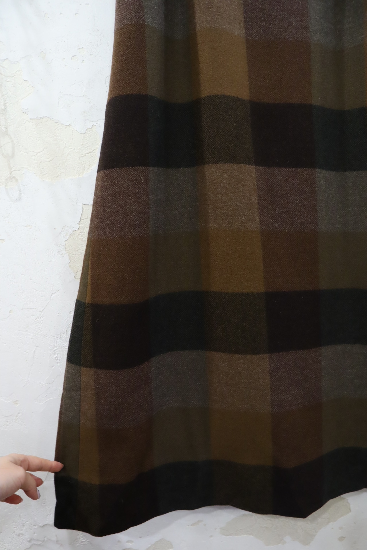 "PENDLETON" brown×khaki×gray plaid wool long skirt [l-1960]