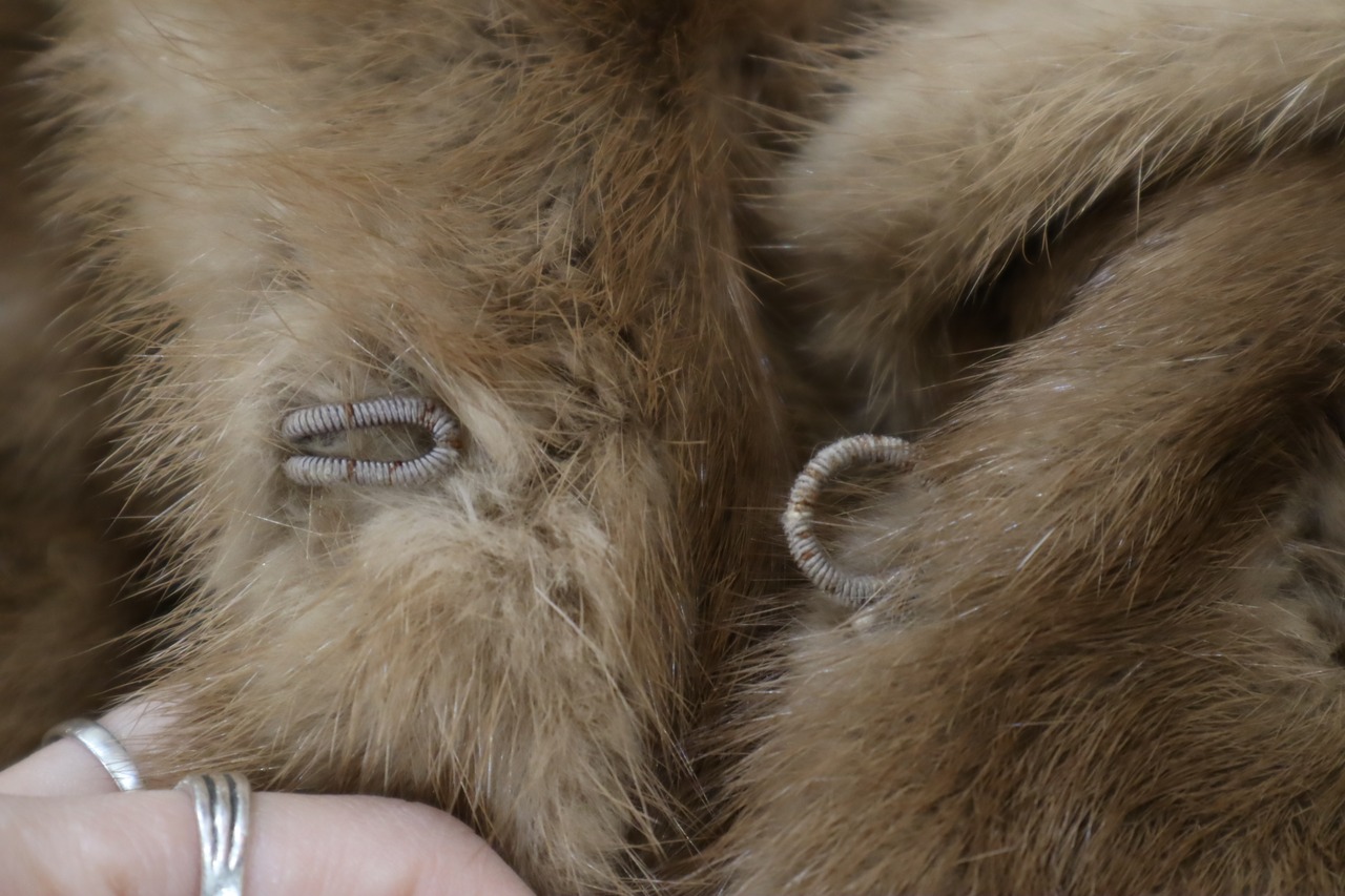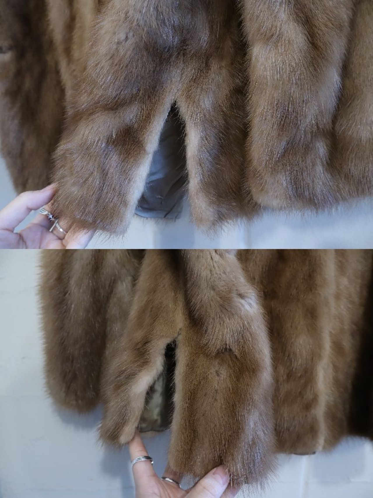裏地に一部点ほどのシミや小穴、隠れている箇所にいくつか毛足の剥げがございますが、あまり気にならないかと思われます。