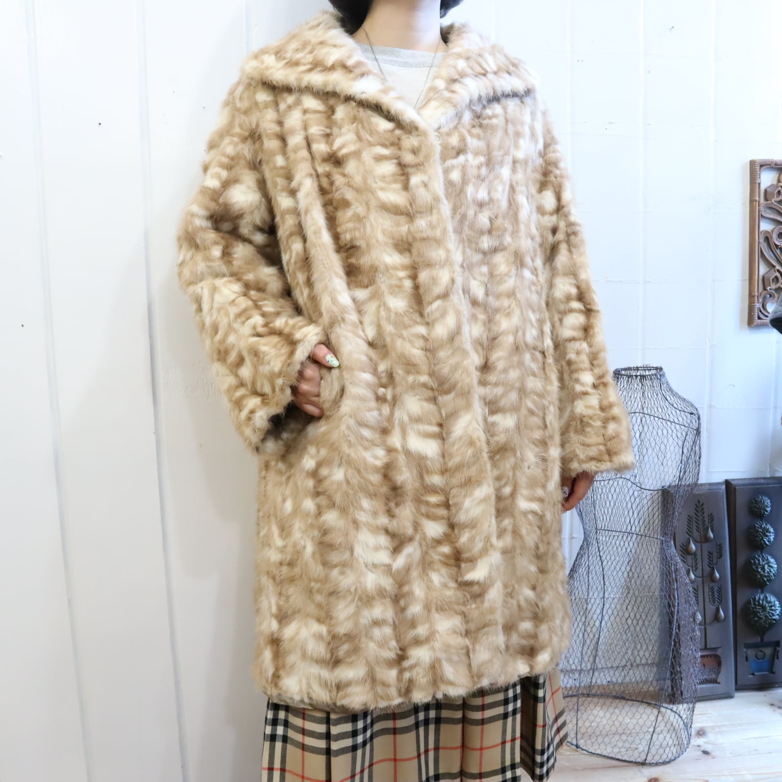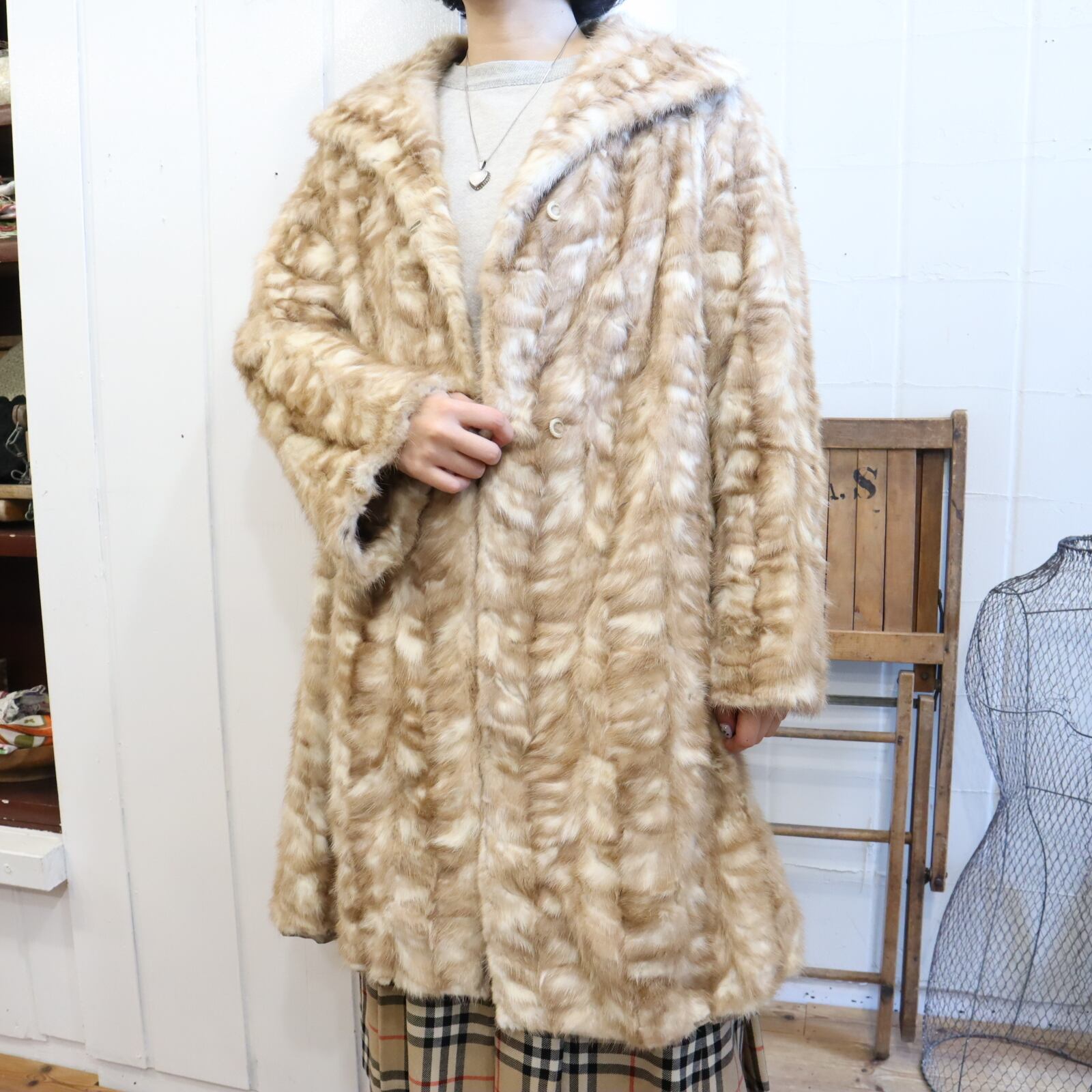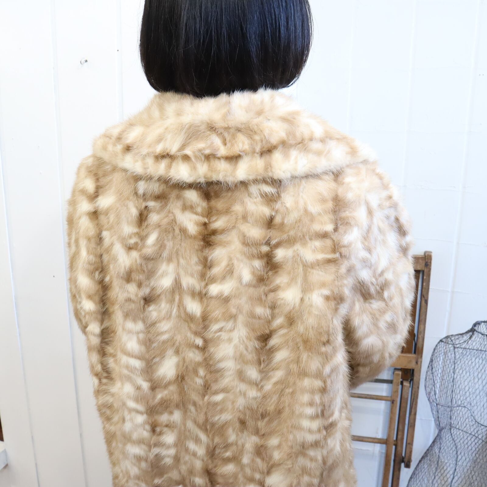50-60s beige×white mink fur coat [l-1976]