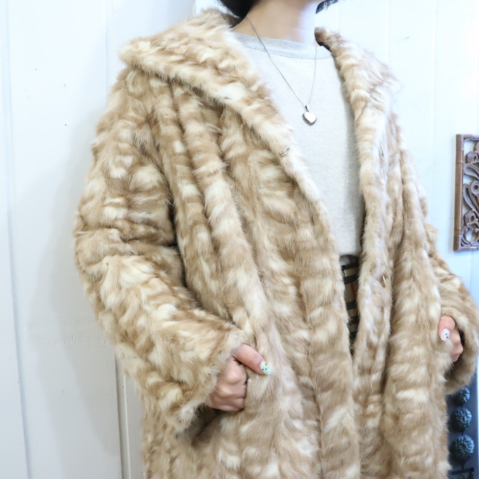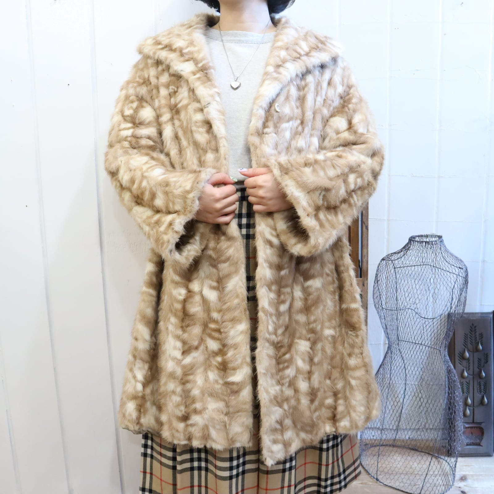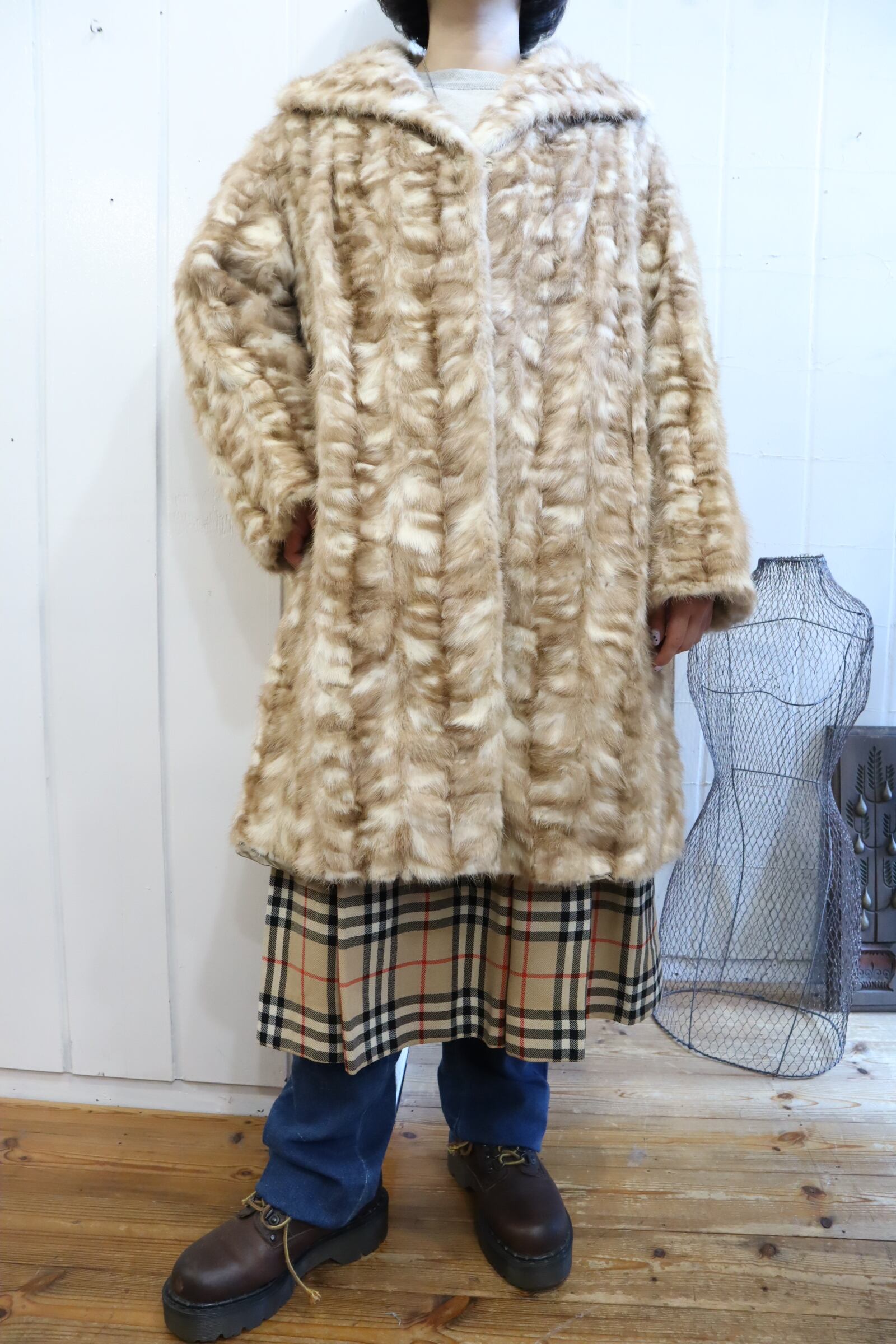 50-60s beige×white mink fur coat [l-1976]