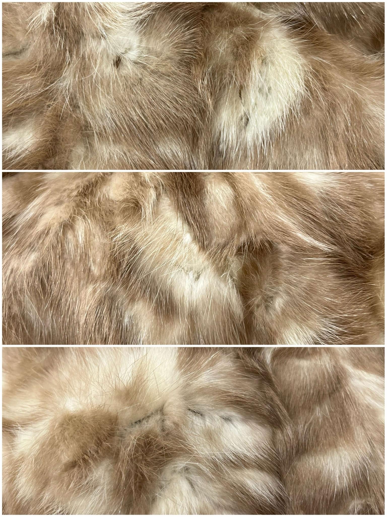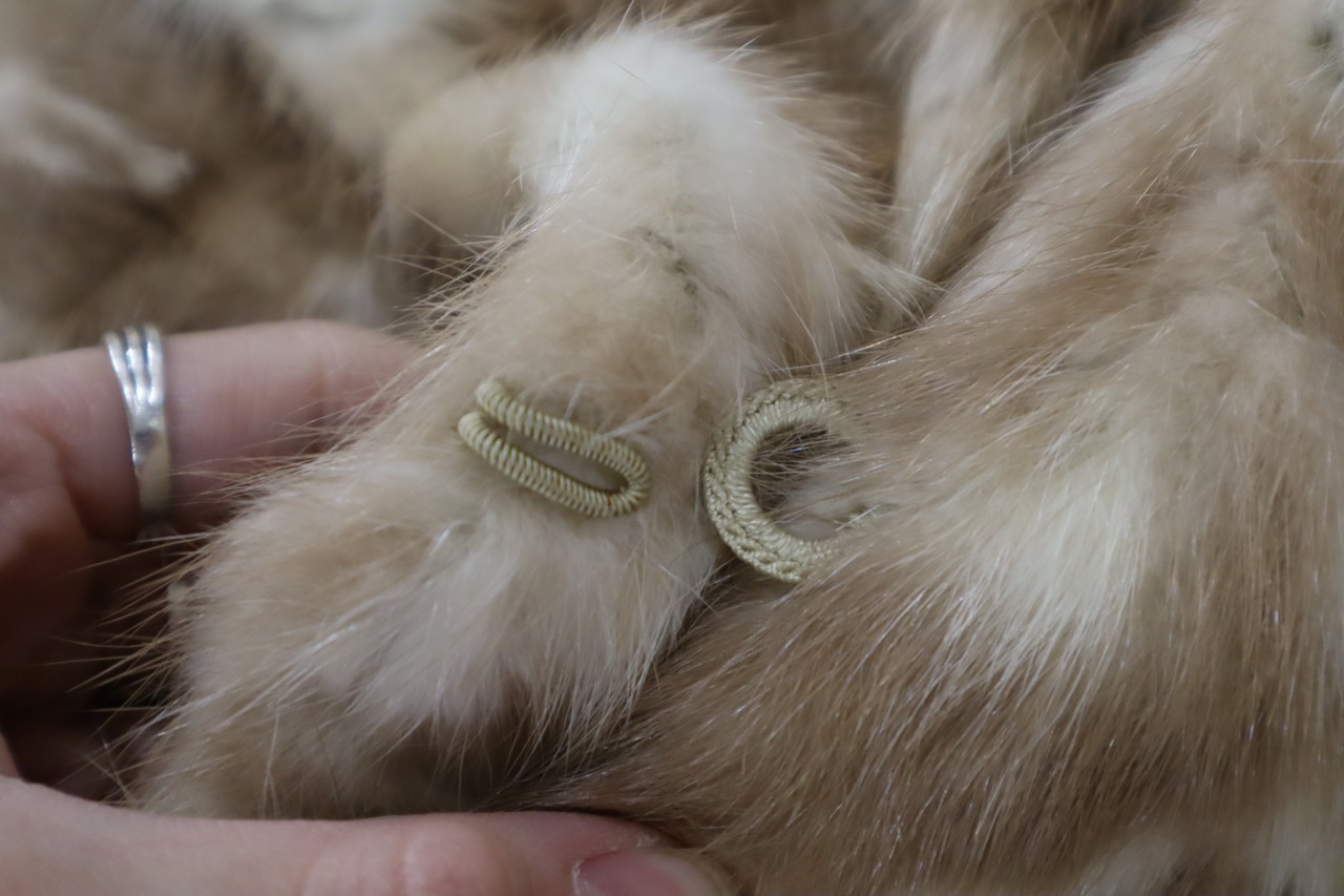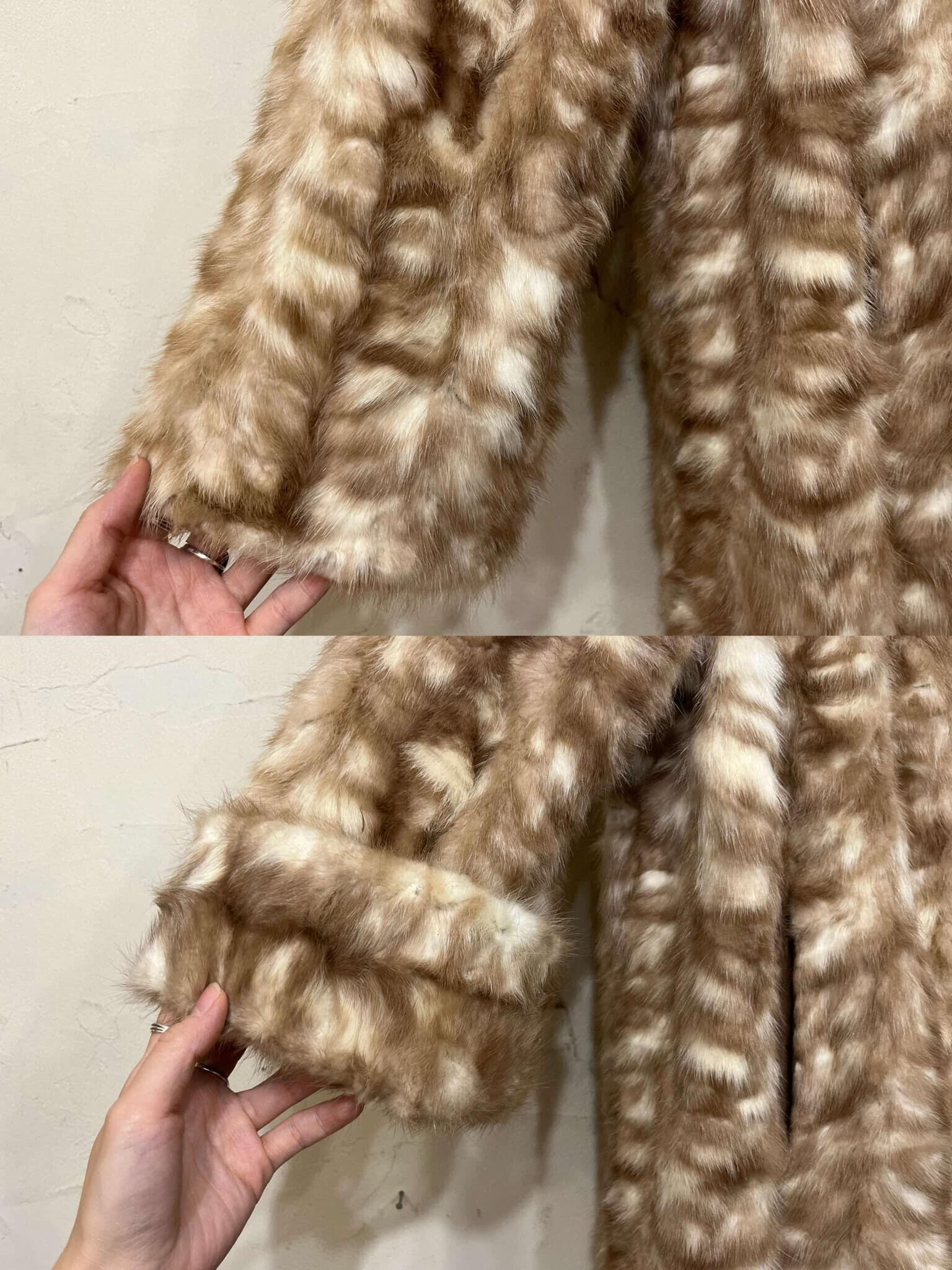 ベージュとホワイトが混ざったカラーリングが可愛いミンクファーコートです。