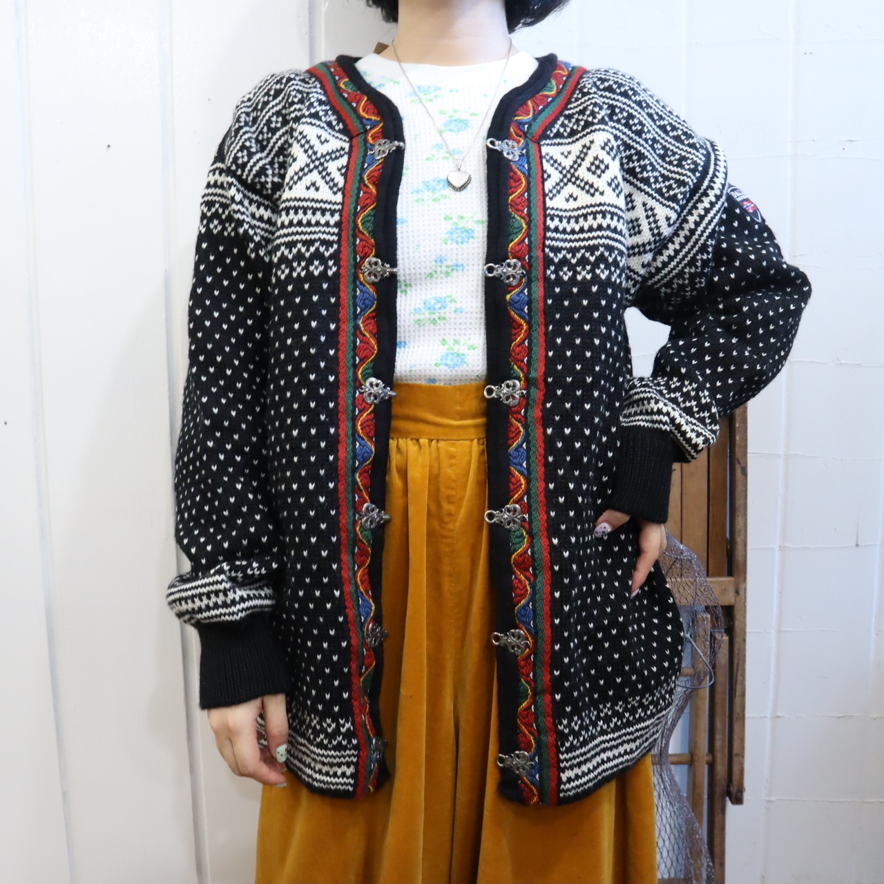ブラック×レッドはノルディックカーディガンの中でも安定なカラーリングです*