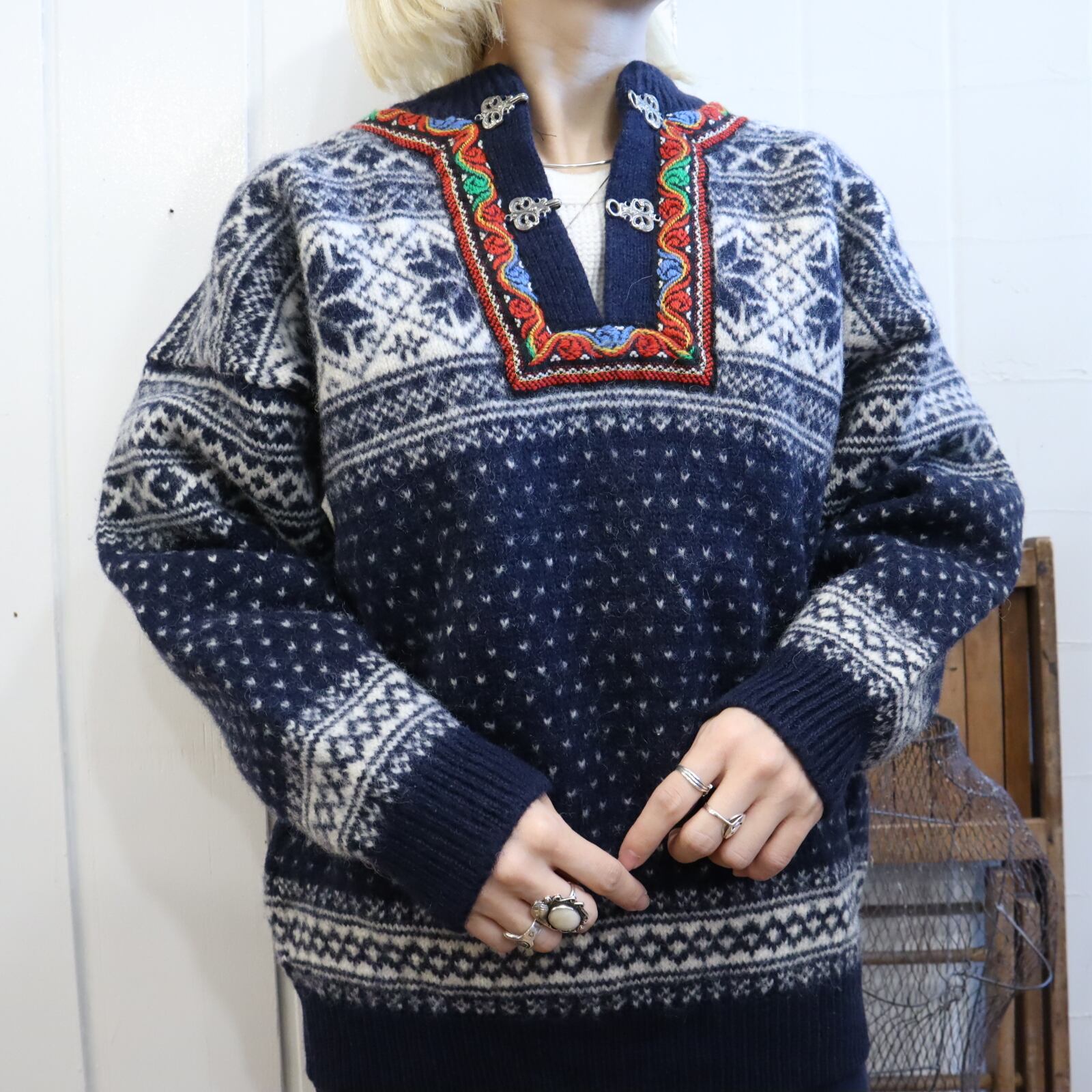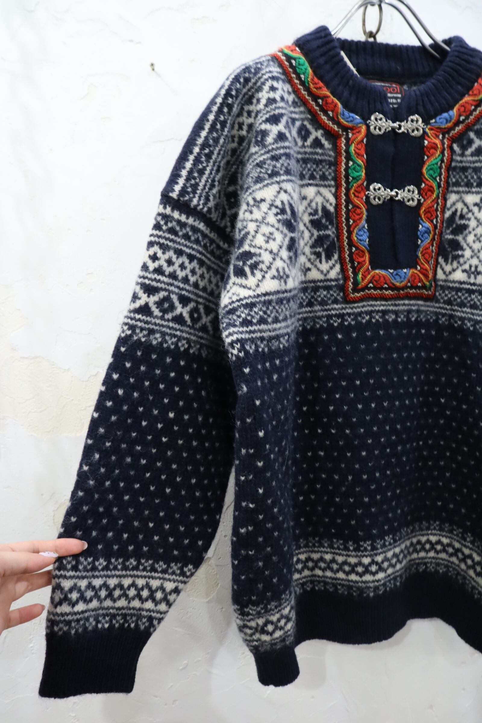 navy×white×red nordic knit pullover [l-1979]