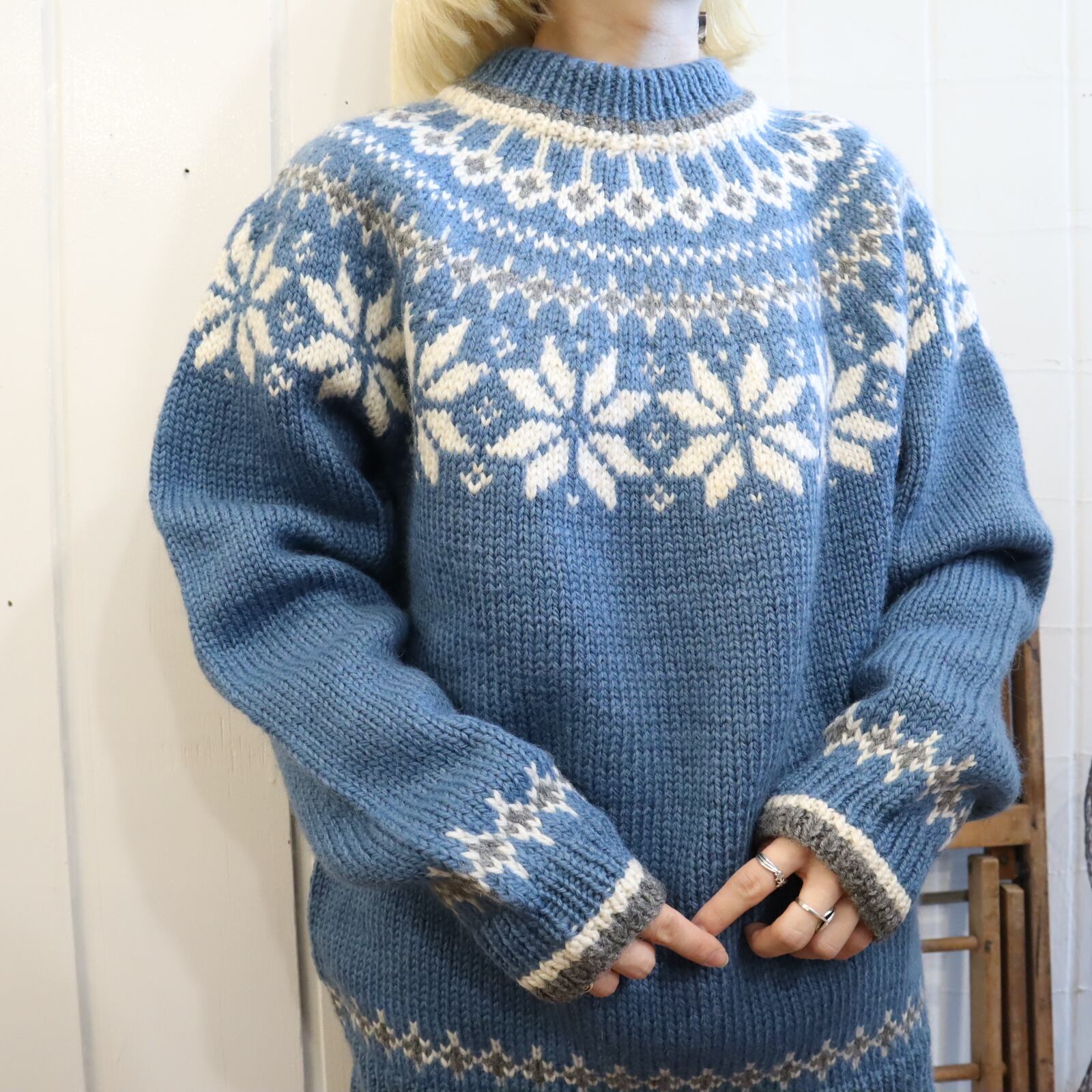 "DALE OF NORWAY" lightblue×white×gray nordic pattern knit pullover [l-1981]