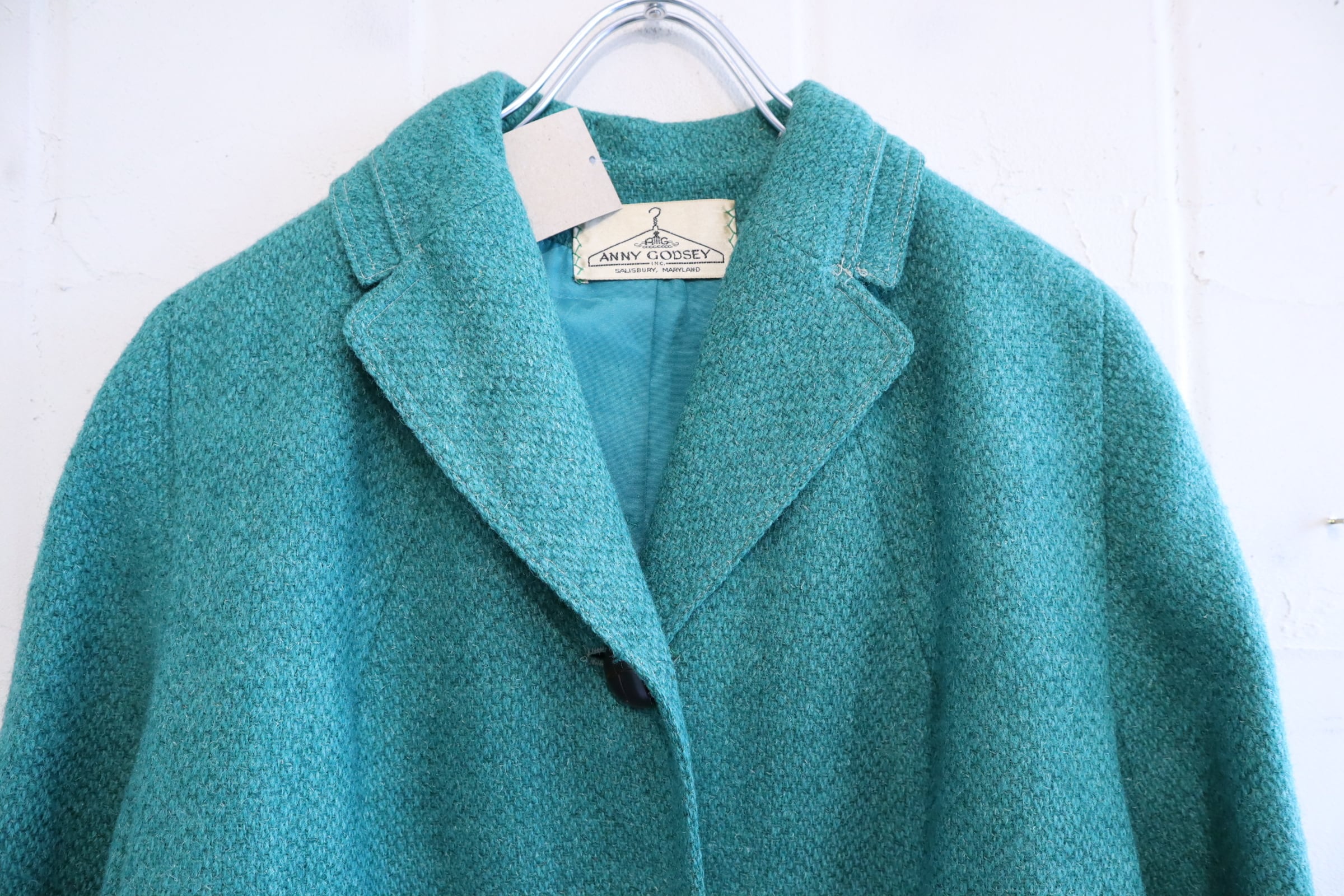 60s "Harris Tweed" emerald green plane coat [l-1984]